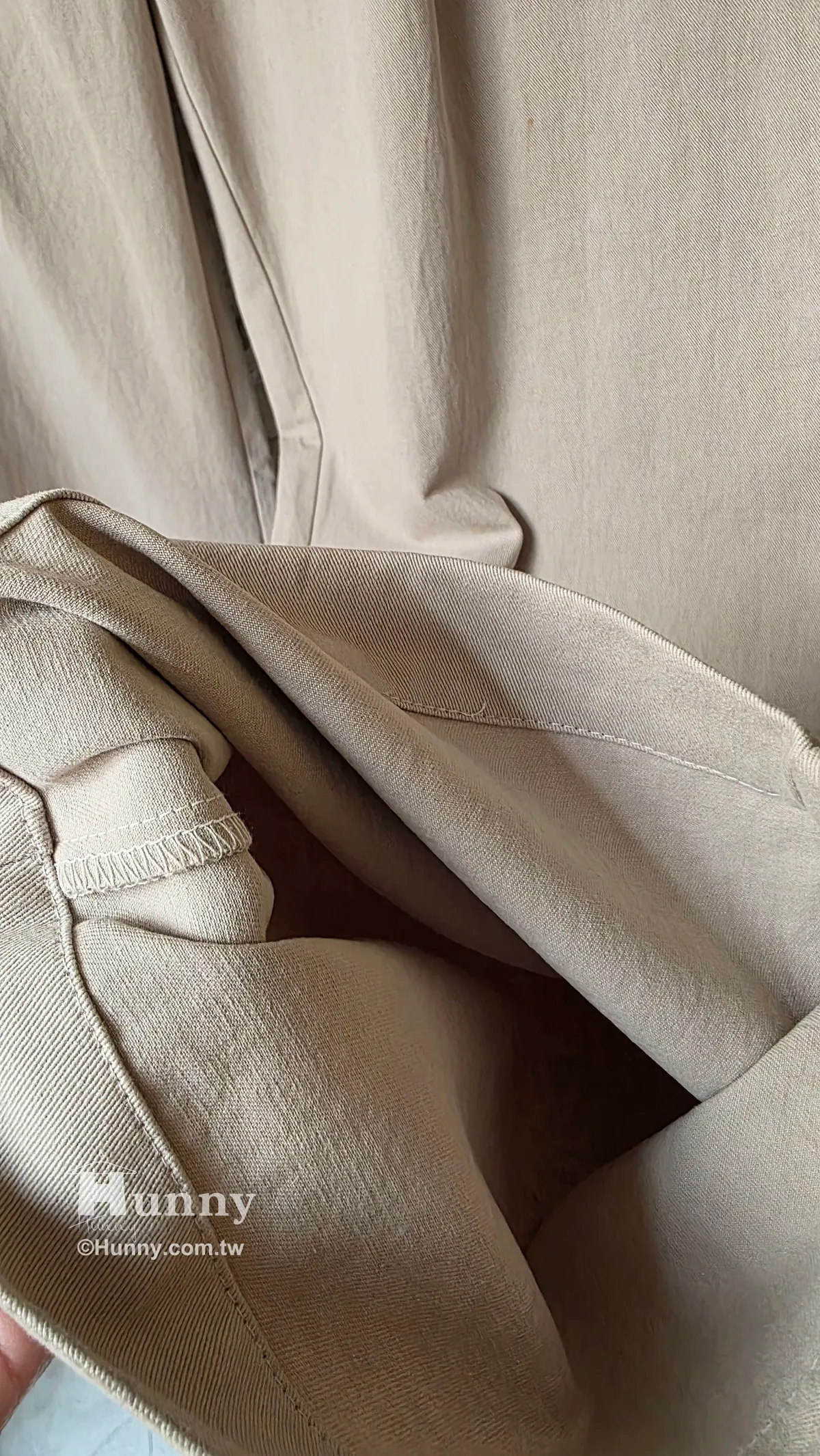 這款是卡其的材質 穿起來是有挺度的喔