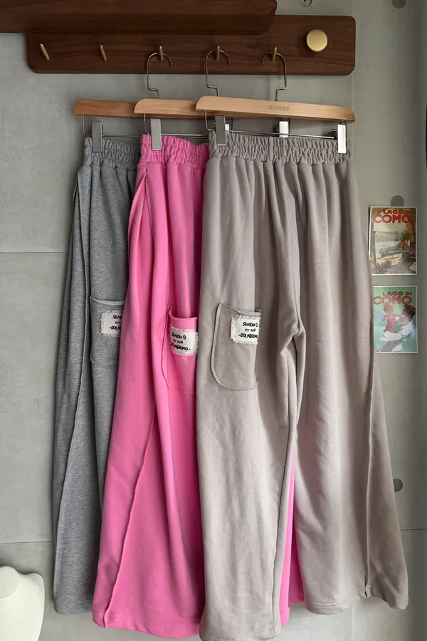 P22488 直播款 3d車線多口袋棉質寬褲 灰粉杏