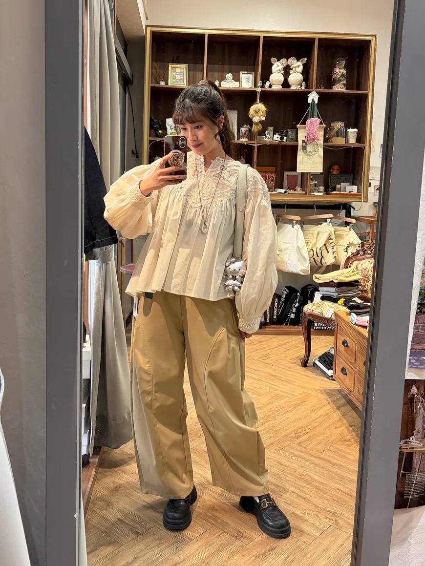 P31111 沒煩惱3D曲線卡其袋鼠褲 藍/駝 駝現貨