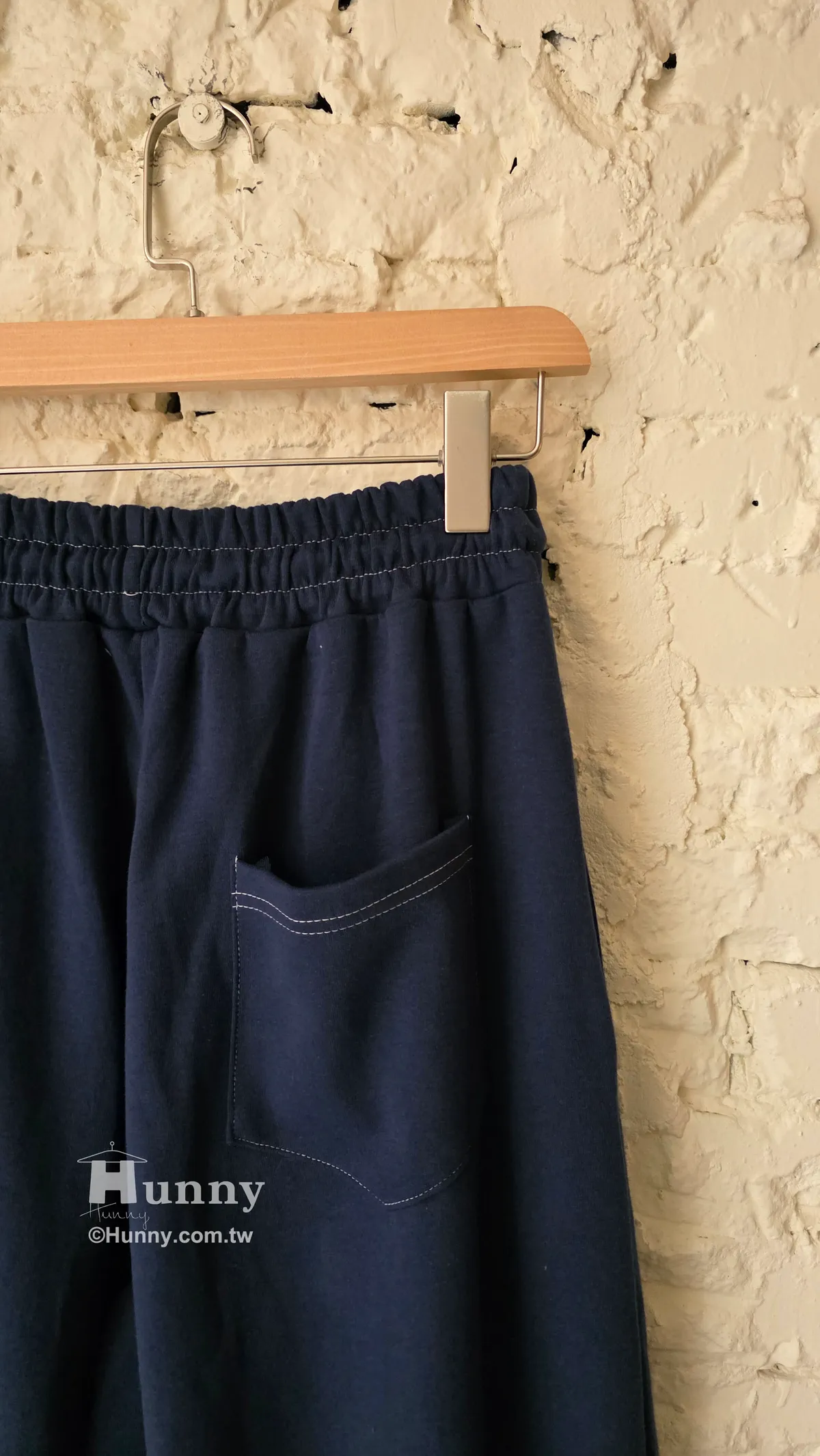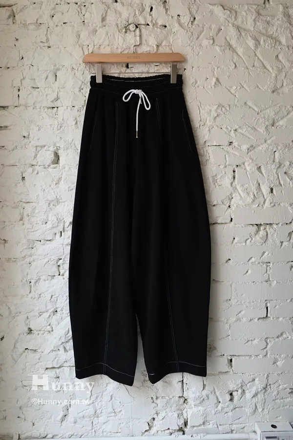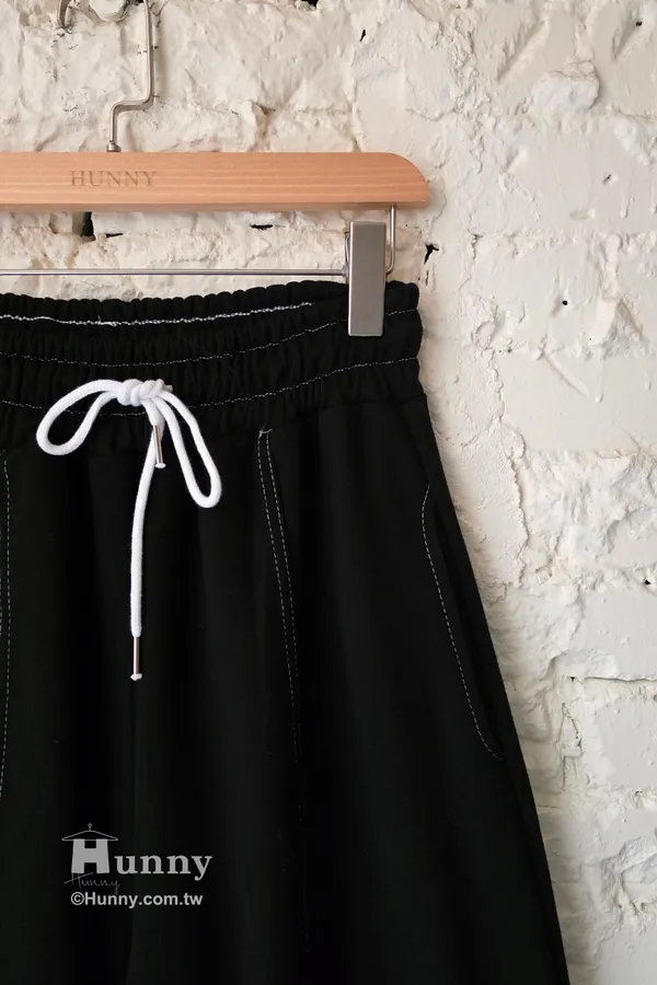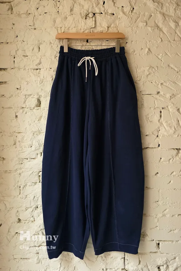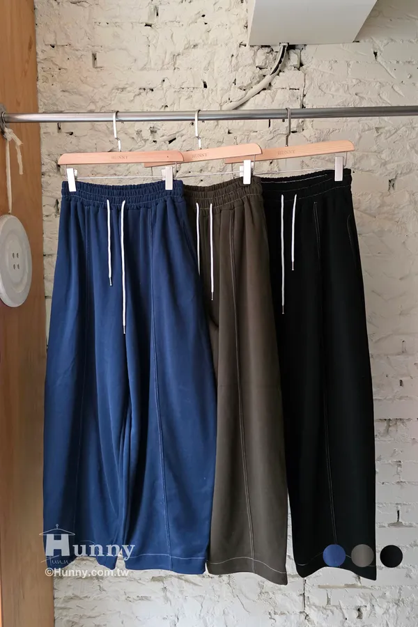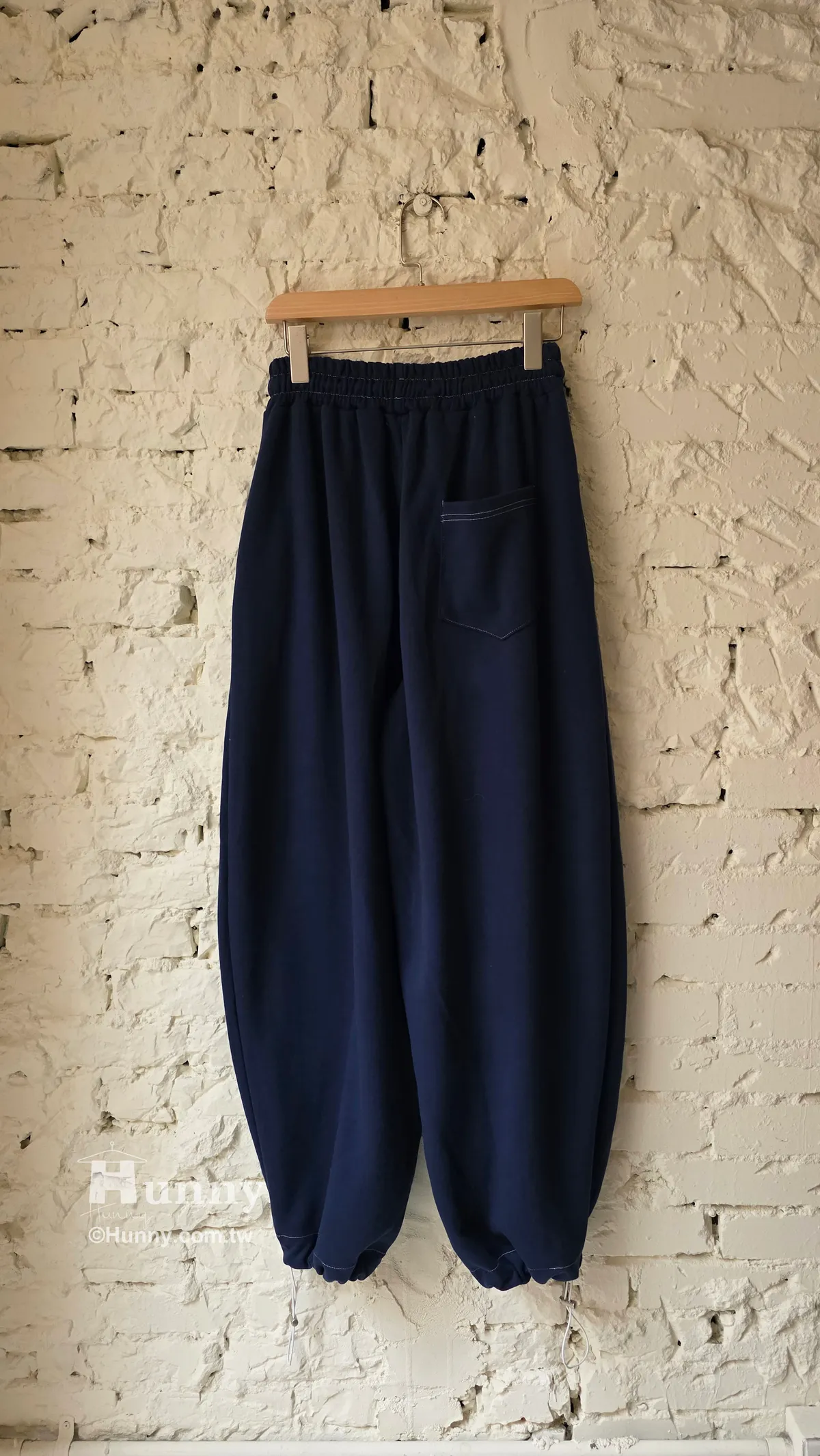 P31121 一看就喜歡立體線撞色棉褲 黑/藍/綠