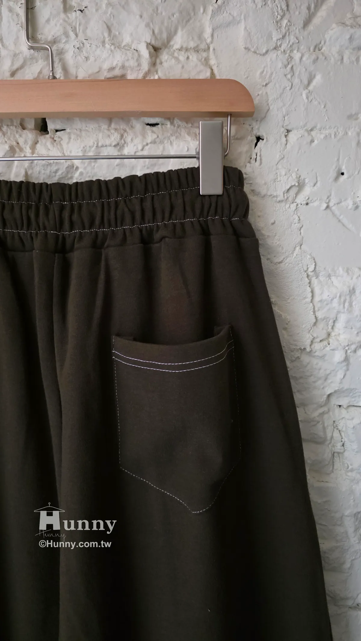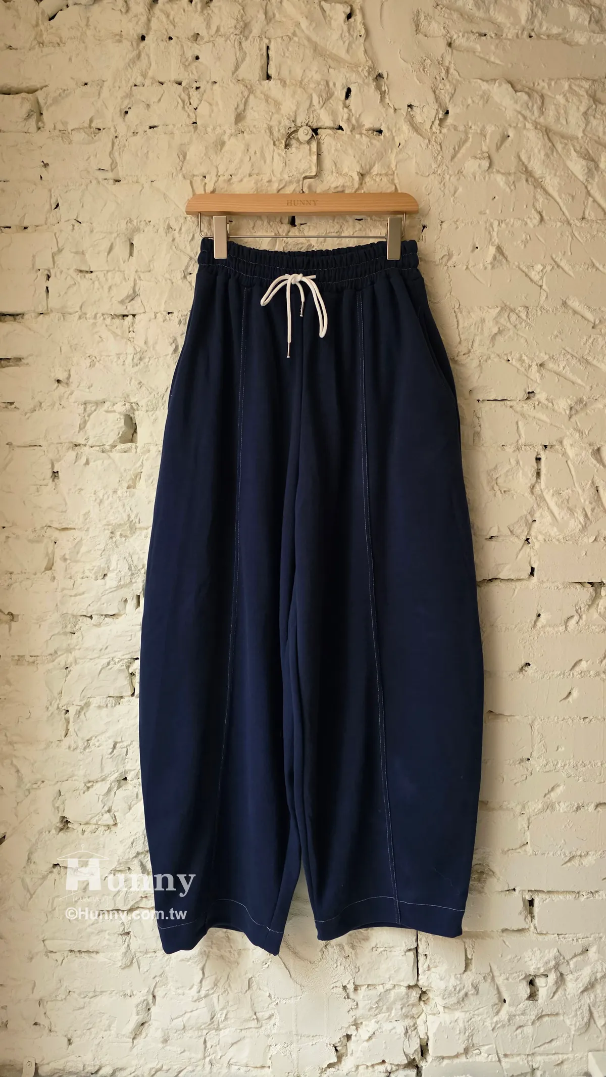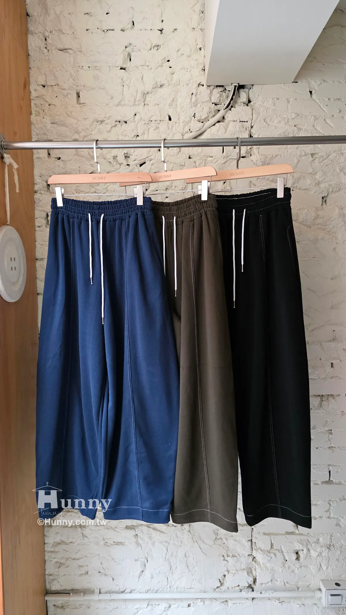 P31121 一看就喜歡立體線撞色棉褲 黑/藍/綠