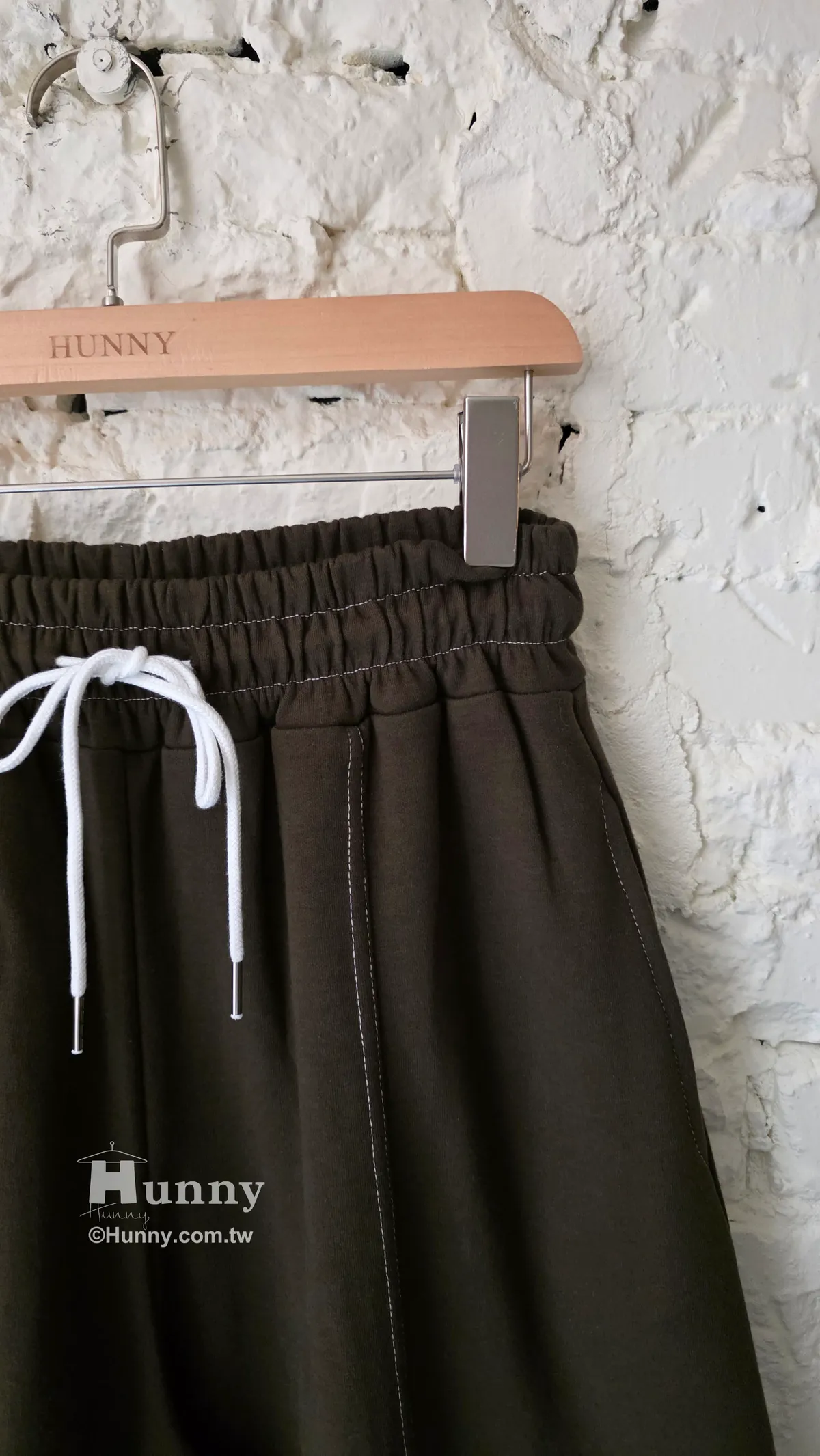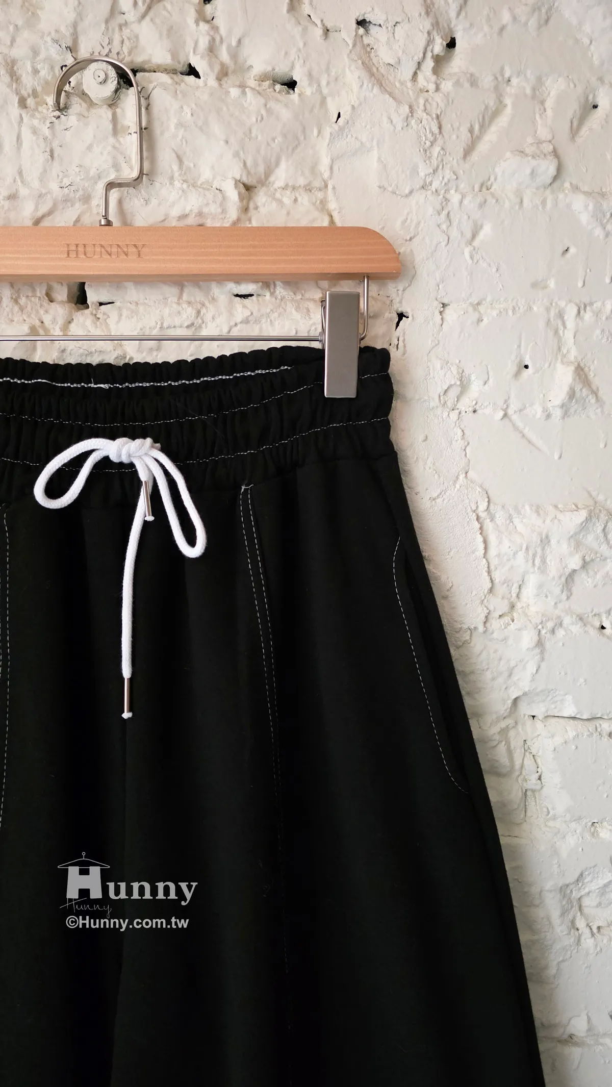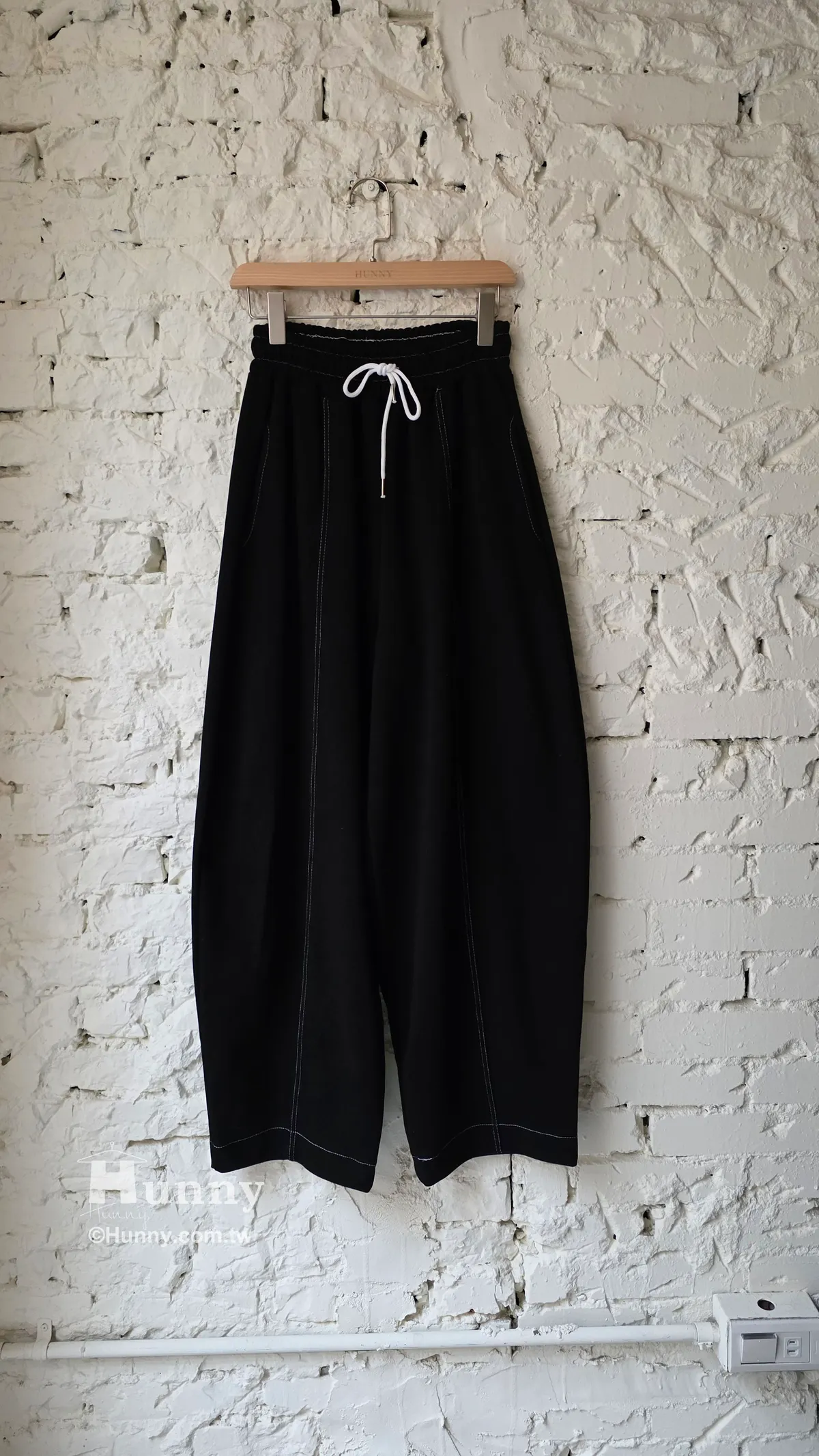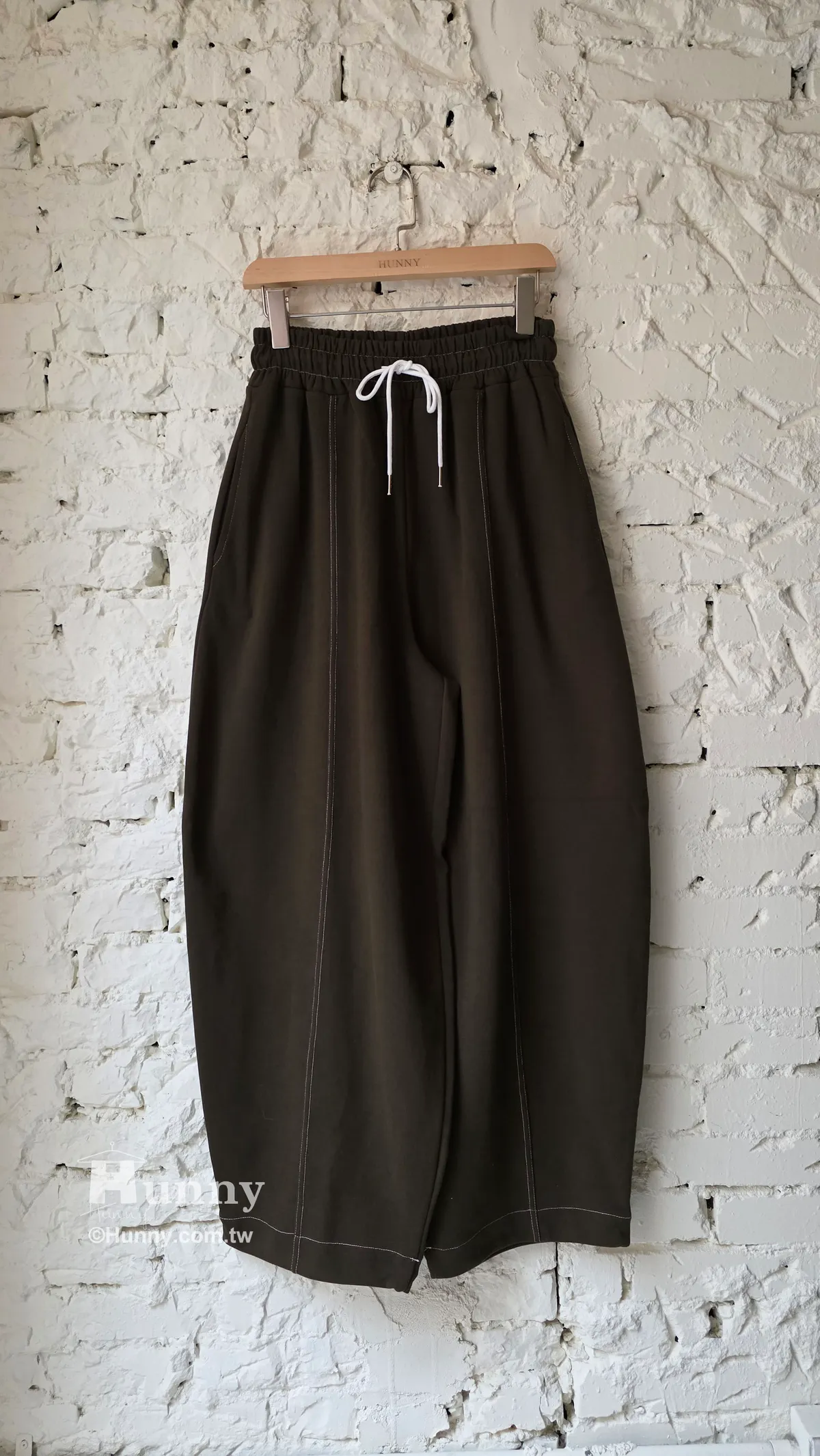 P31121 一看就喜歡立體線撞色棉褲 黑/藍/綠