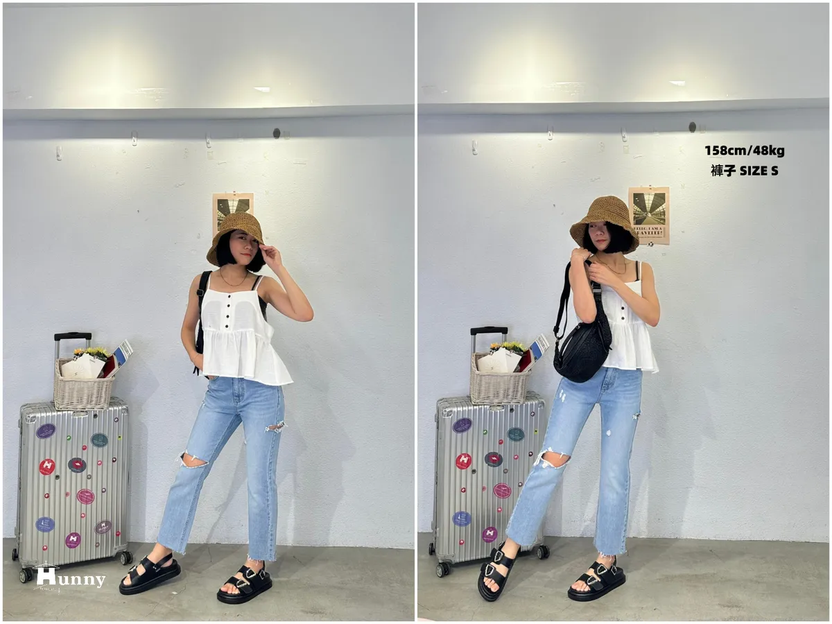 臀圍35吋/平常著S號割破牛仔褲永遠不退流行