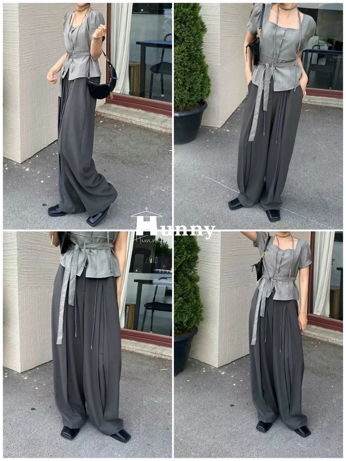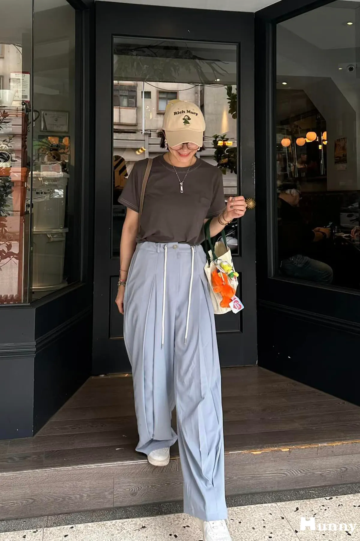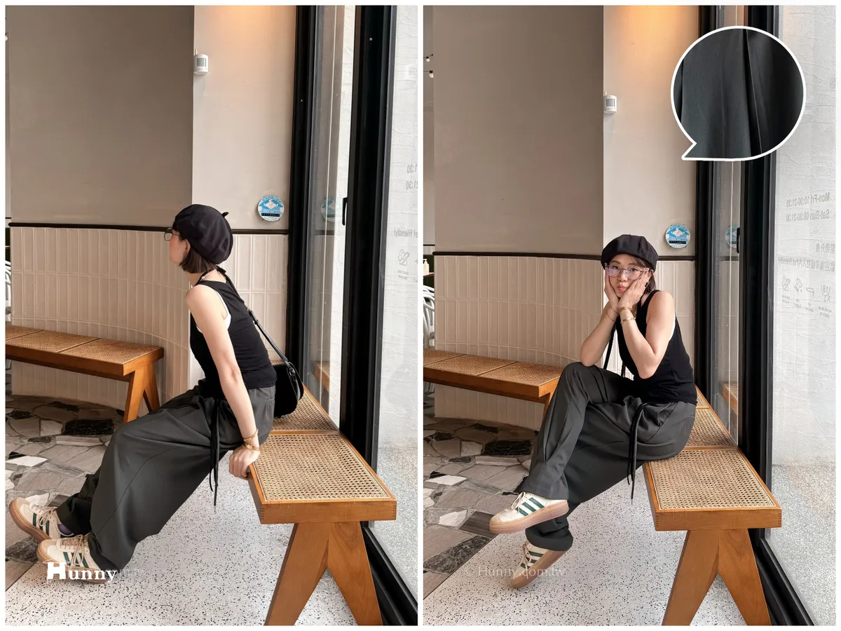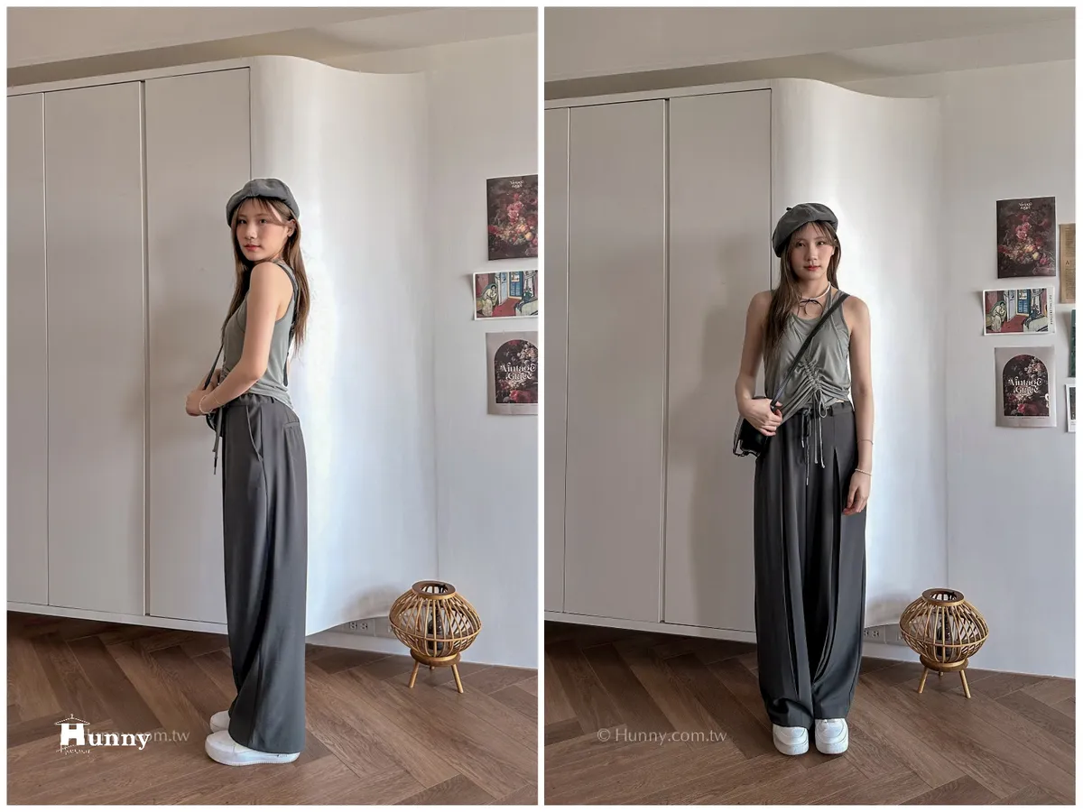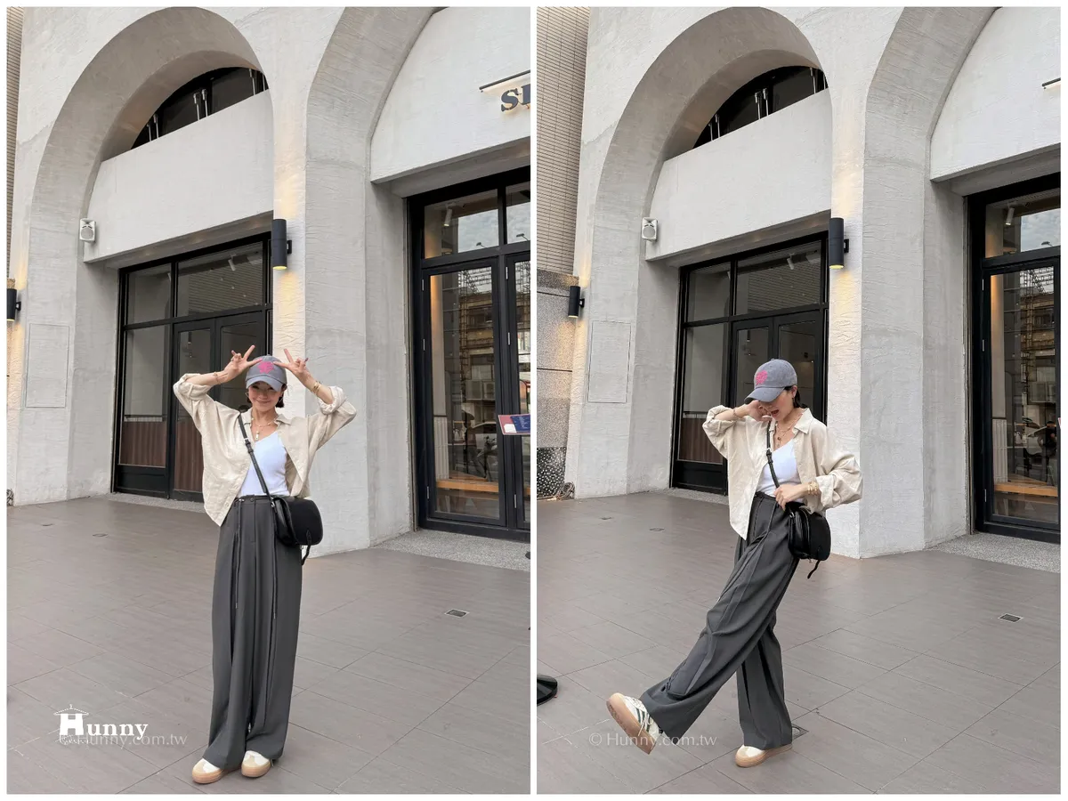 外觀看起來是正式的西裝寬褲,但有加上抽繩的關係讓它也可以走微休閒的風格~