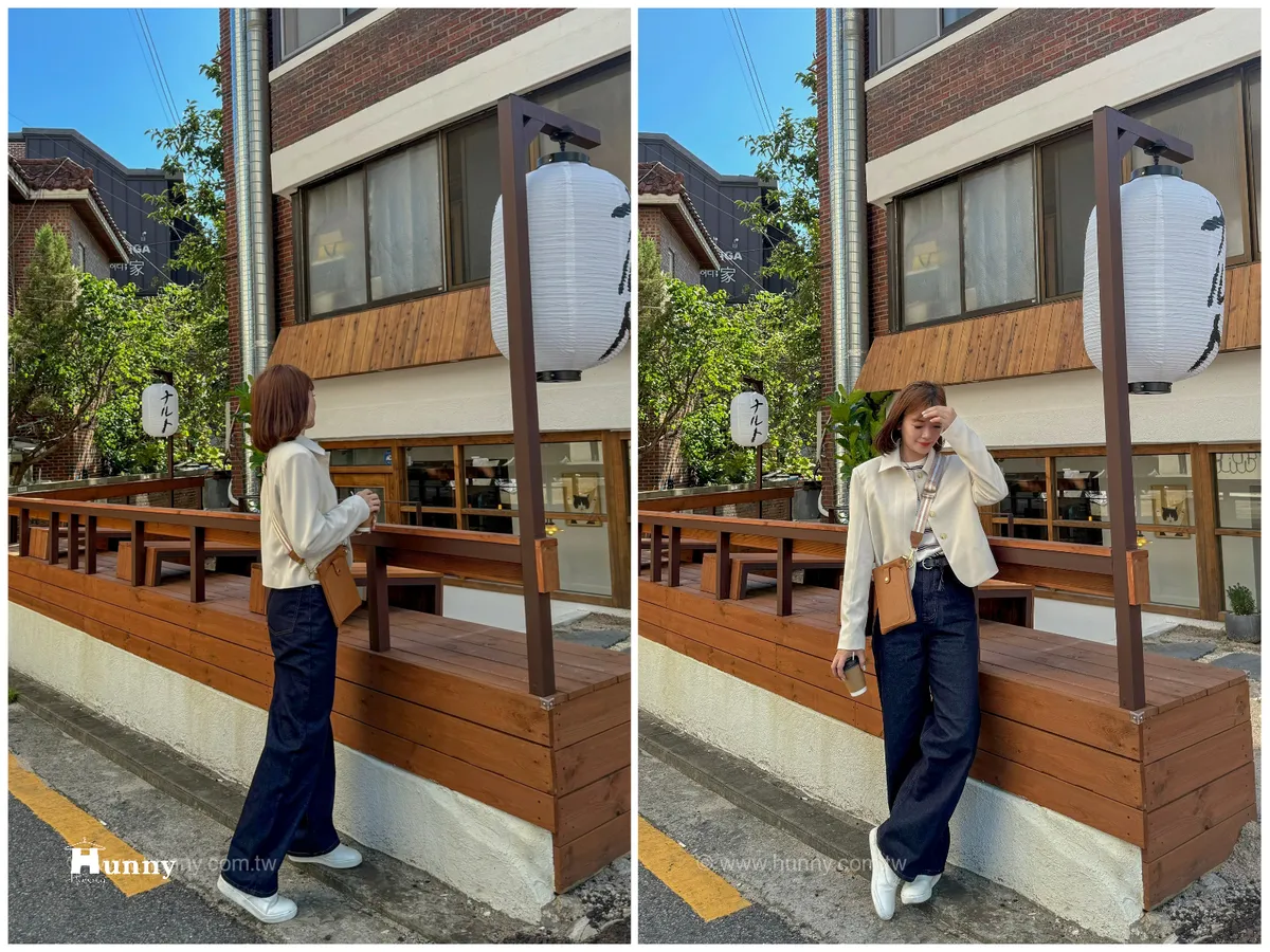 這件真的是超級經典深藍直筒褲 上身簡單搭配一件白短T就可以