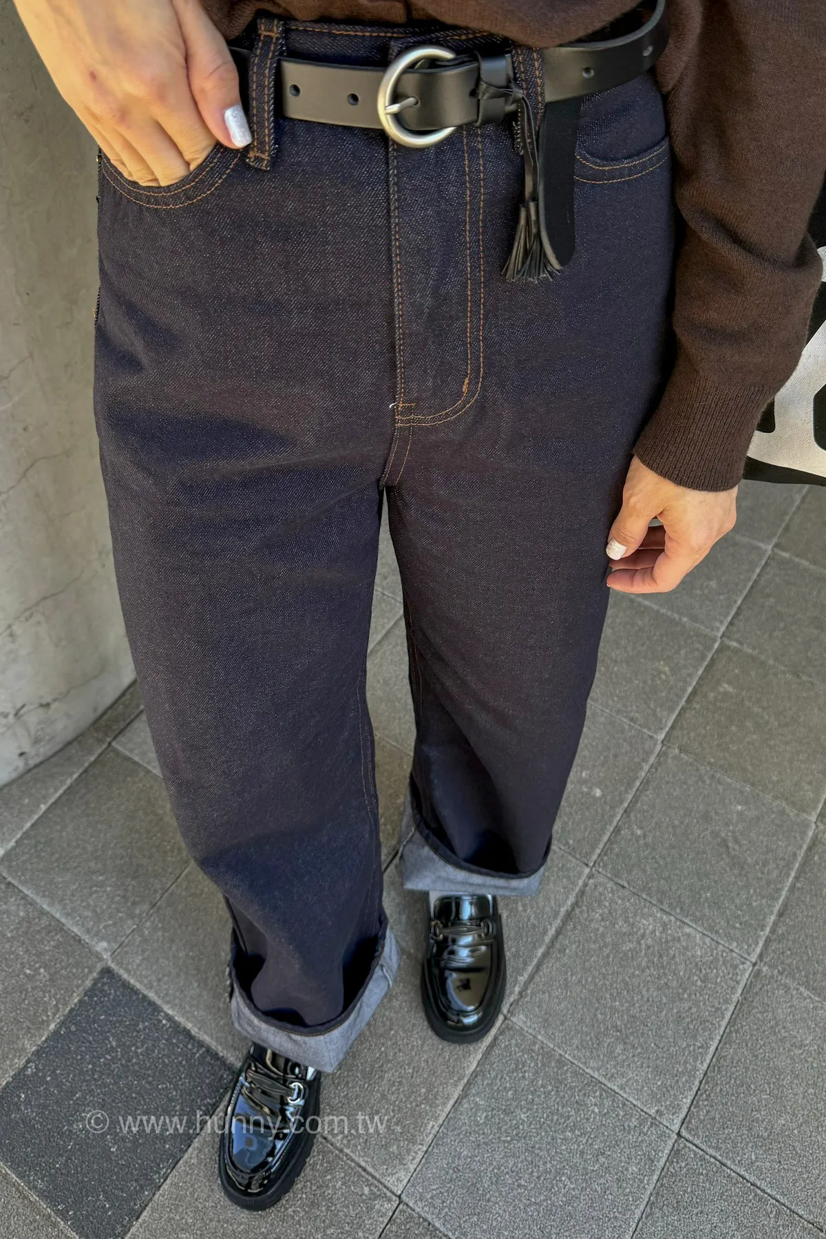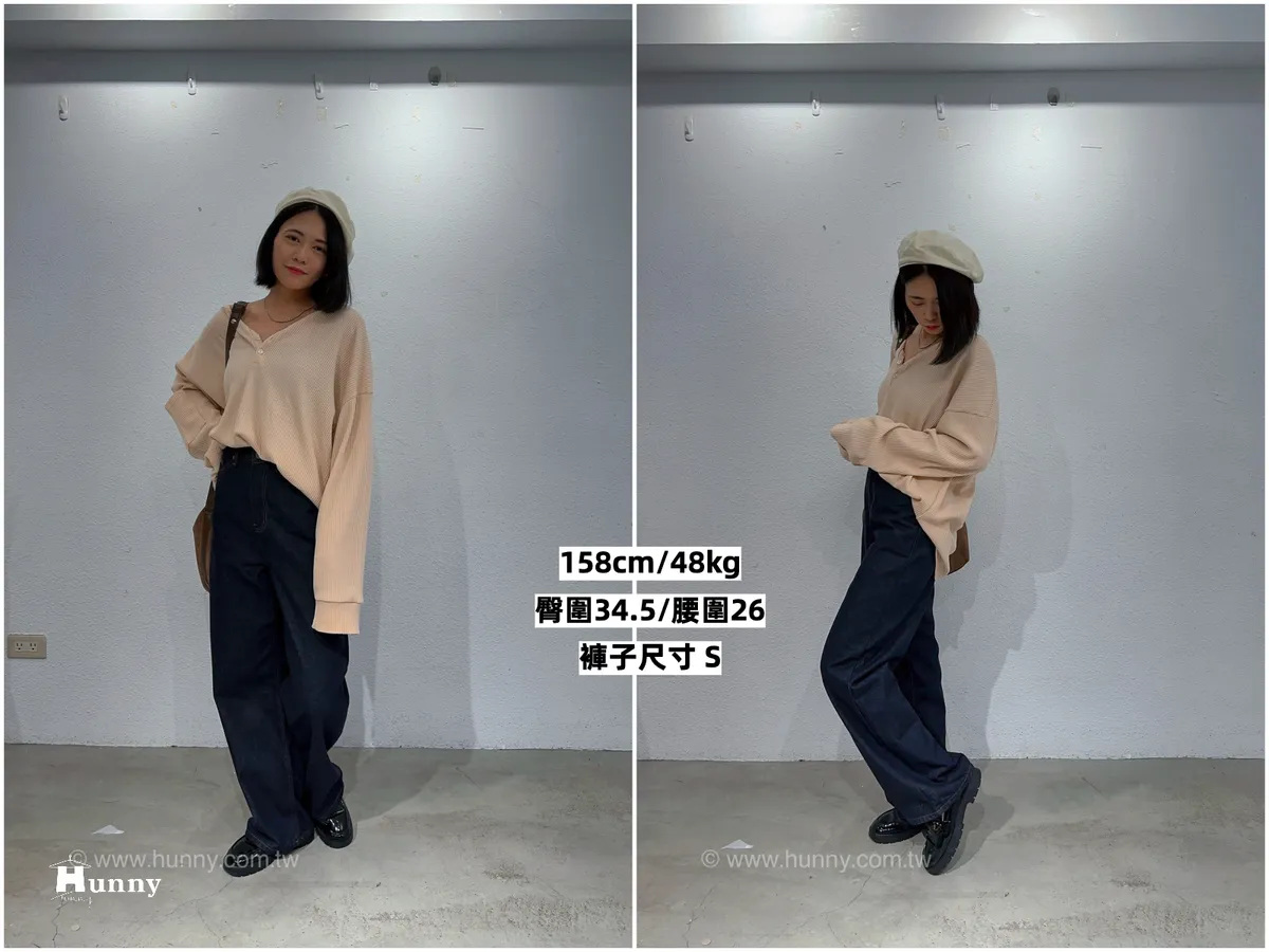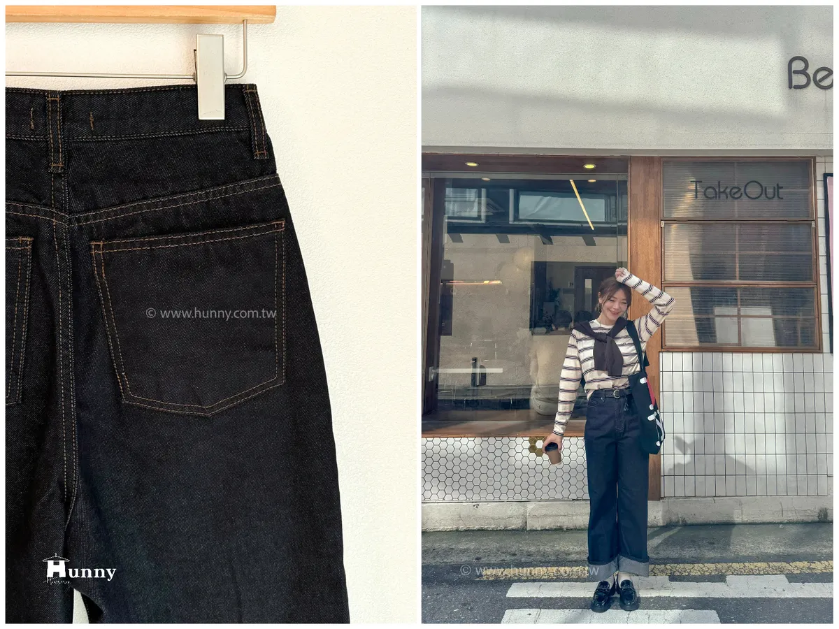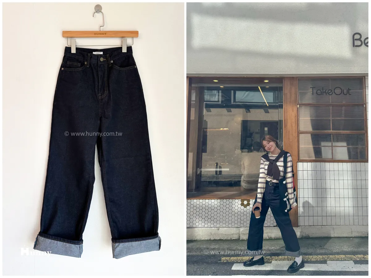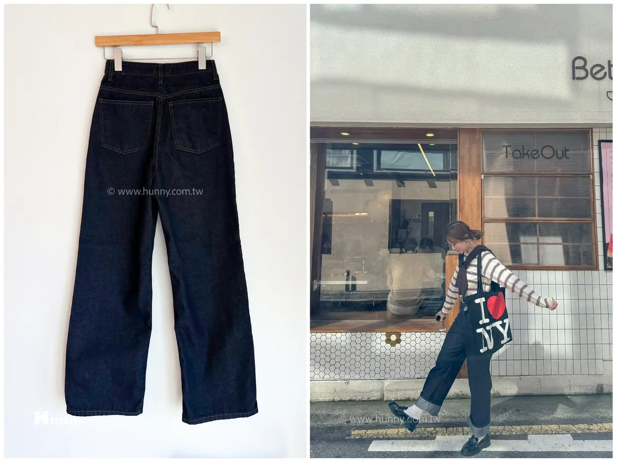 經典又百搭的深藍直筒寬褲 非常推薦喔~