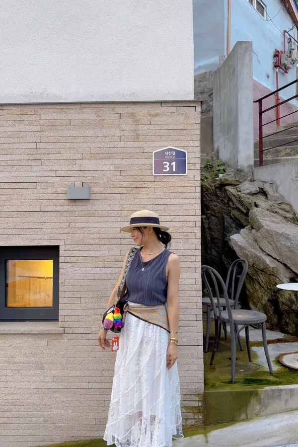 小編看到歐膩也會在裡面搭一件透膚的長T