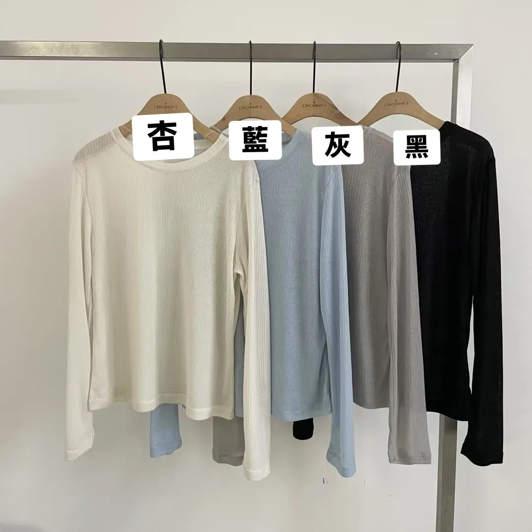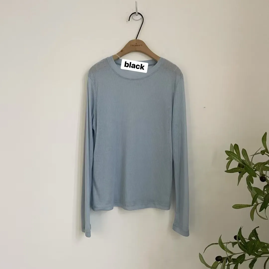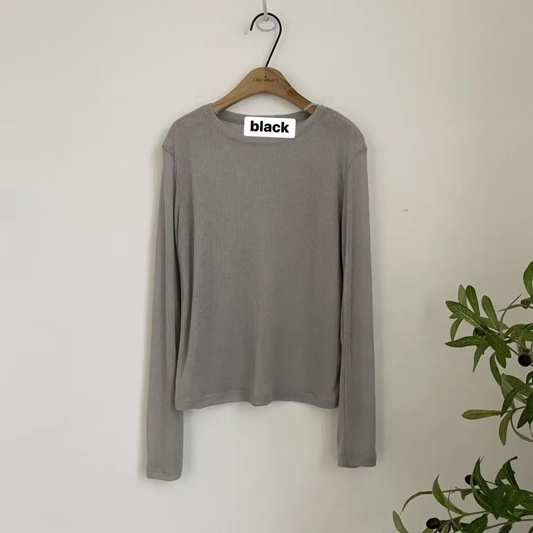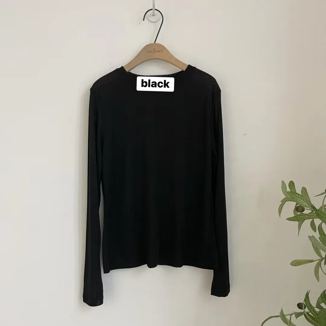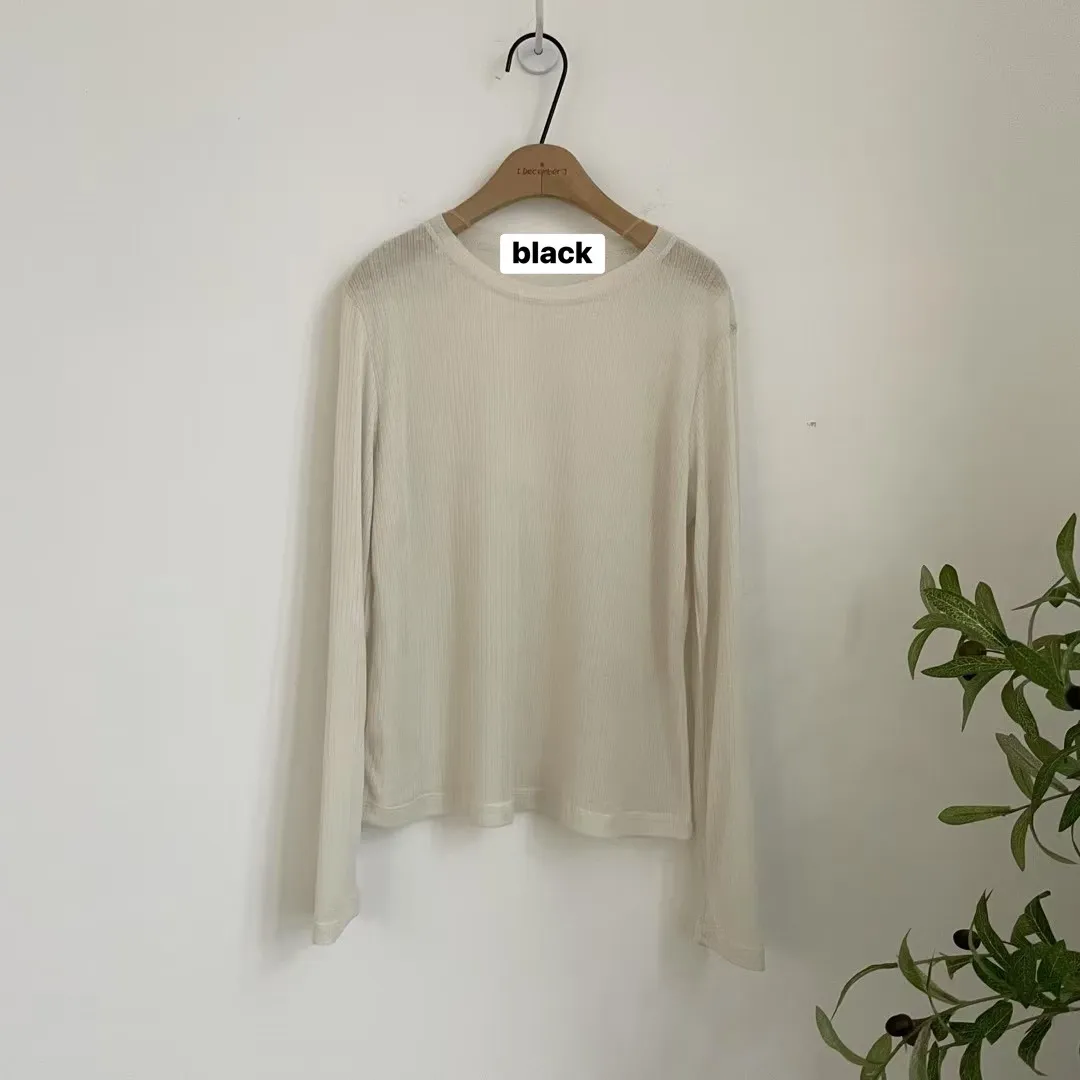 SP28 八爺選品 躺在雲朵上親膚細直紋薄透T 黑(T)