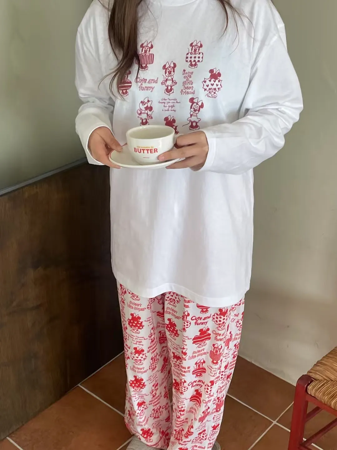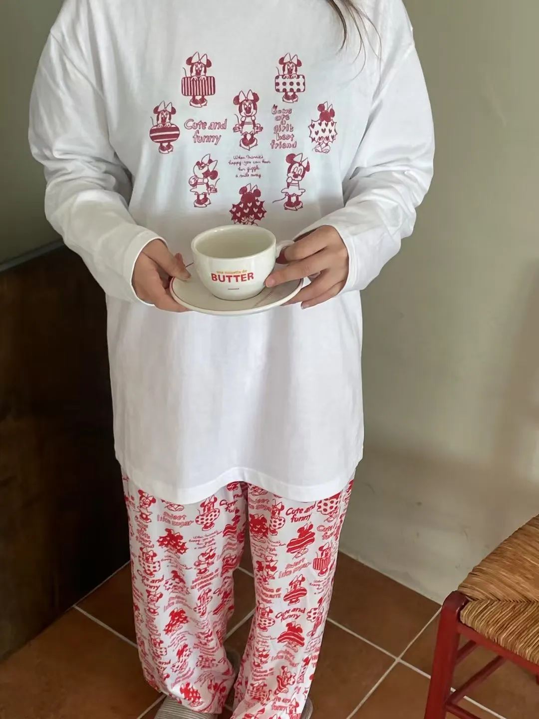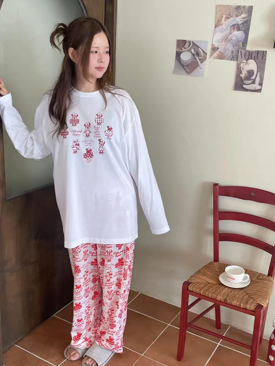 SP31 微磨毛水洗表情包挺棉長T 黑米奇/紅米妮