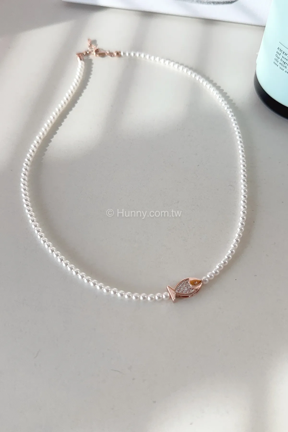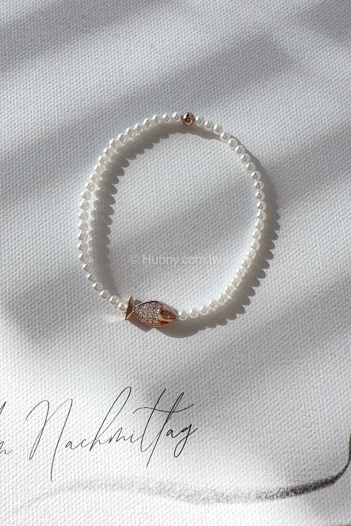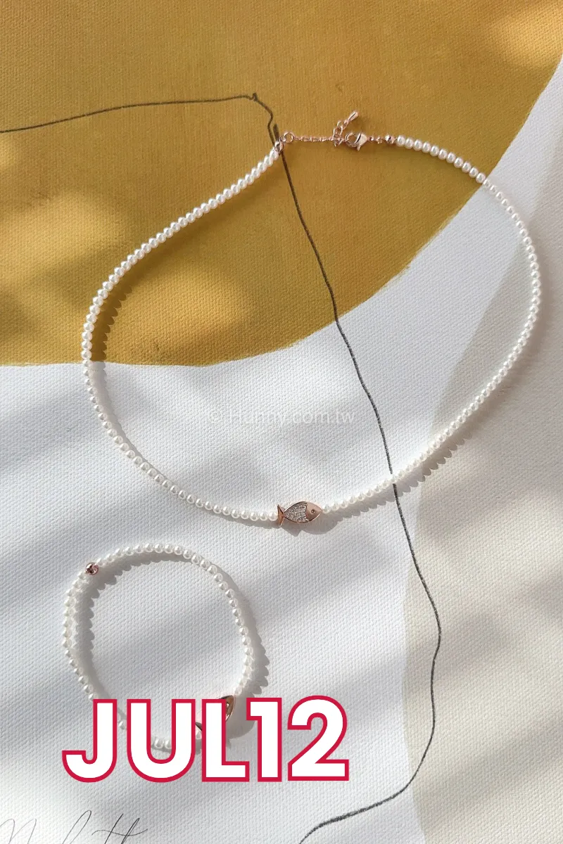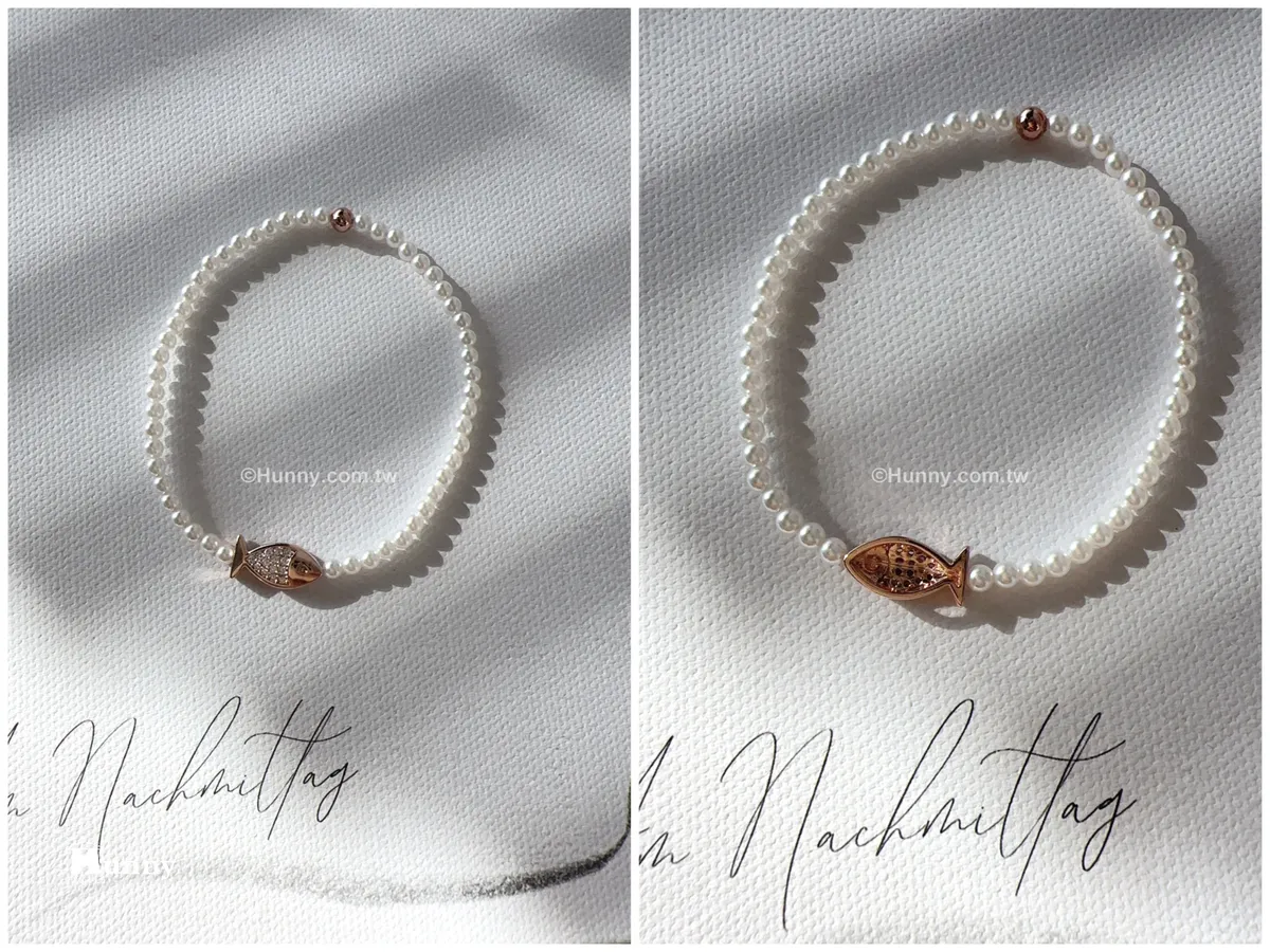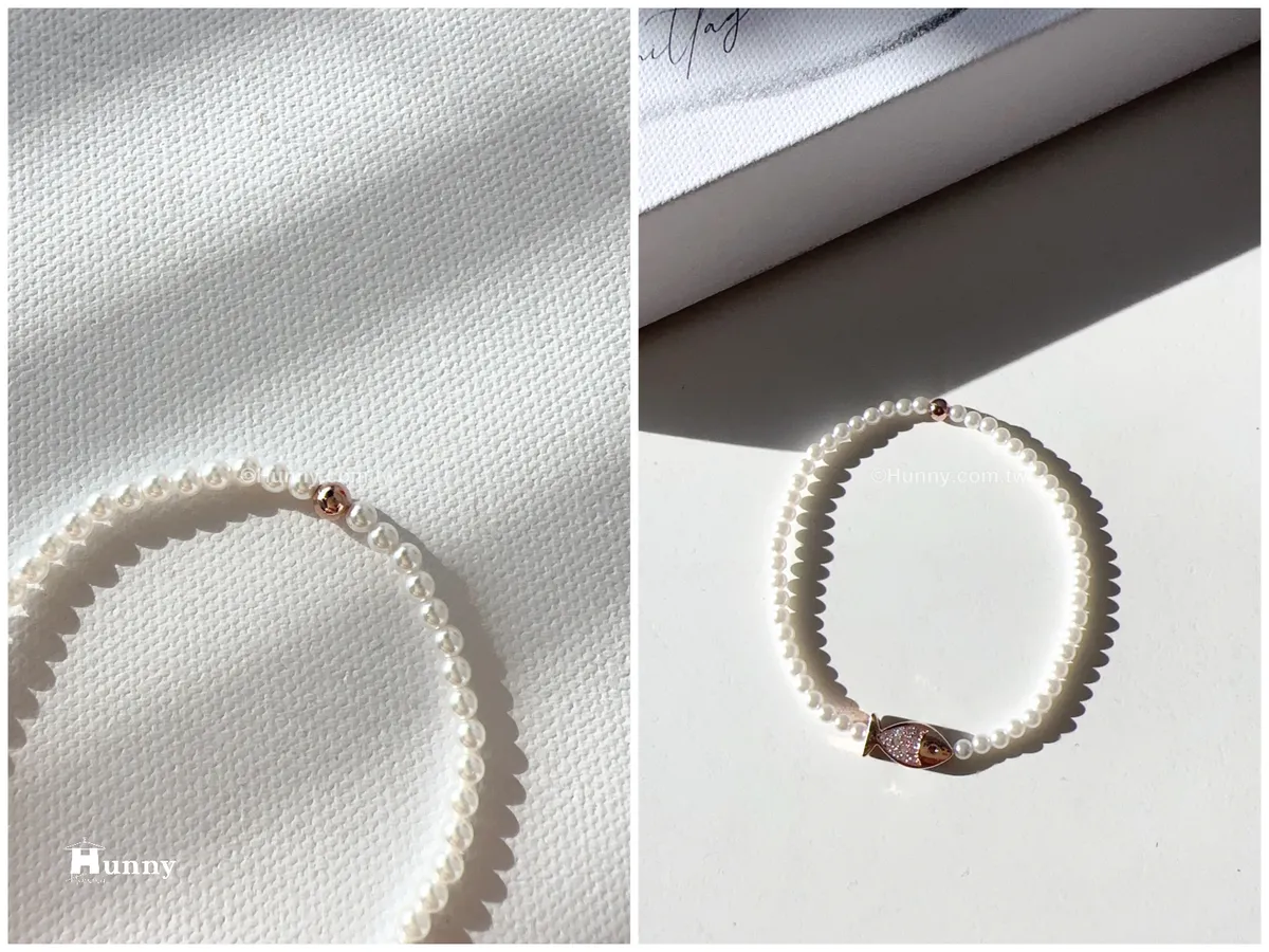 SP86 高級小珍珠玫瑰金鑽魚手鏈
