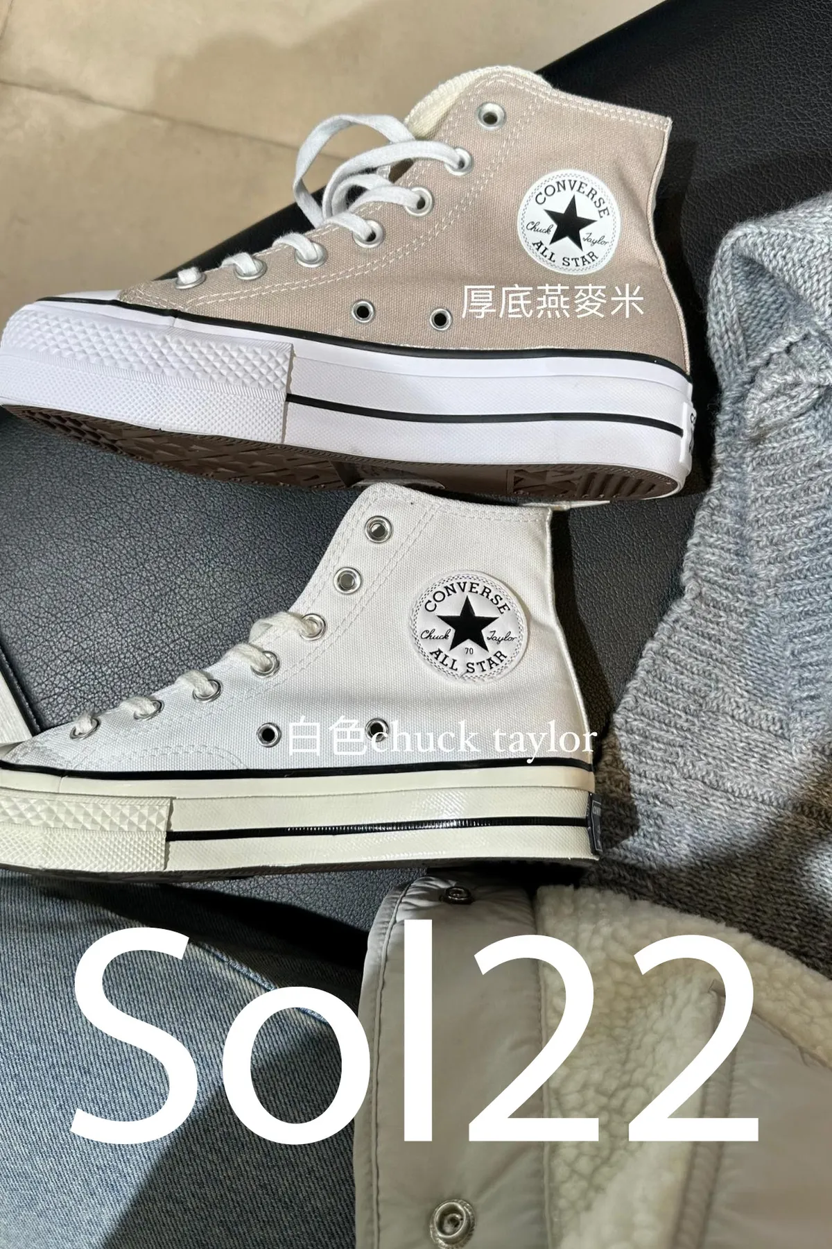 Sol22 韓國限定converse高筒帆布鞋 厚底燕麥米/白色 220-280