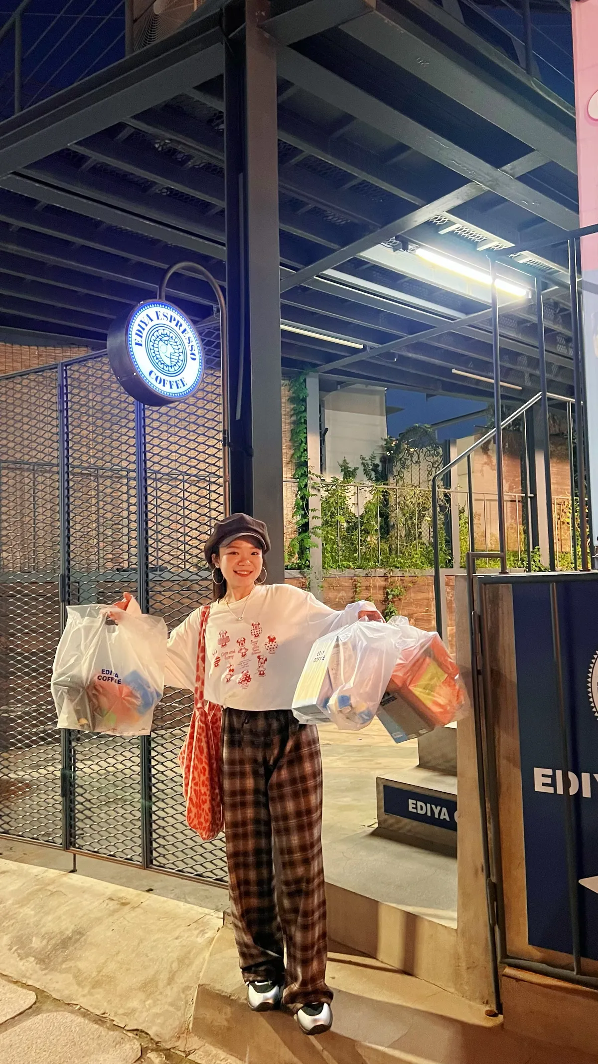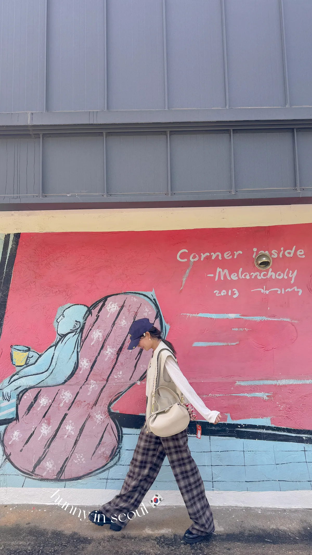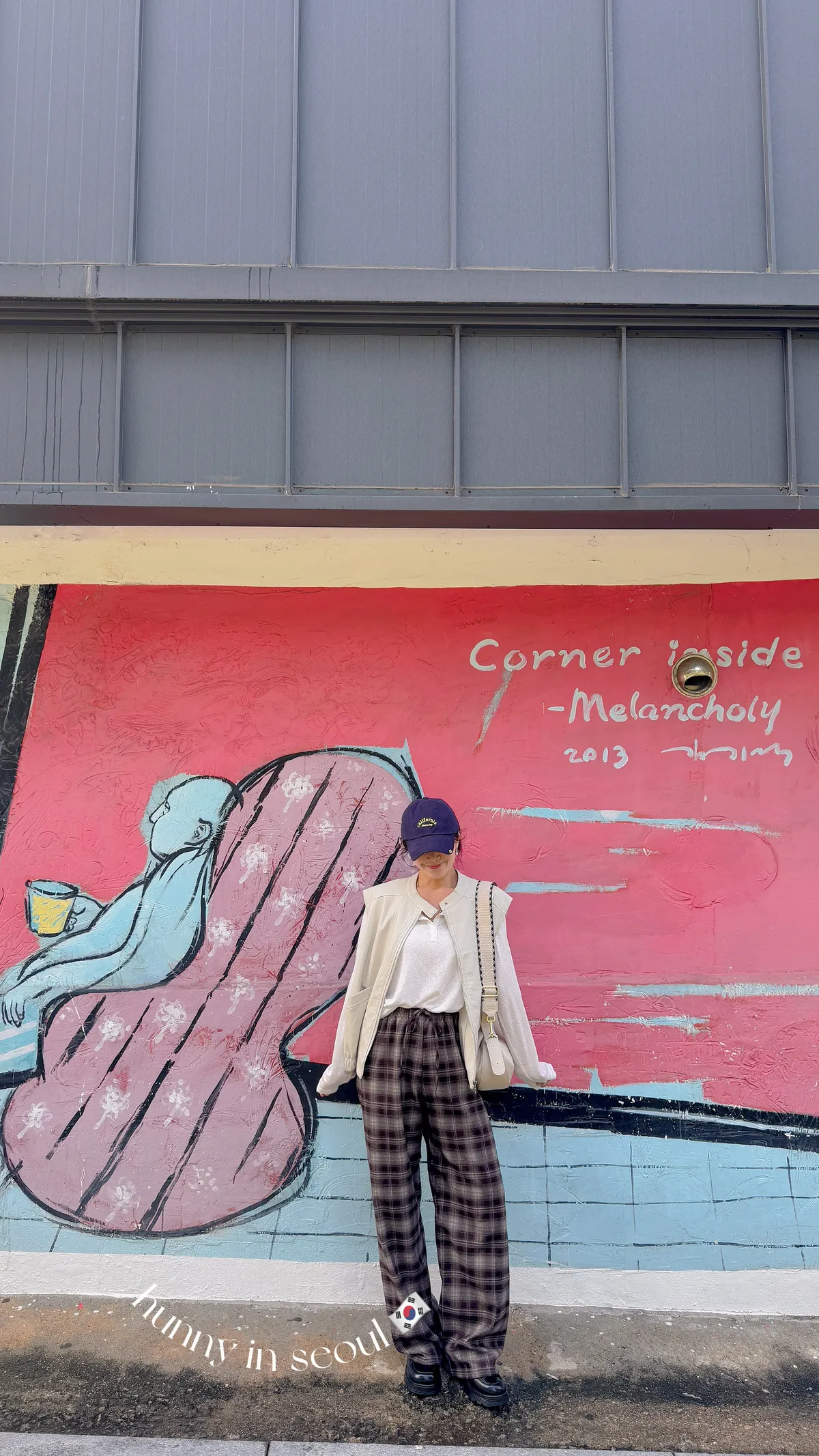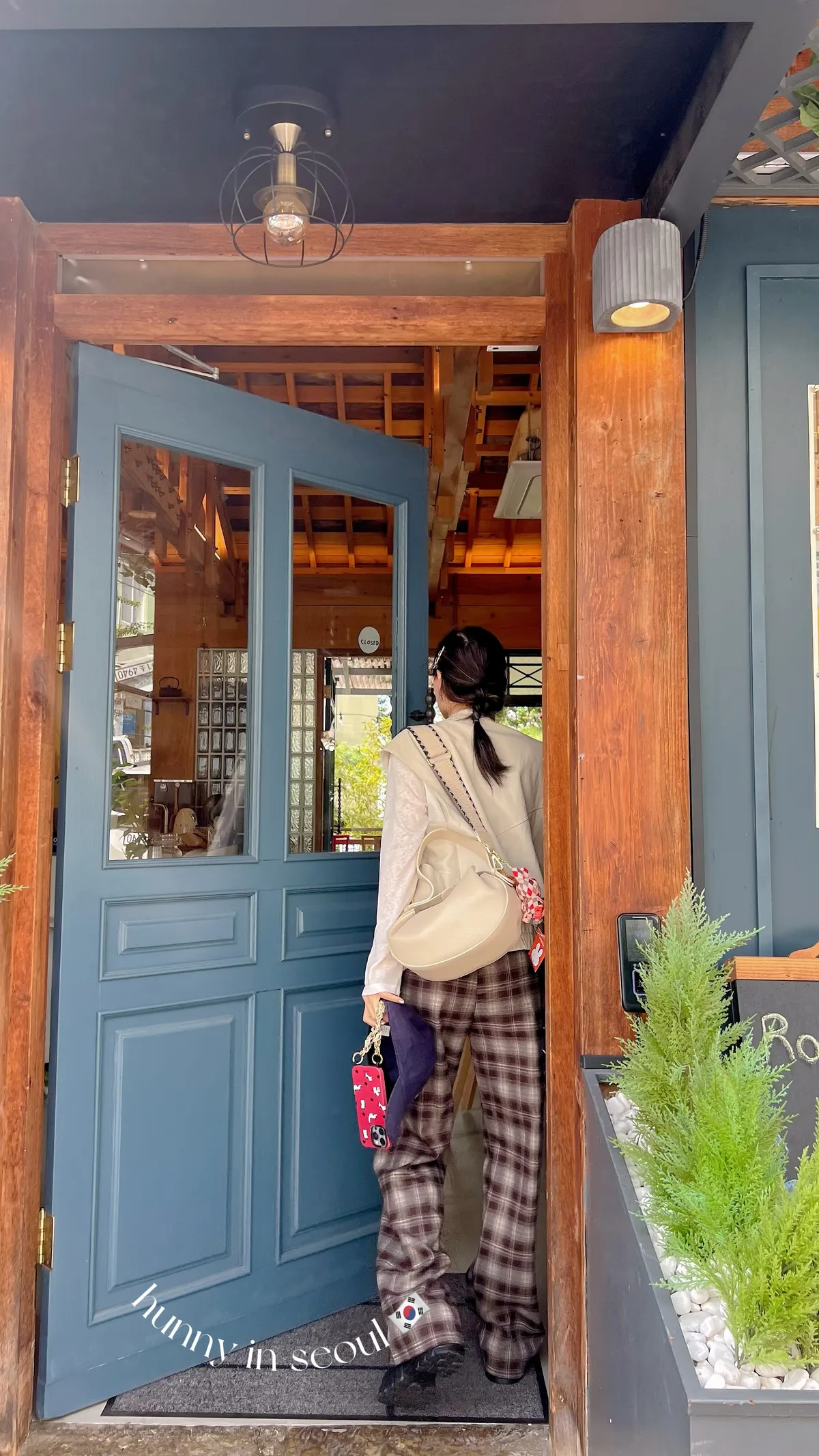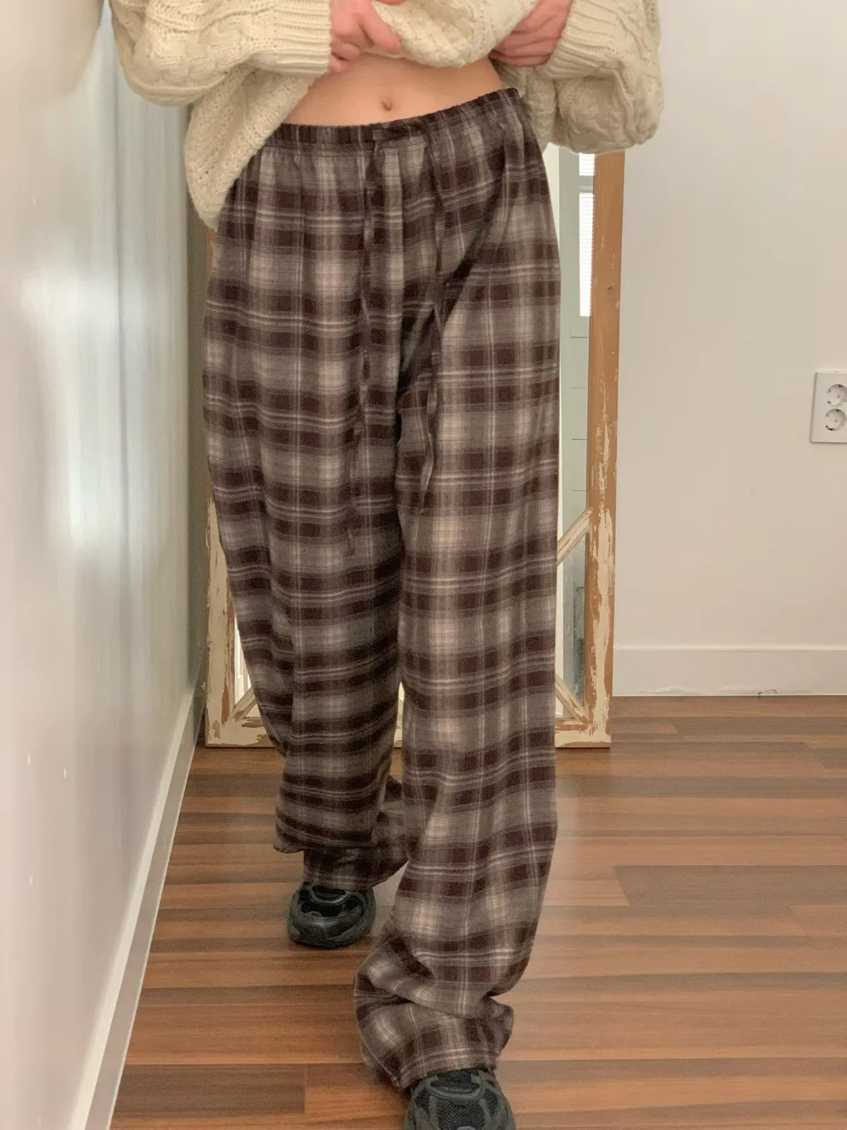 Sp21 慵懶小女人磨毛格紋寬褲 藍現貨