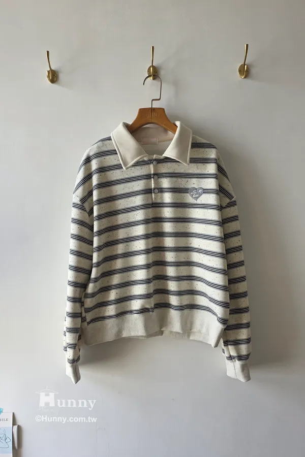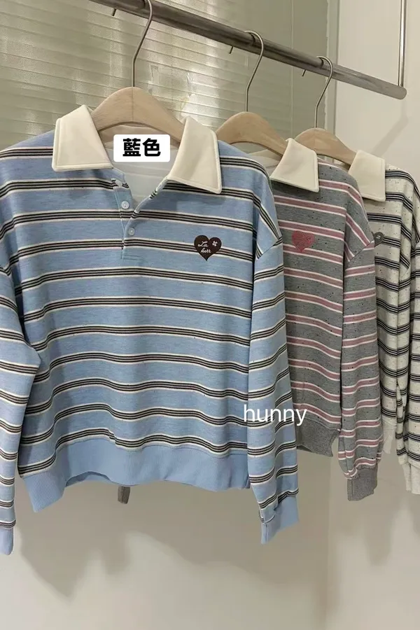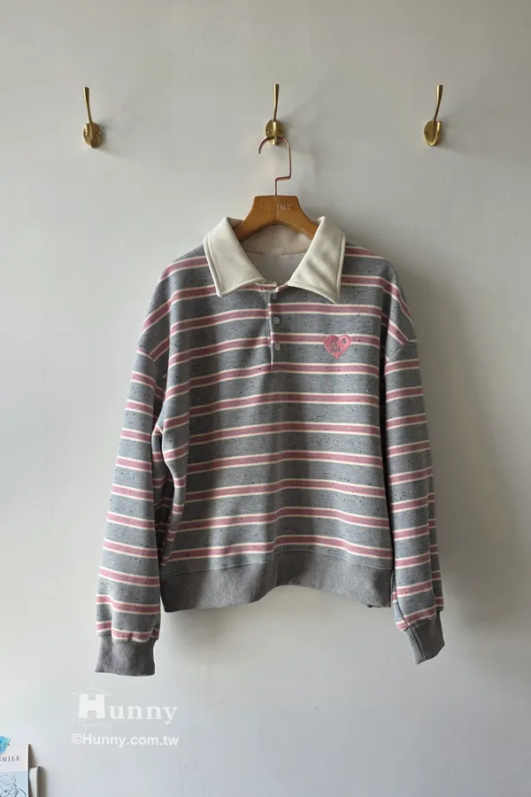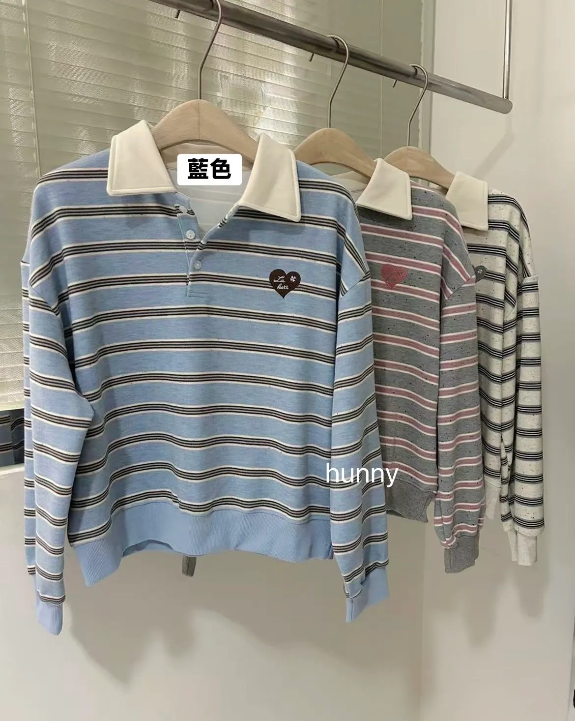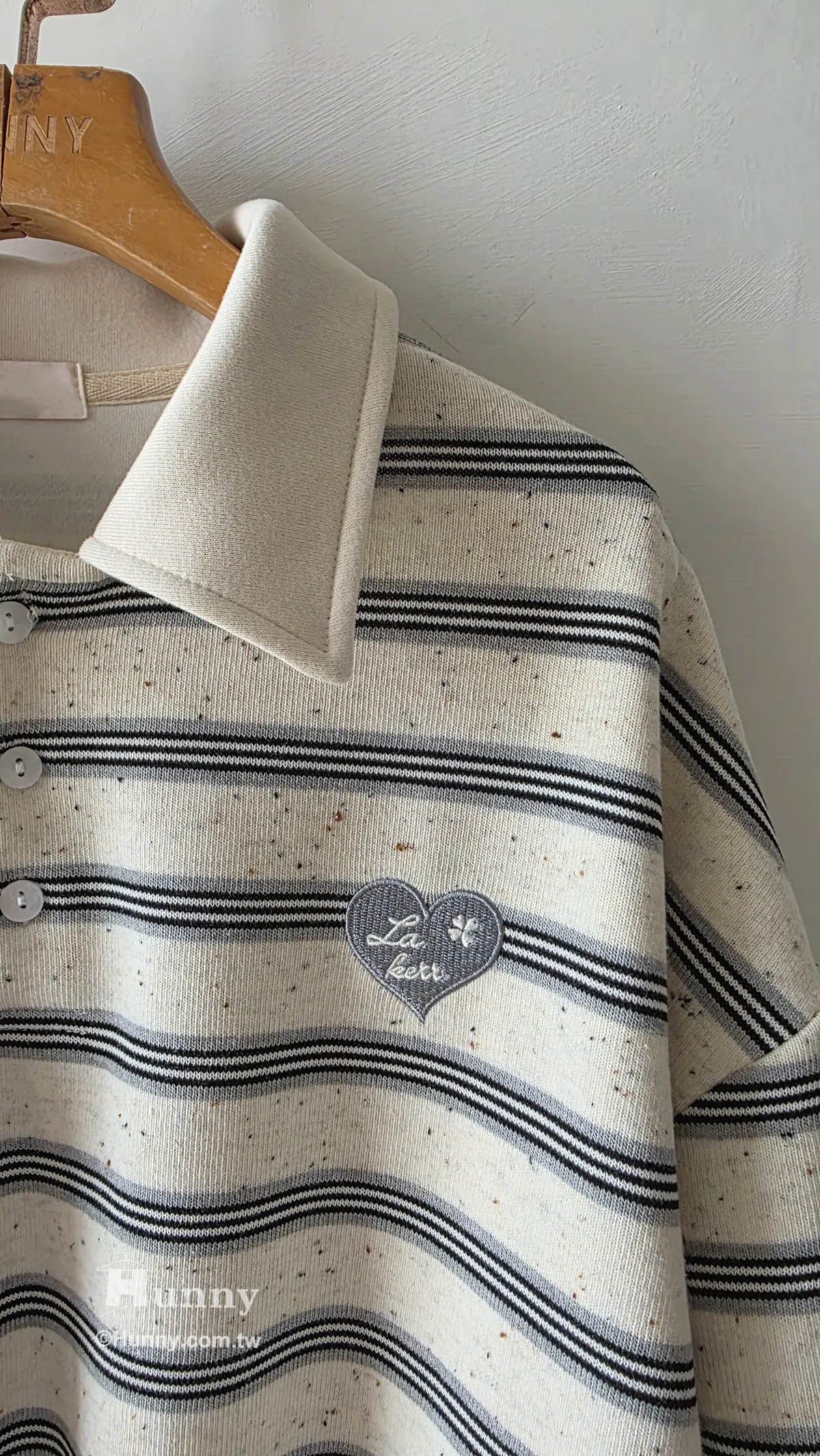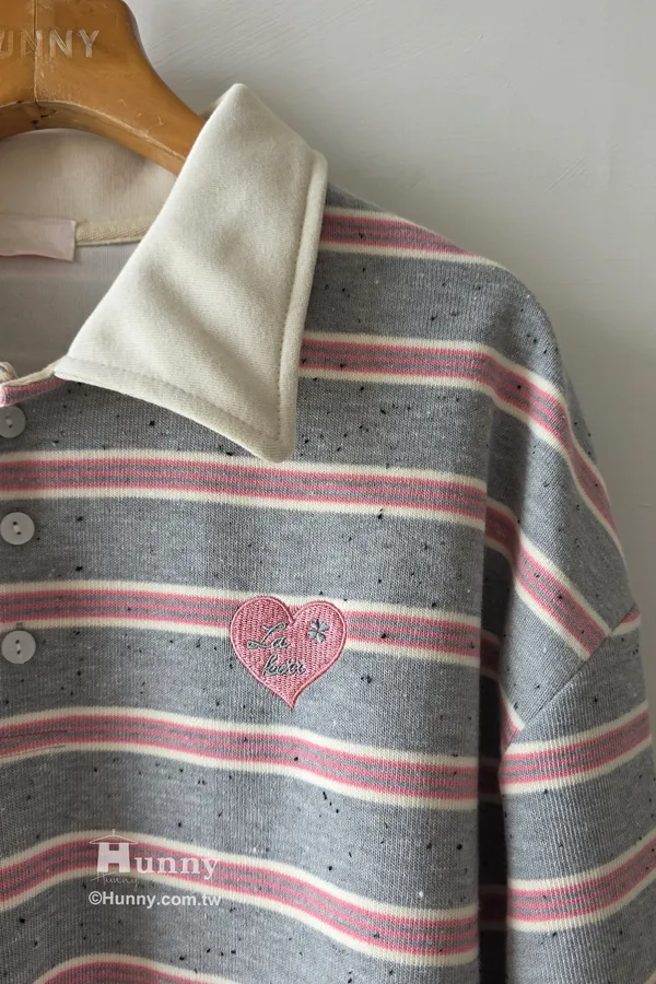 非常推薦這款超可愛的刺繡愛心條紋POLO長T🩷🩶