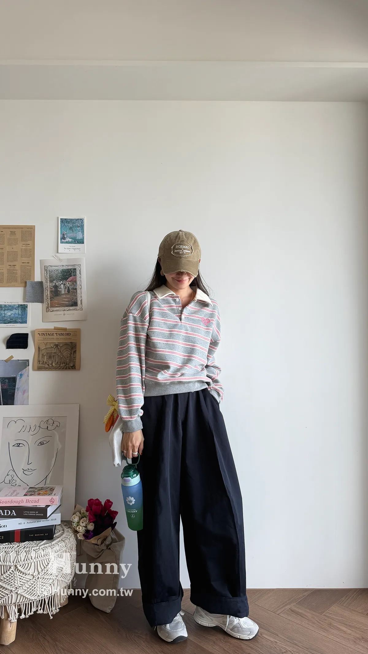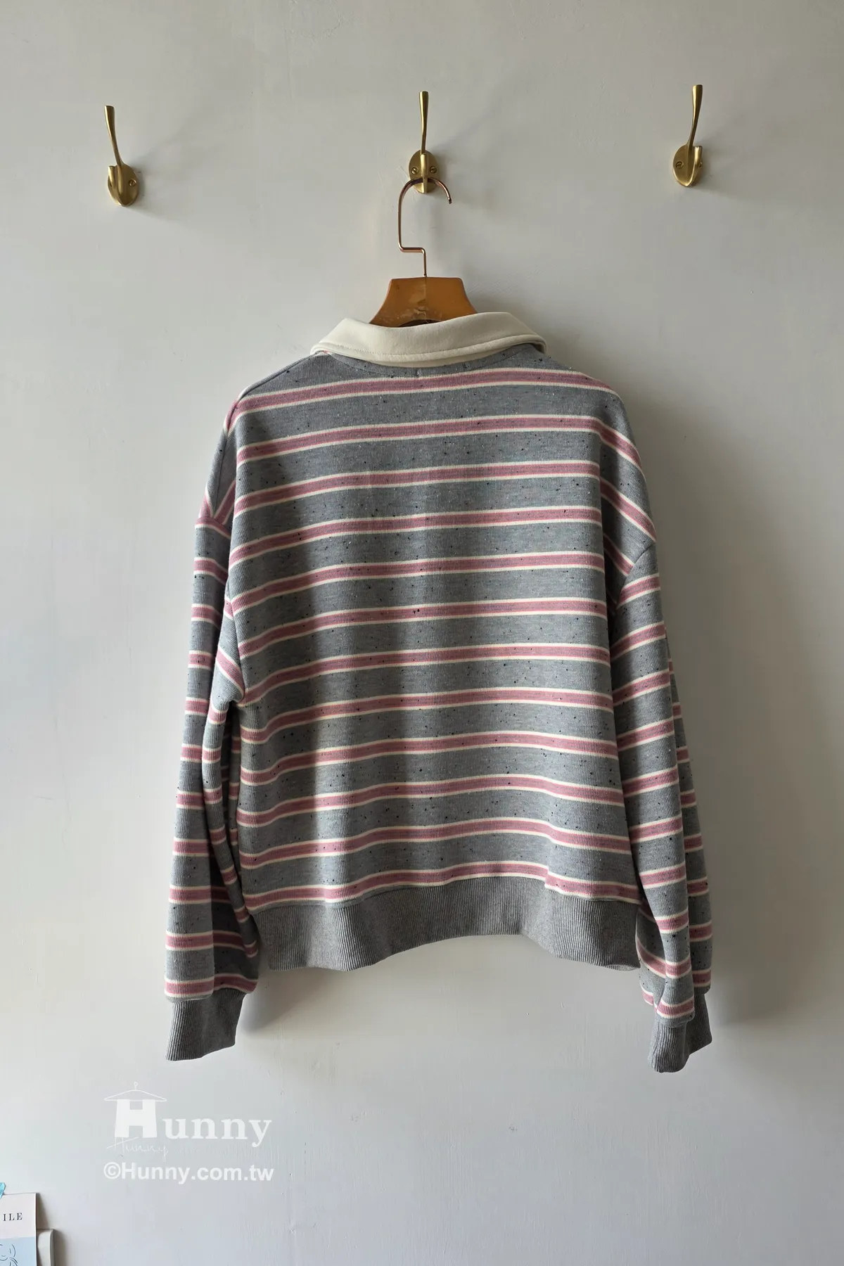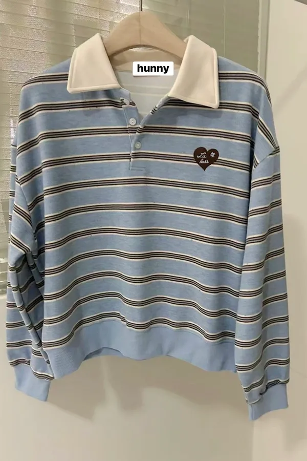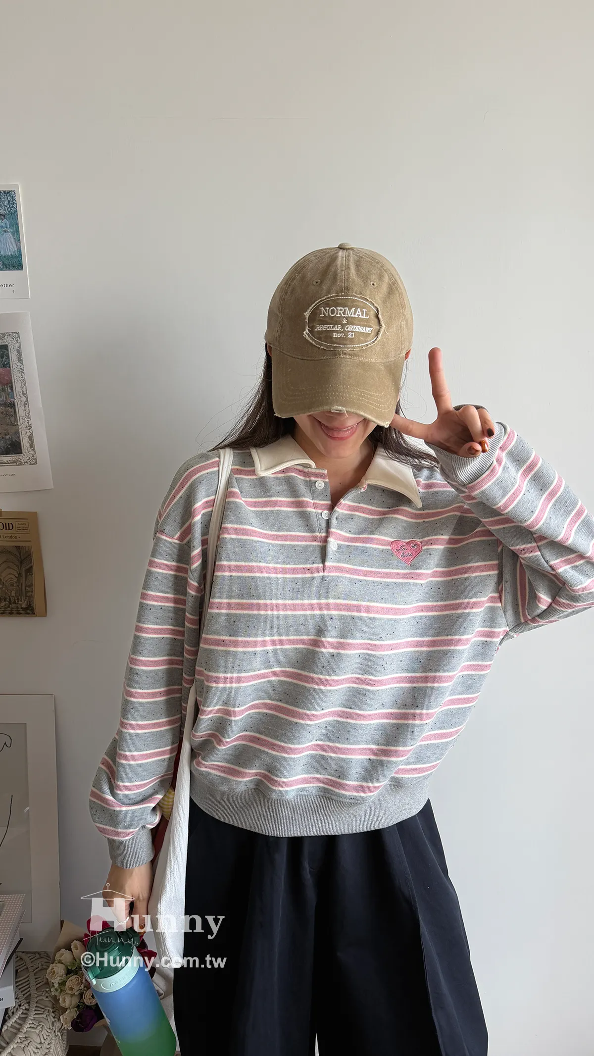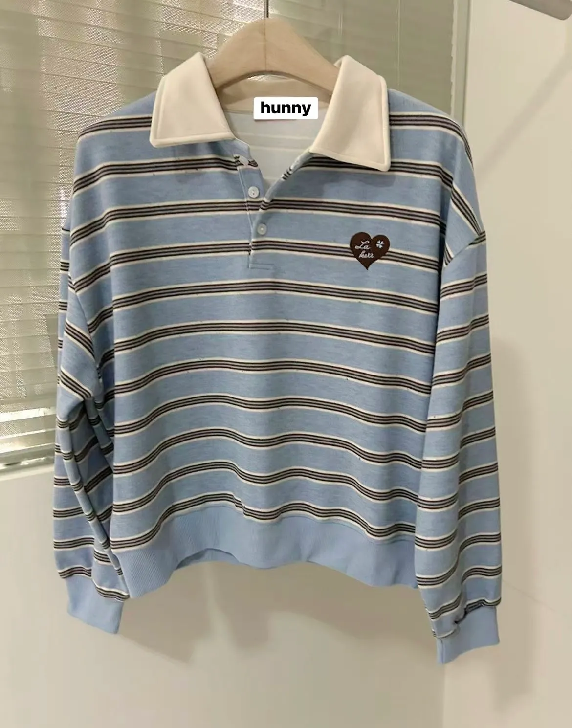 非常推薦這款超可愛的刺繡愛心條紋POLO長T🩷🩶