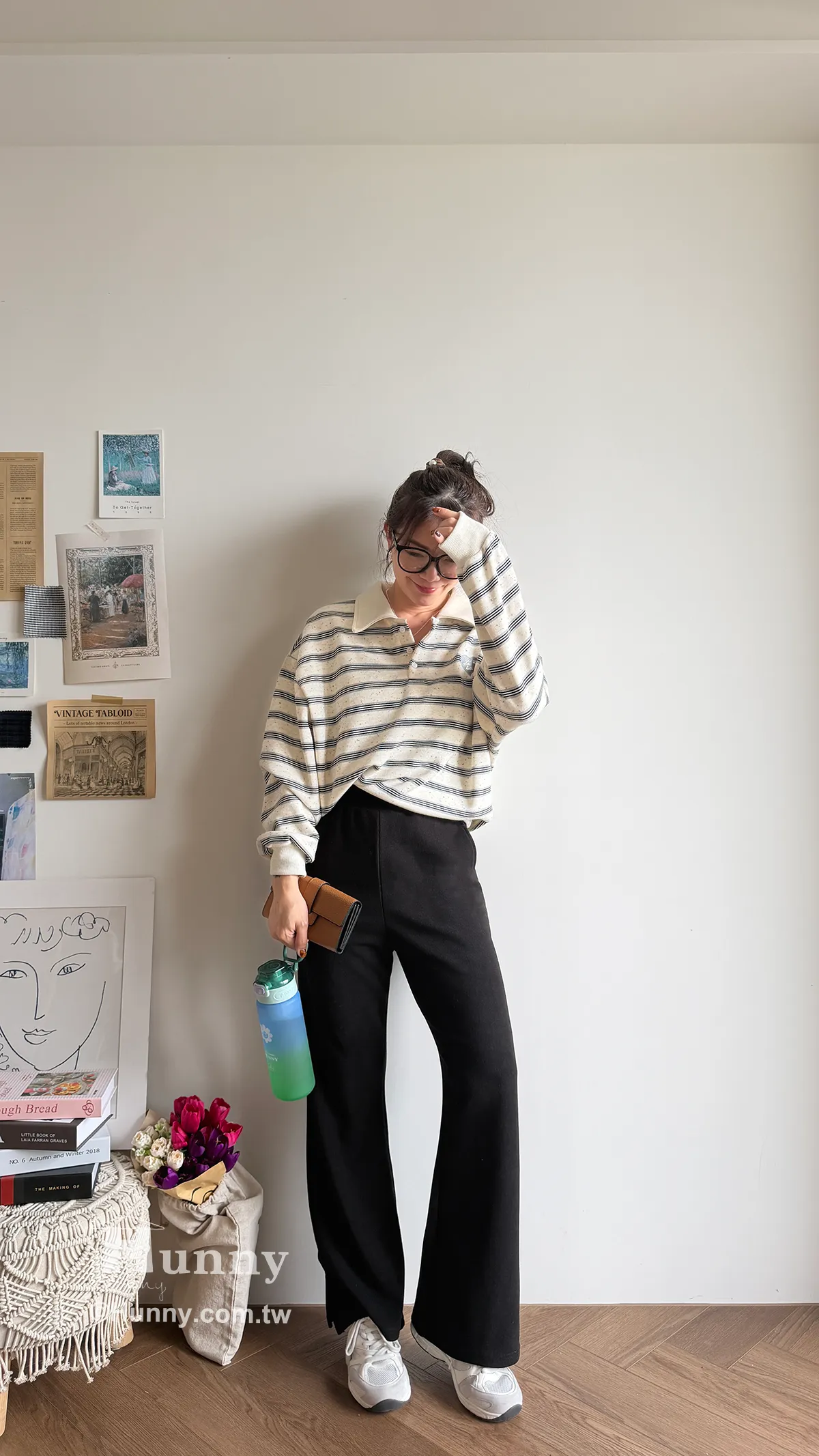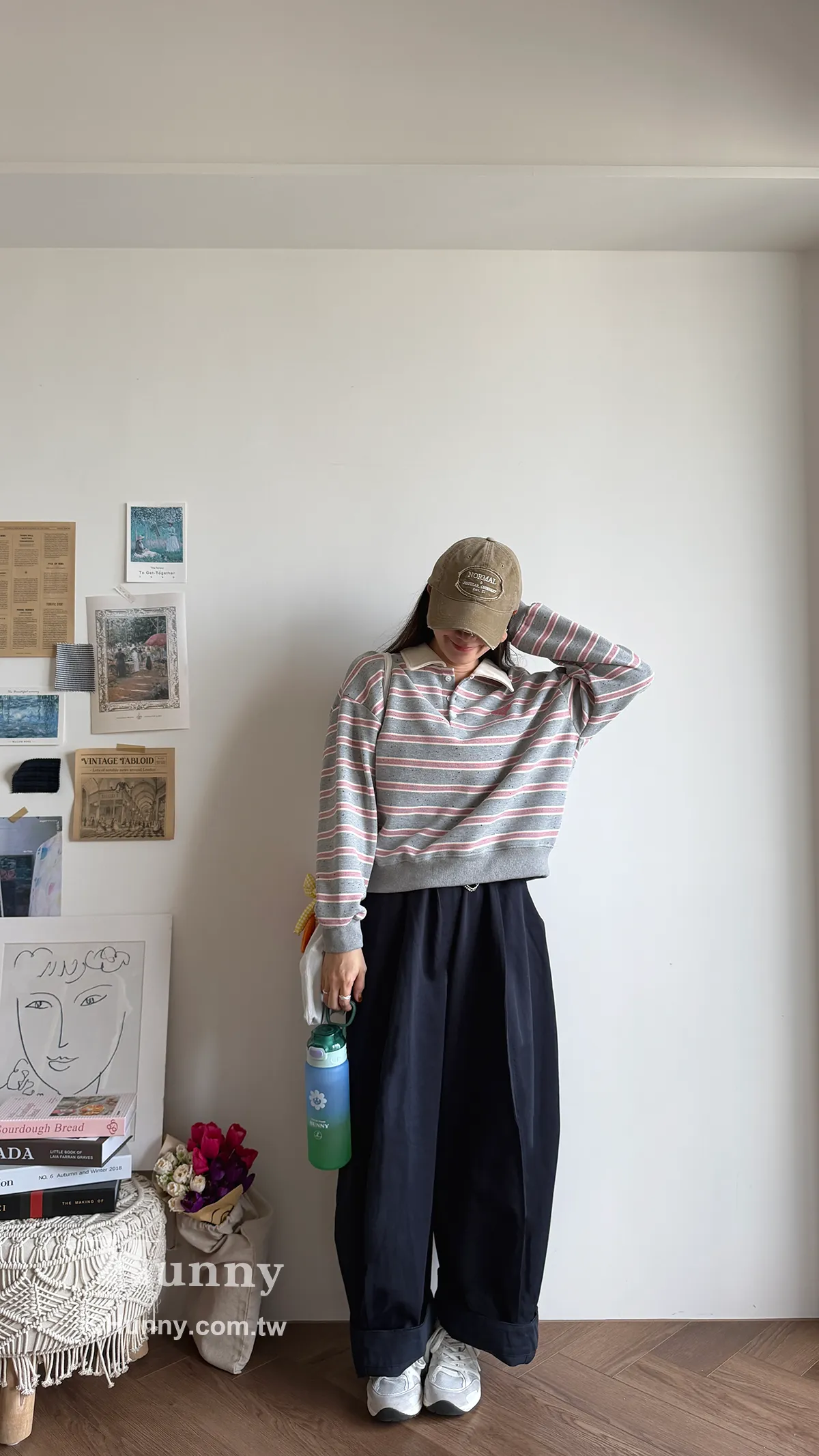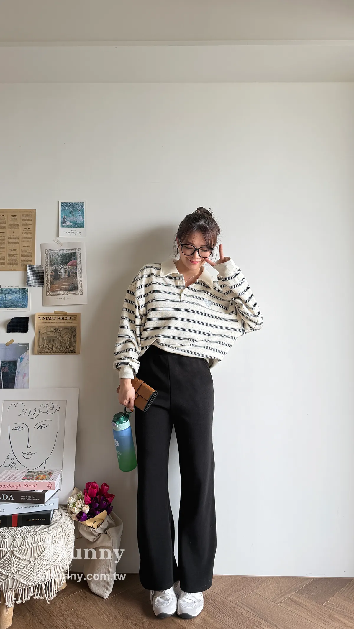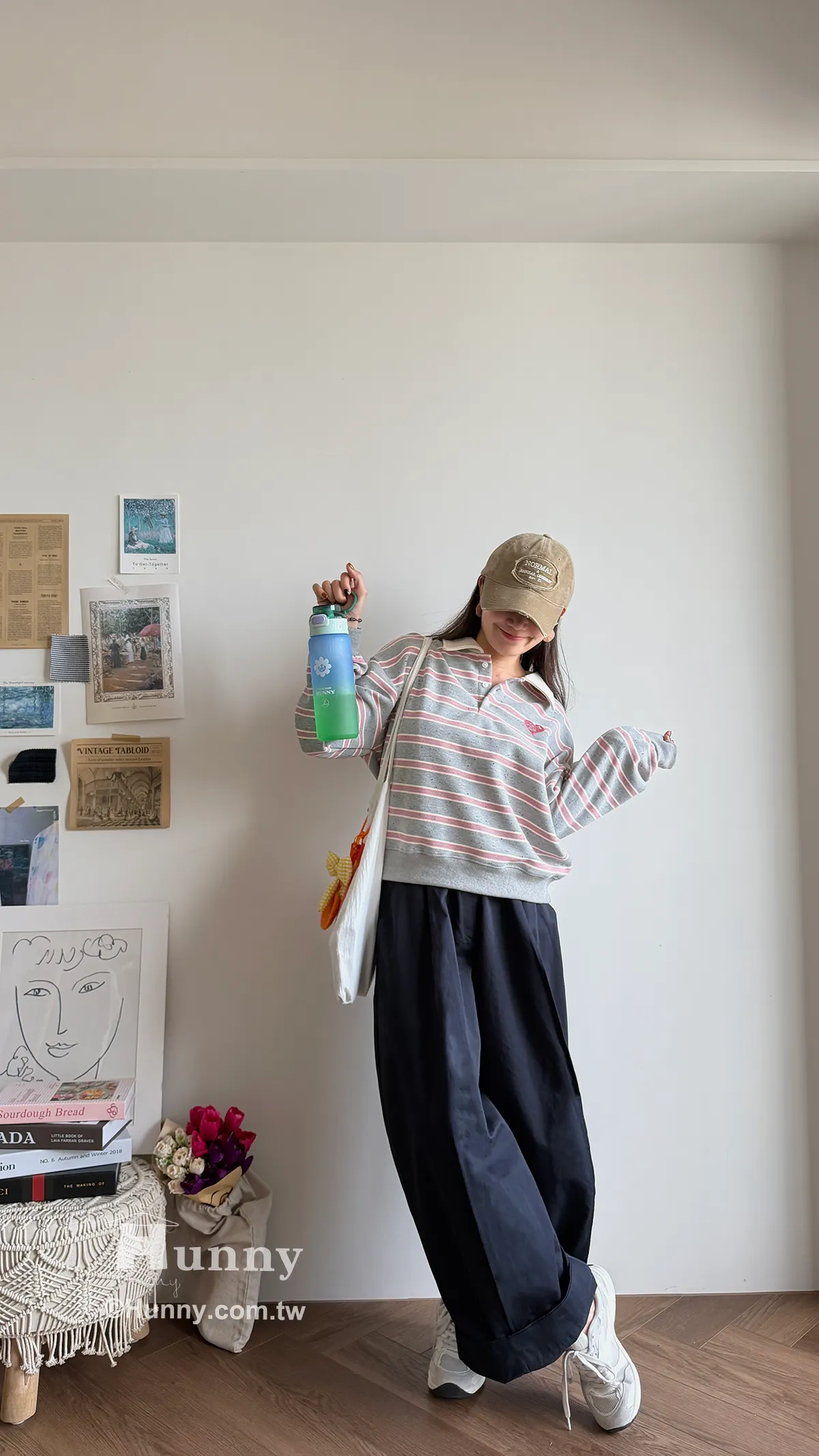 非常推薦這款超可愛的刺繡愛心條紋POLO長T🩷🩶