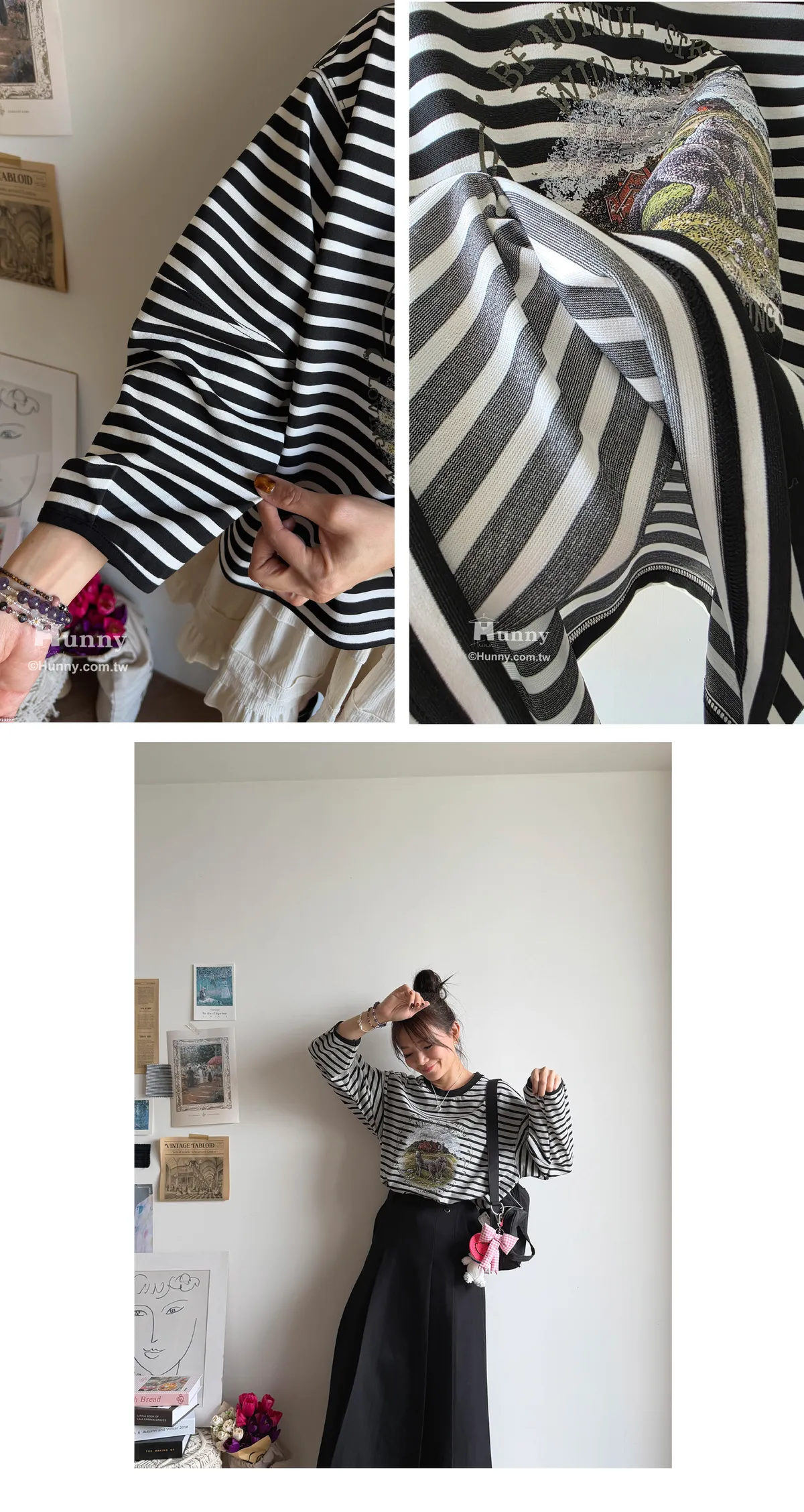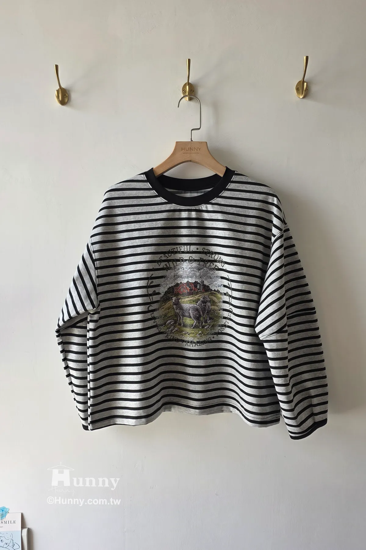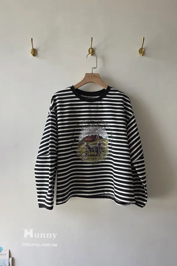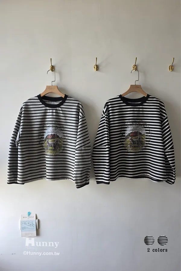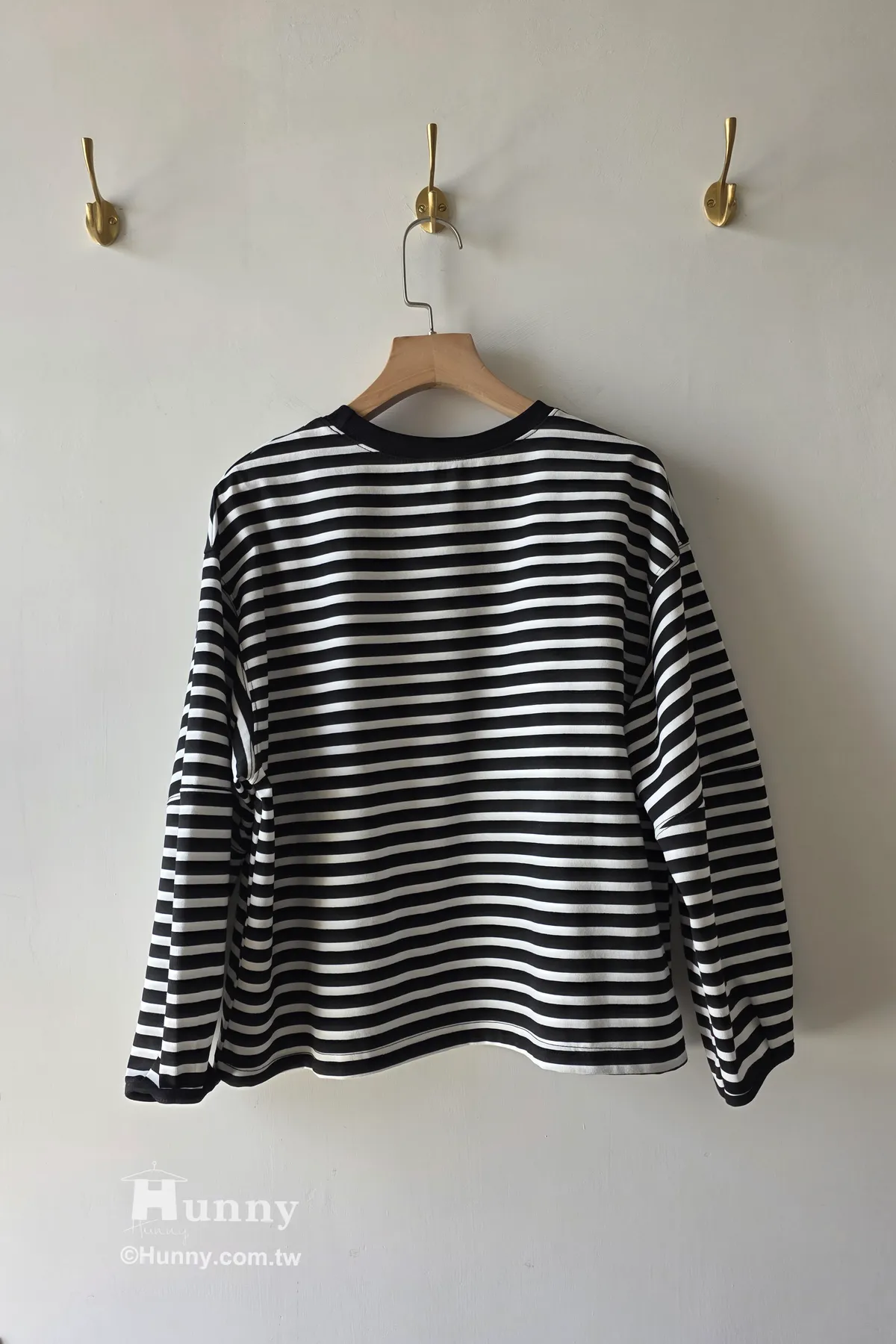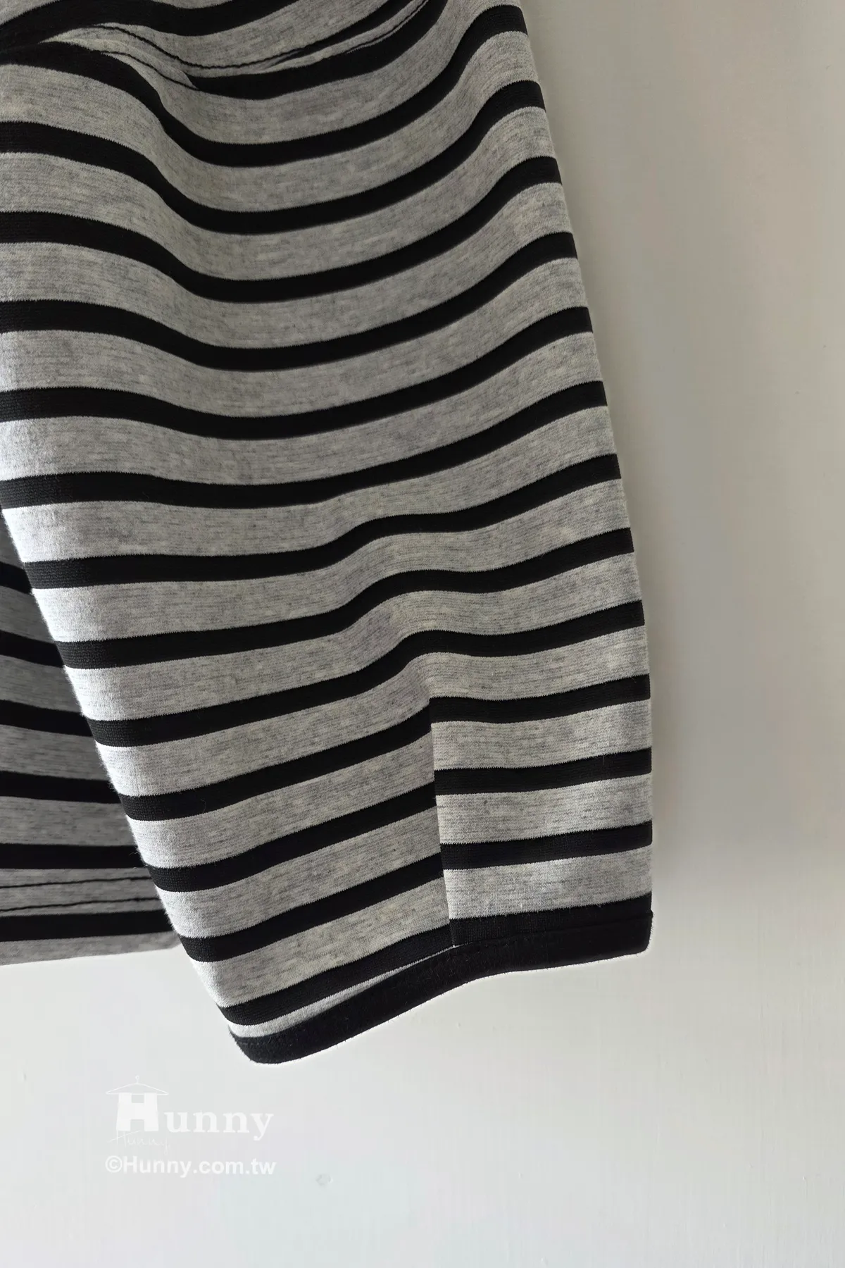 領口跟袖口有撞色的滾邊 整件也都撞色的條紋
