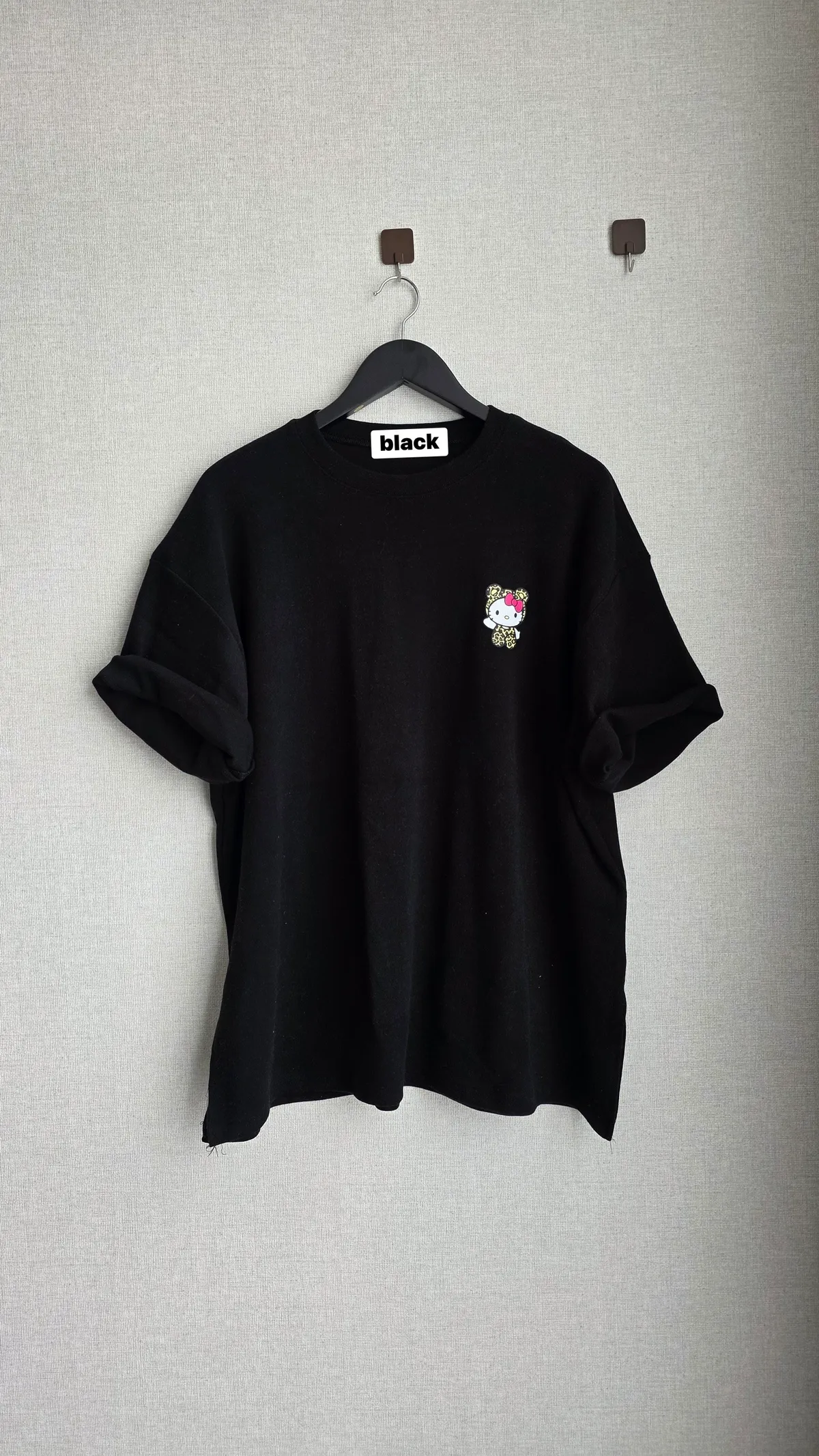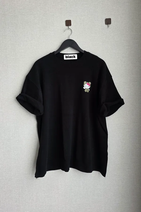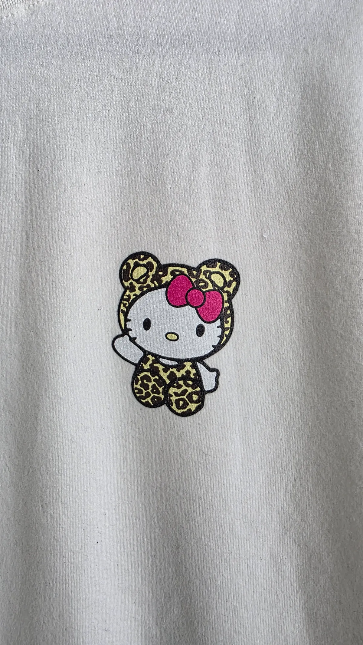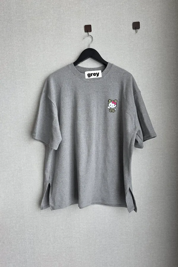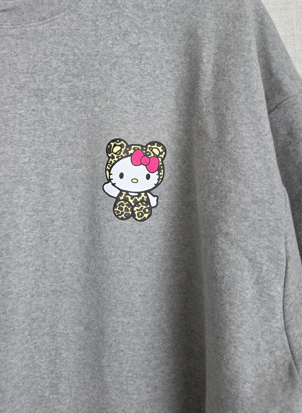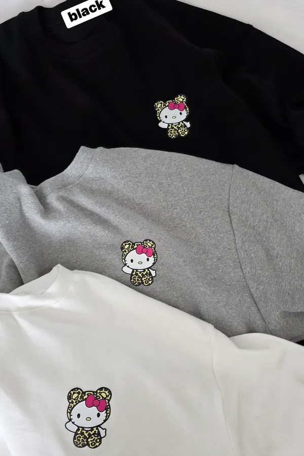 T102990 豹紋kitty厚磅數磨毛短t 黑灰白
