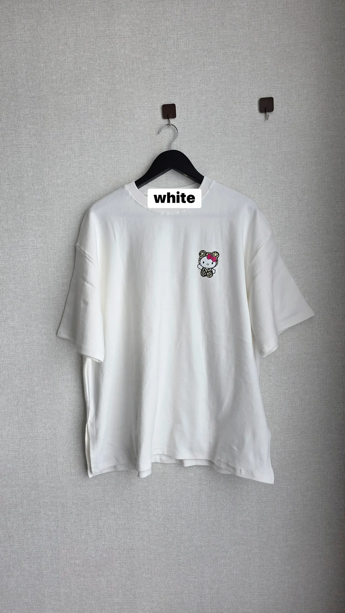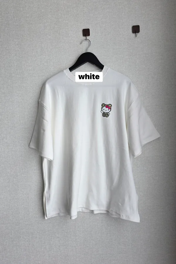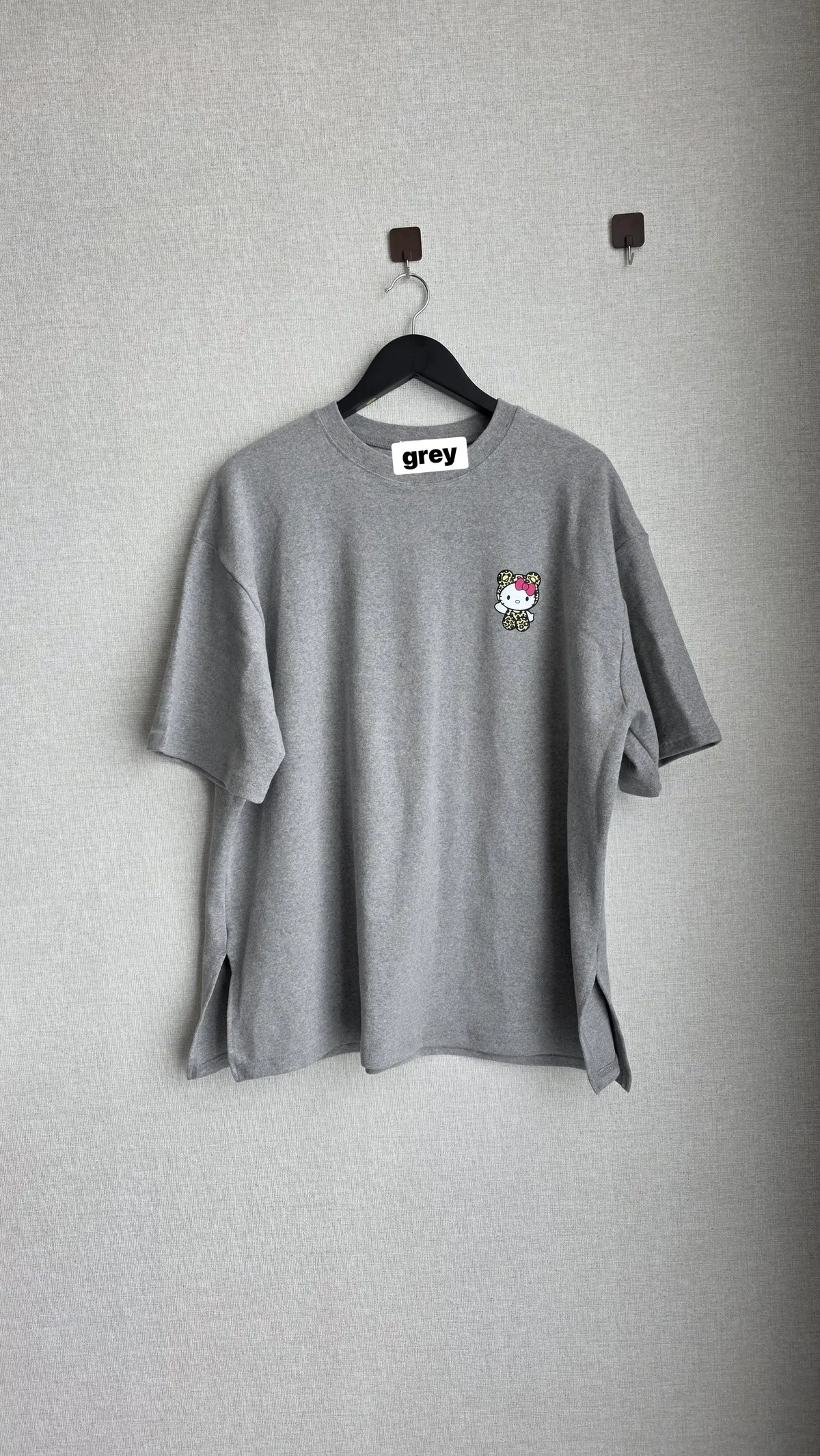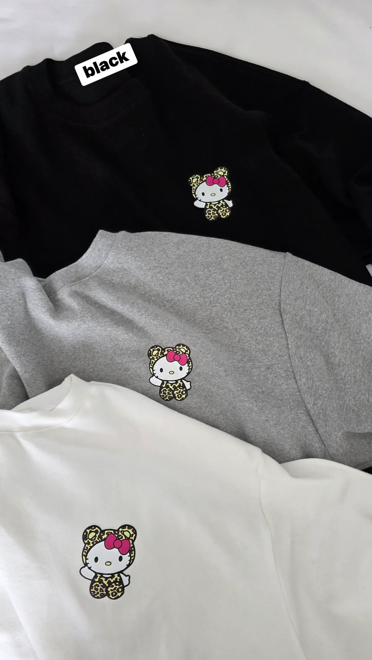 T102990 豹紋kitty厚磅數磨毛短t 黑灰白