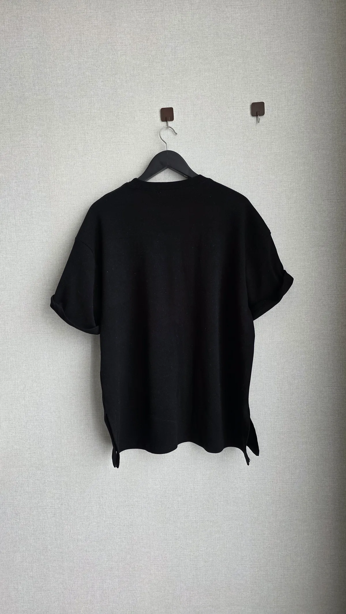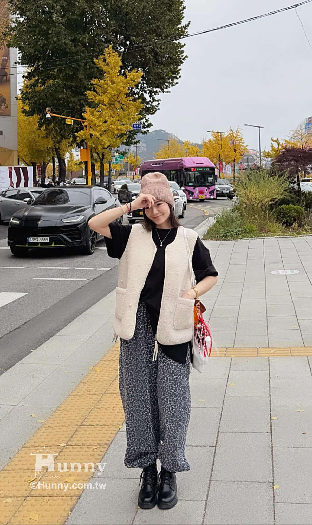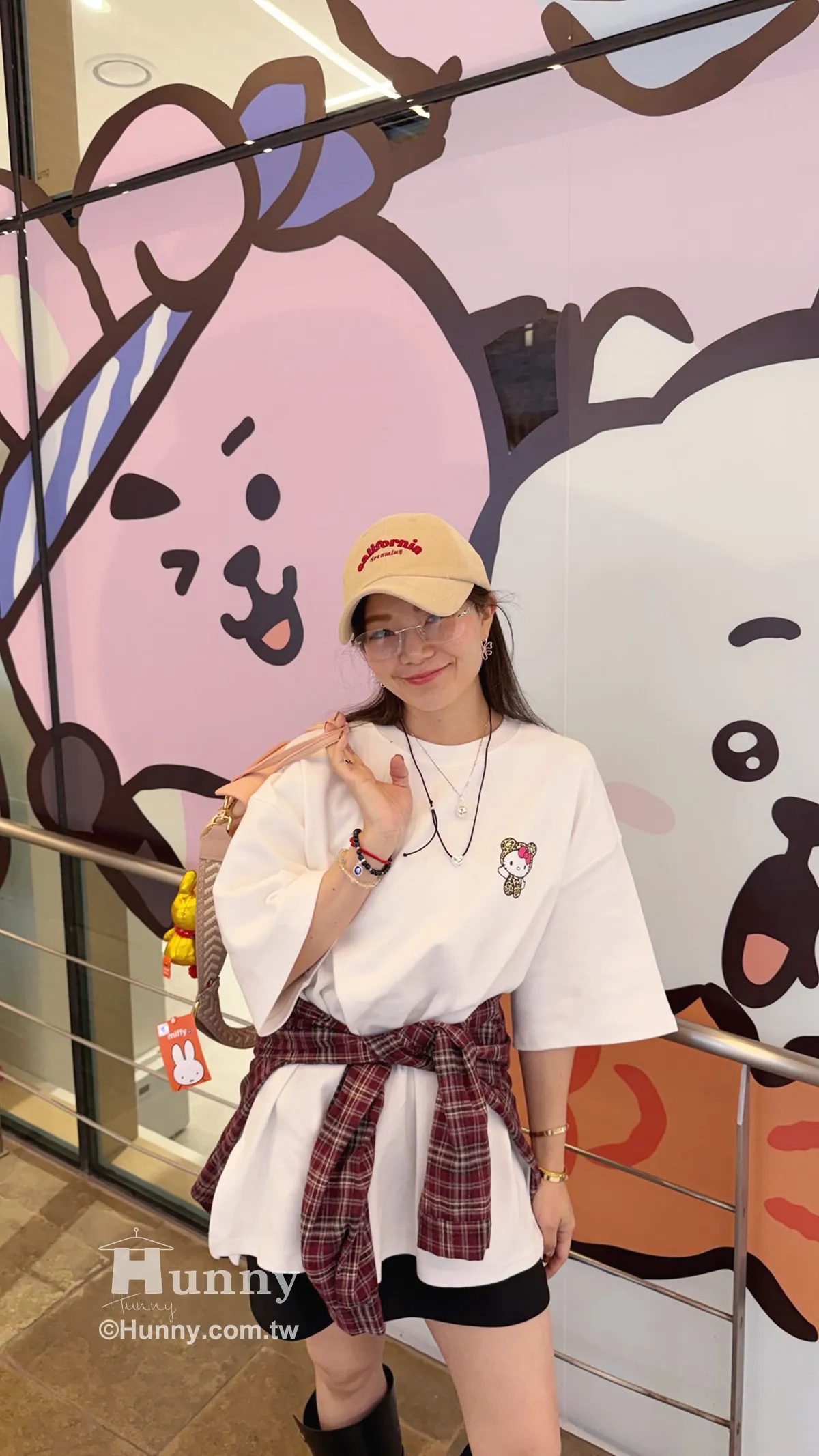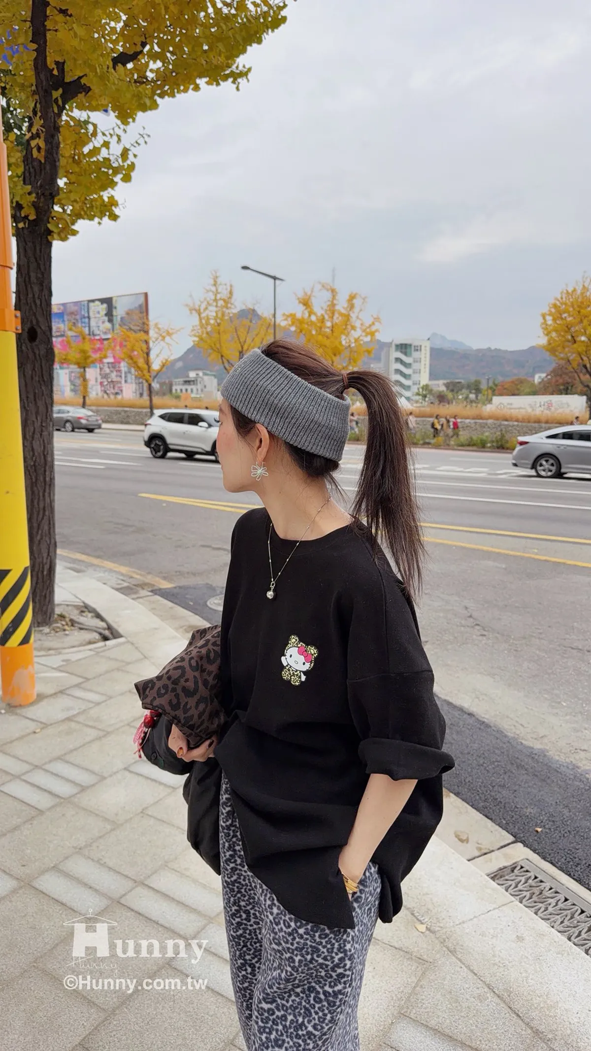 T102990 豹紋kitty厚磅數磨毛短t 黑灰白