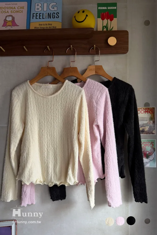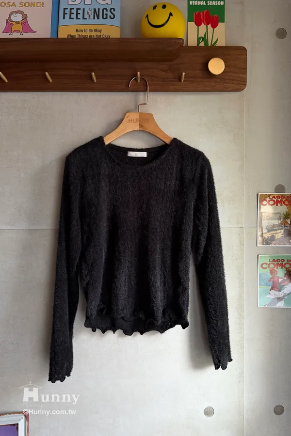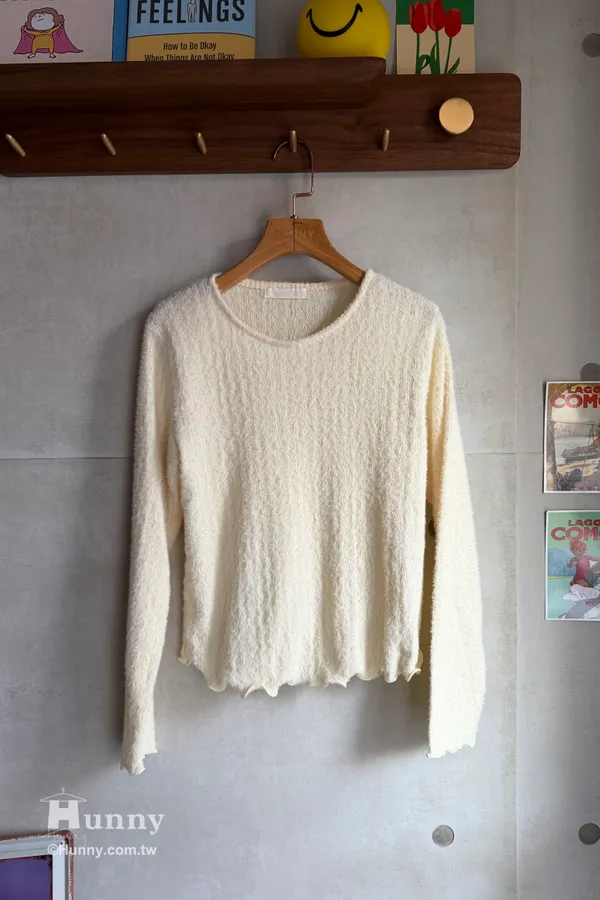 非常推薦這款帶有氣質感的捲邊毛料長T❄️