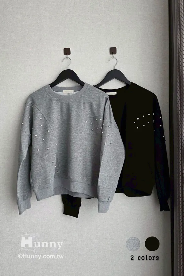 非常推薦這款擁有閃閃釘鑽的太空棉上衣💎