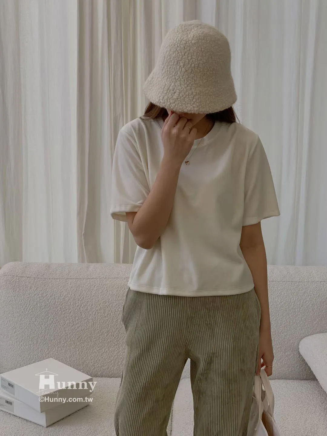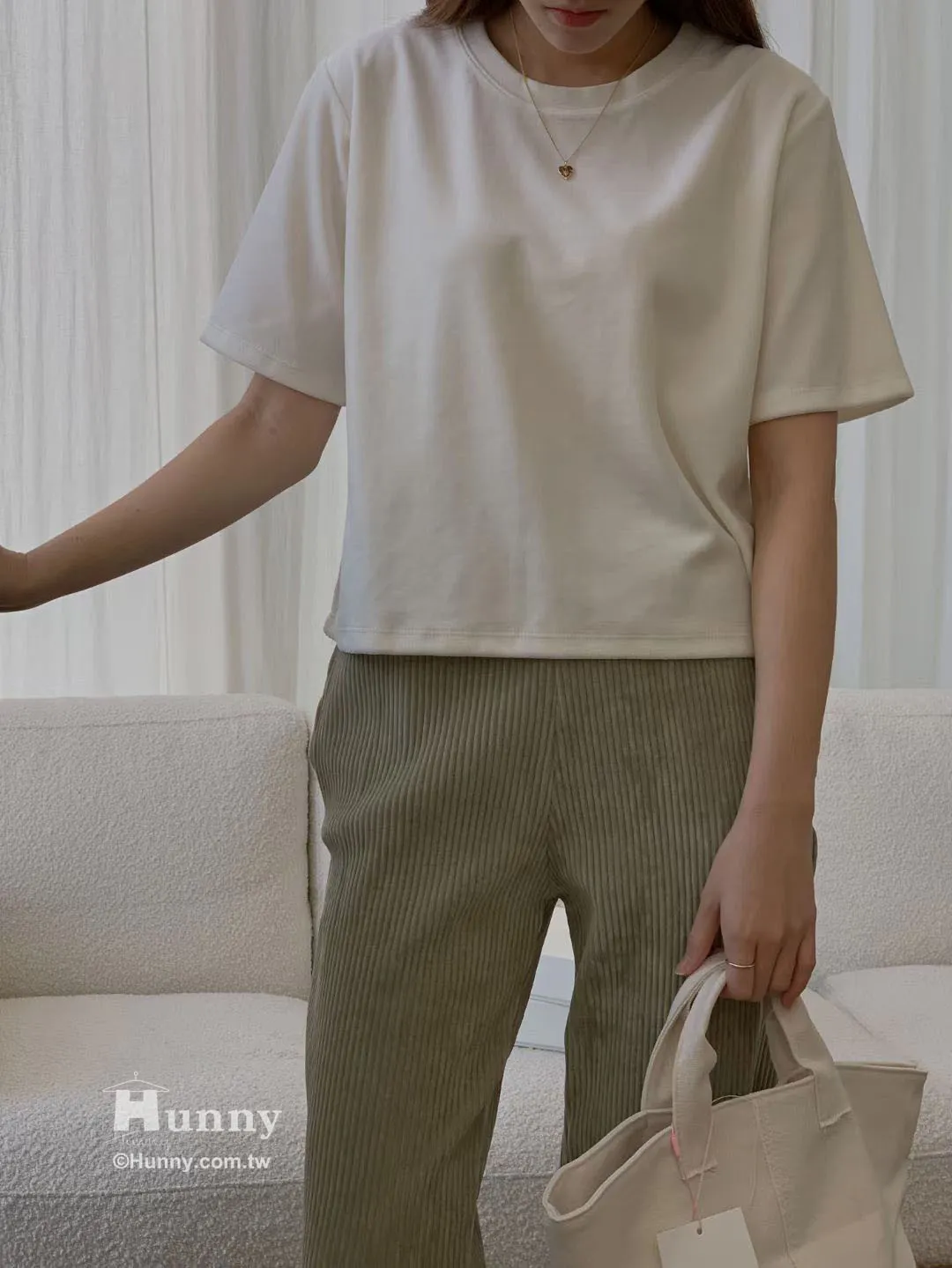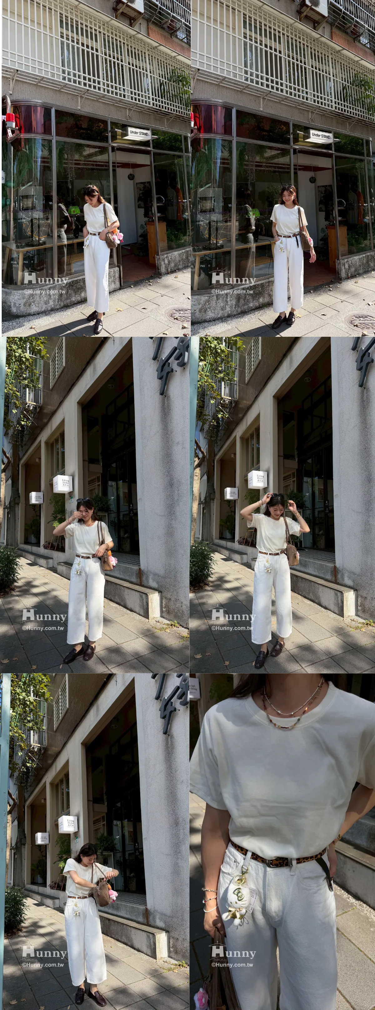 這系列我特別做了好多可愛的素色,每一款顏色都調得像果凍一樣甜而不膩。哈比比們,這種素 T 最好搭了,但因為它是這種很有質感的厚料子,單穿就很有氣場,完全不會像睡衣。它自帶一種微微的霧面光澤,穿上去臉色直接亮一階,簡直是內建反光板!