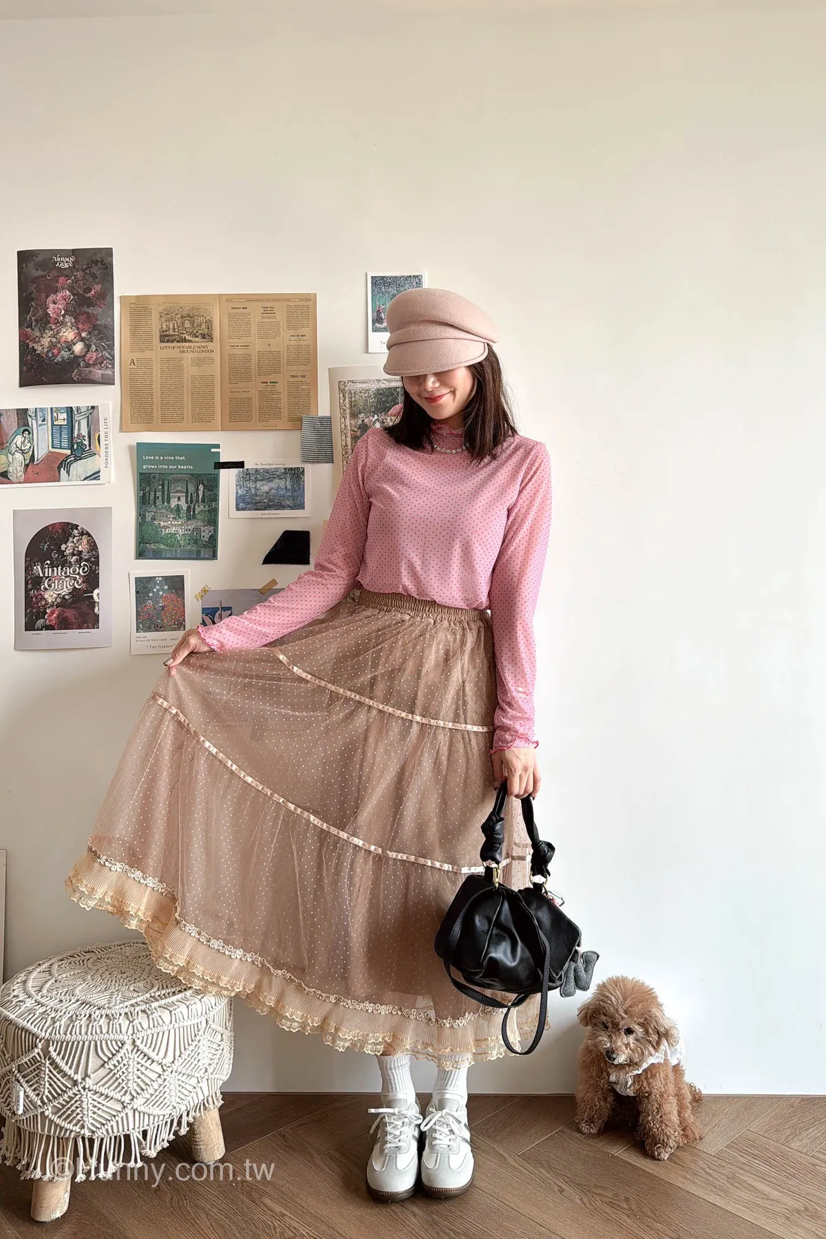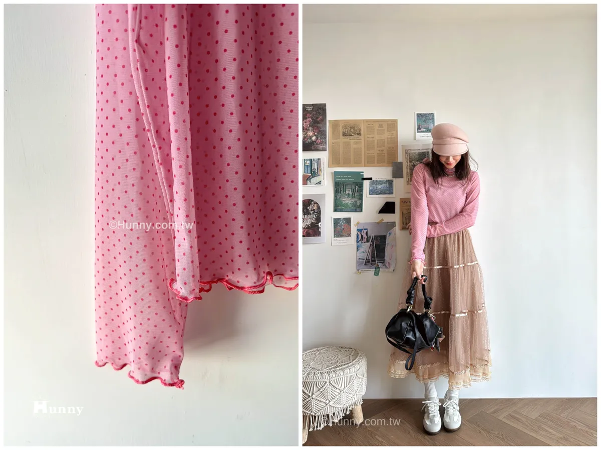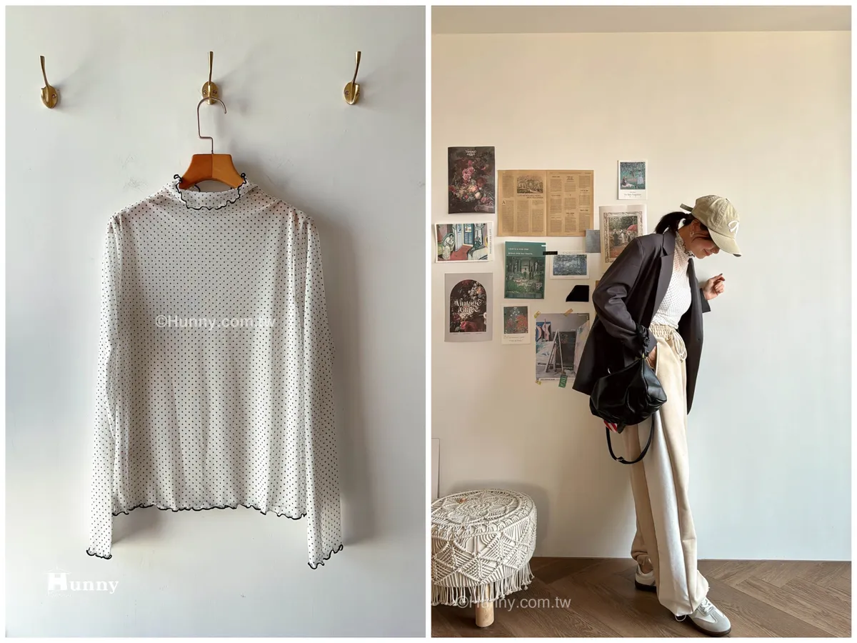 非常推薦這件可愛的點點捲邊透膚T(ノ>ω<)ノ