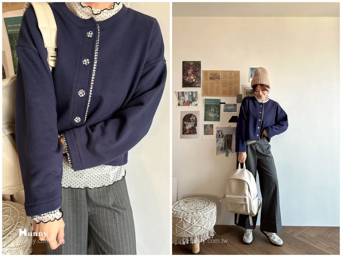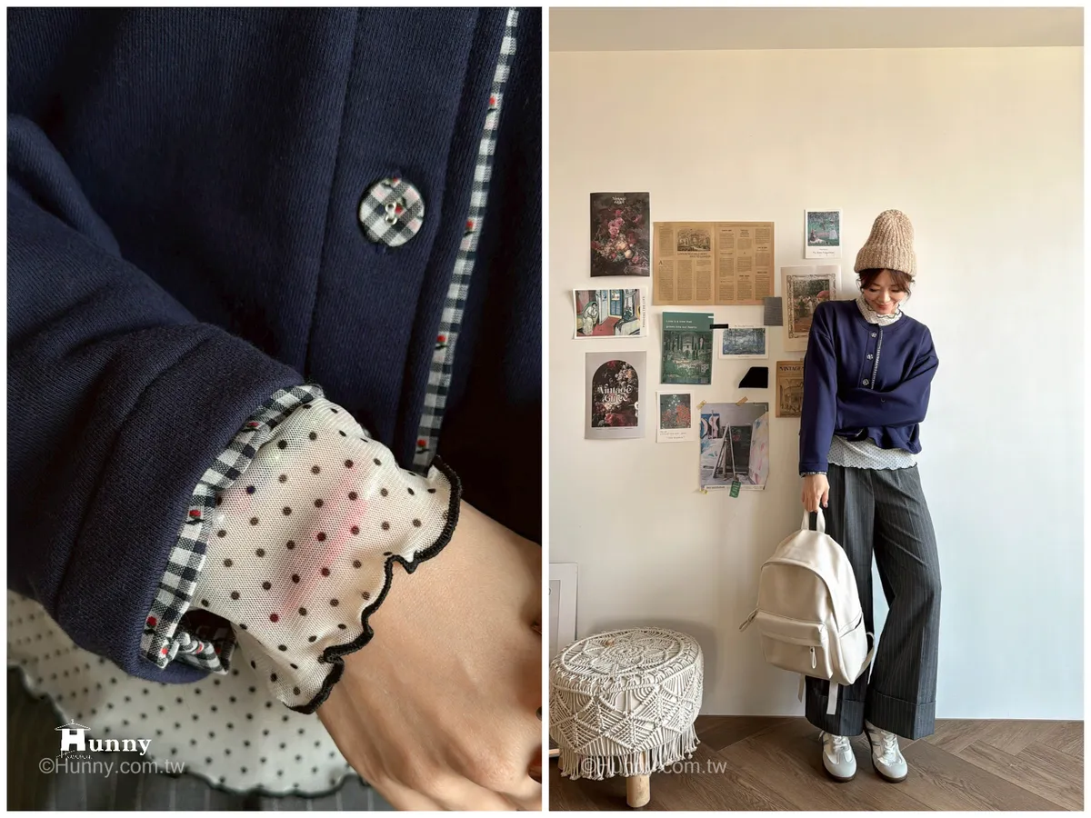 領口、袖口和下擺是撞色的捲邊設計(*´∀`)~♥