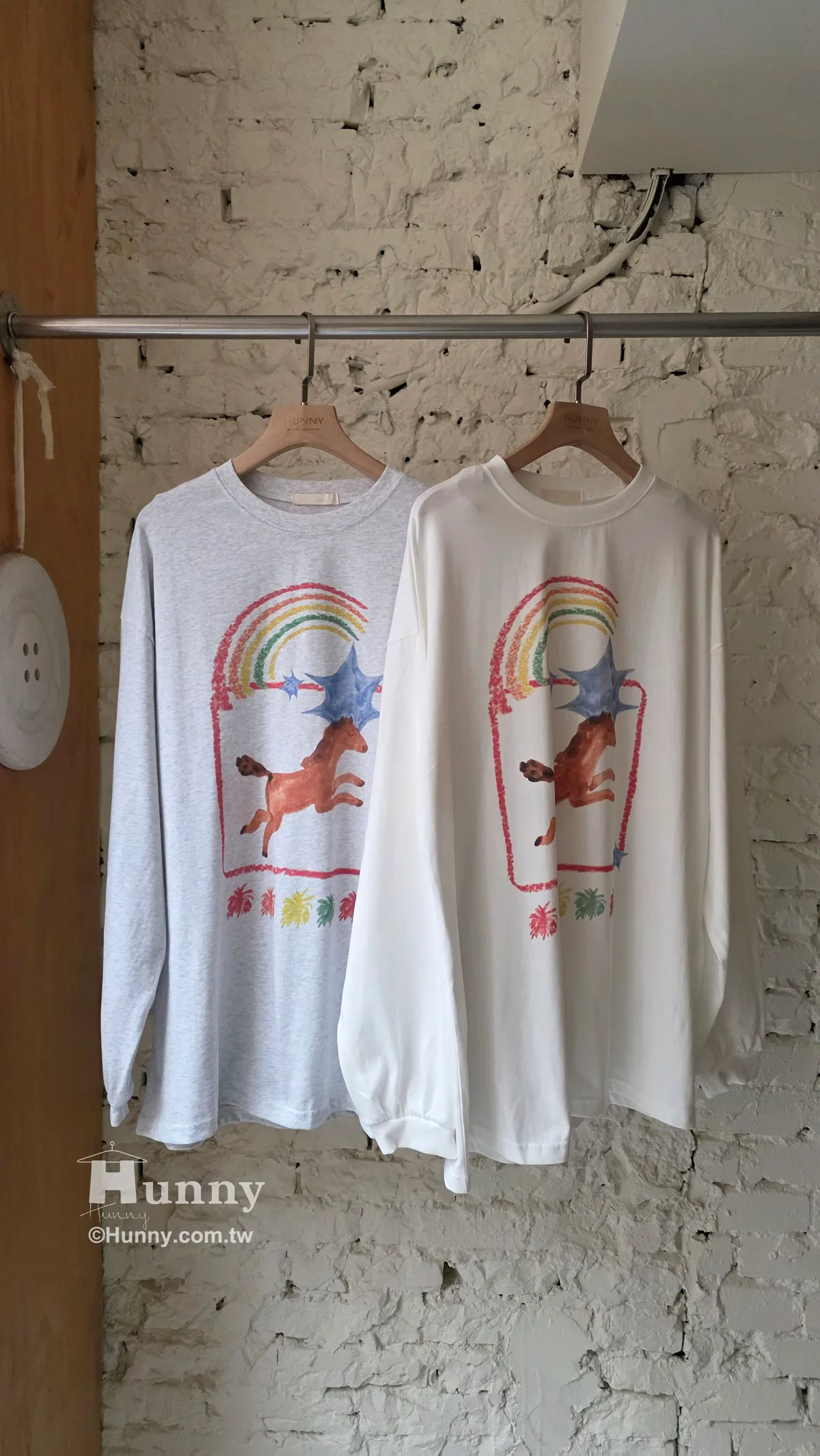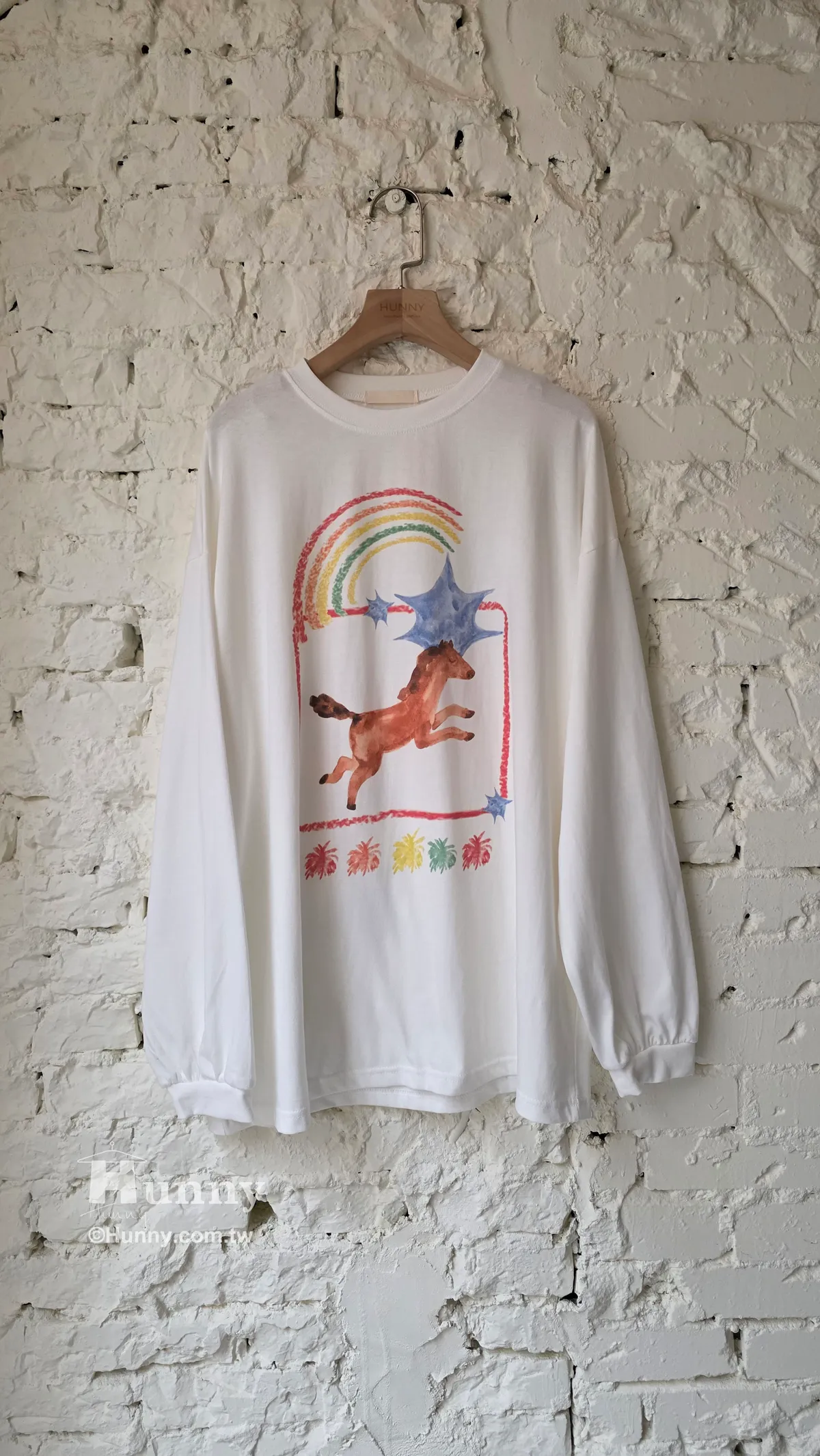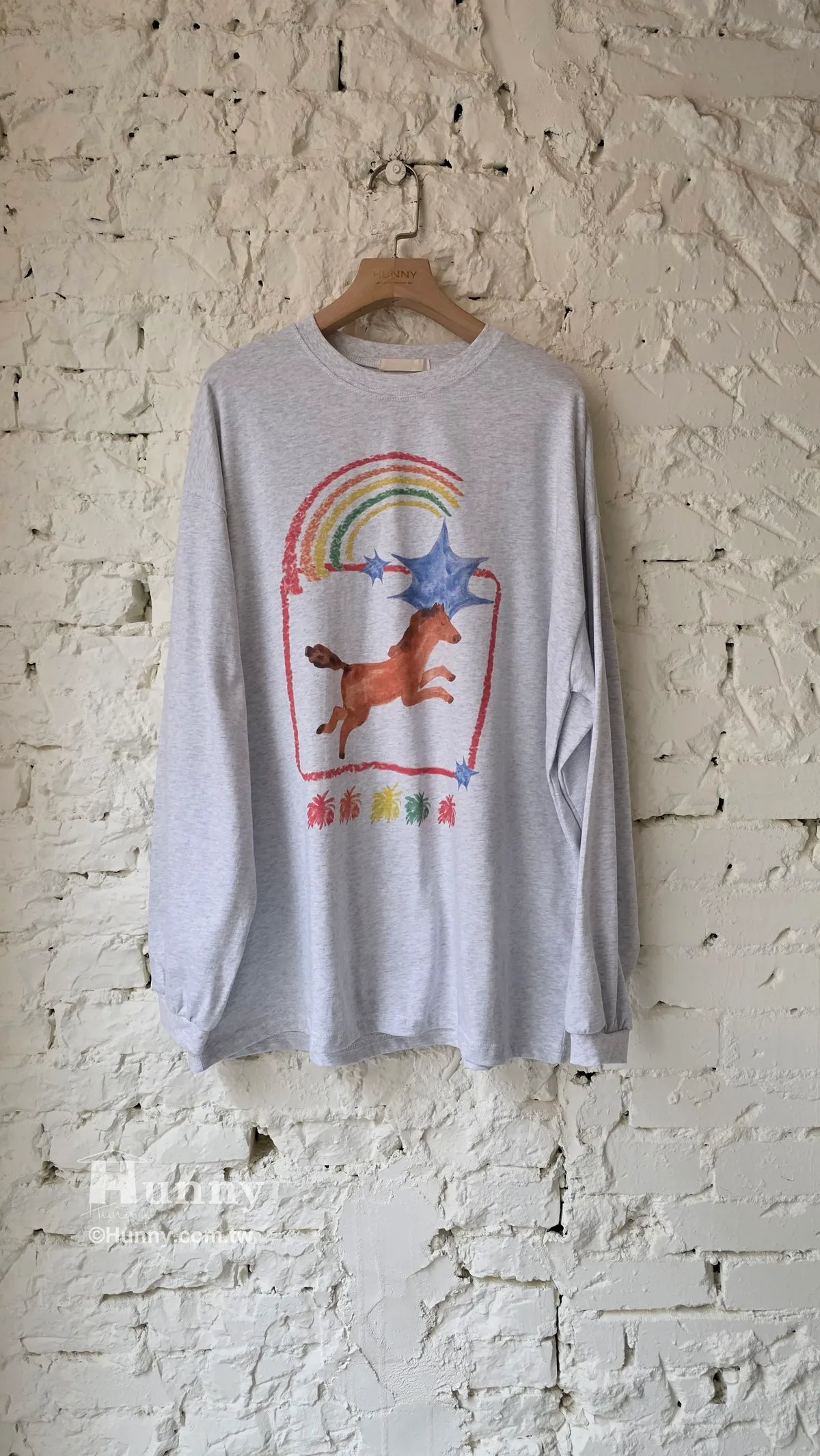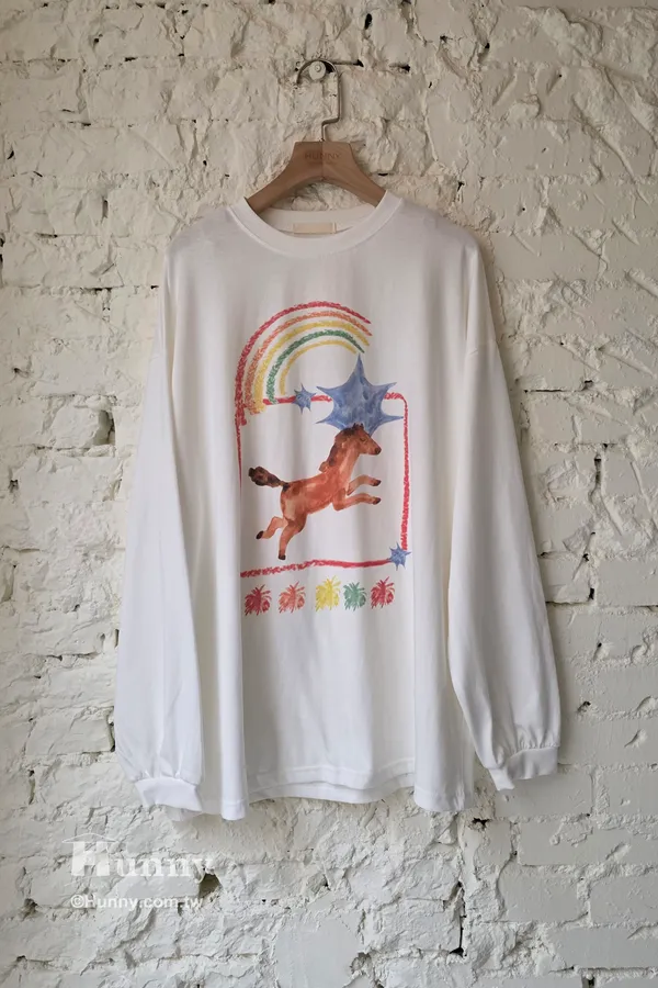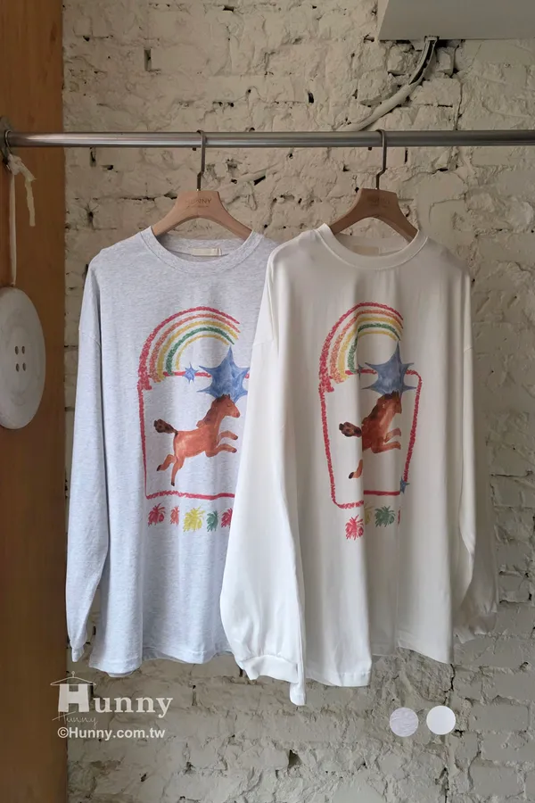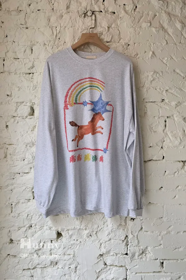 T31110 彩虹小馬蠟筆畫圖T 灰/白