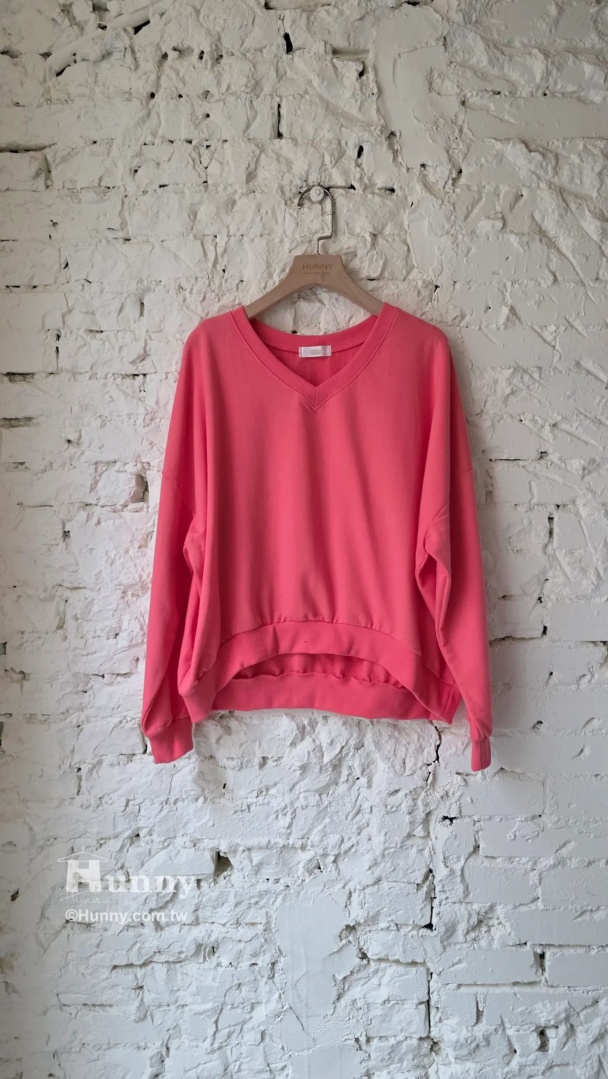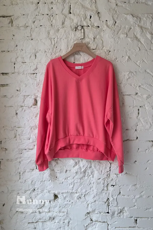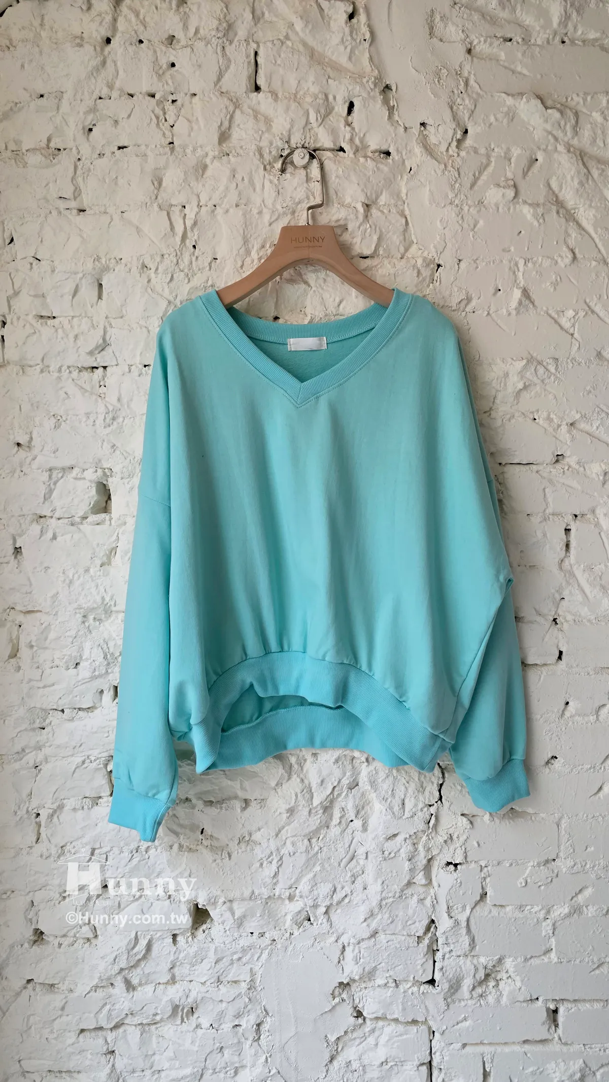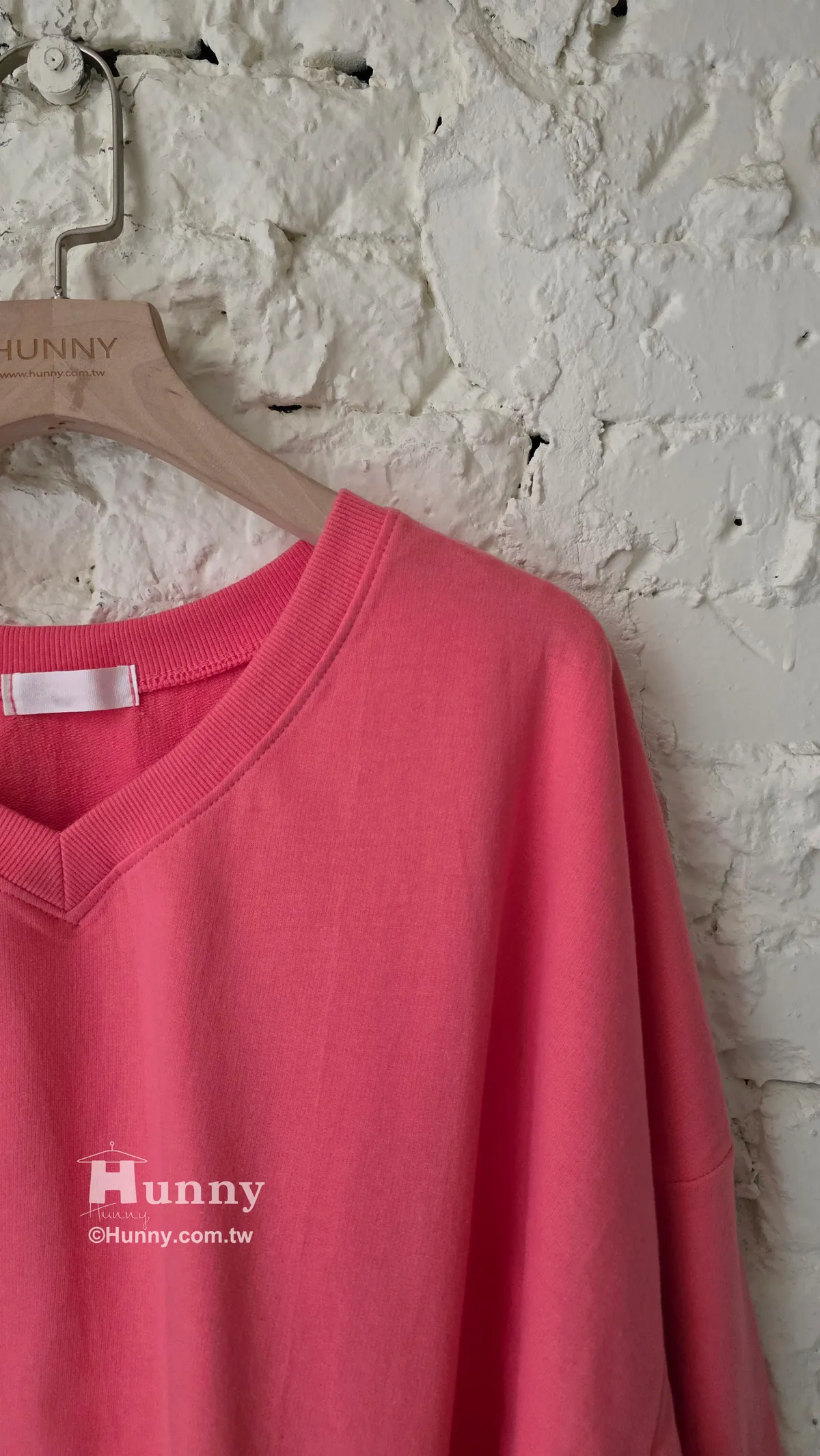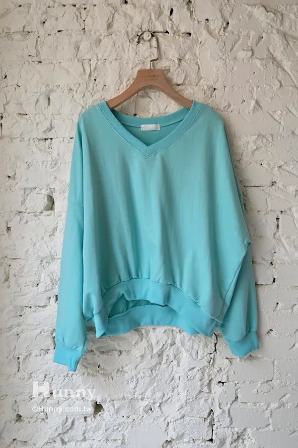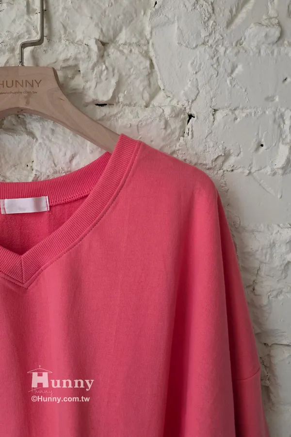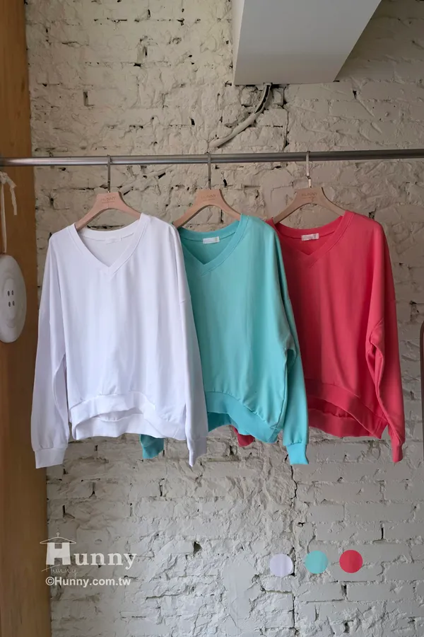 T31123 春天清新大V領縮口大學T 粉/綠/白