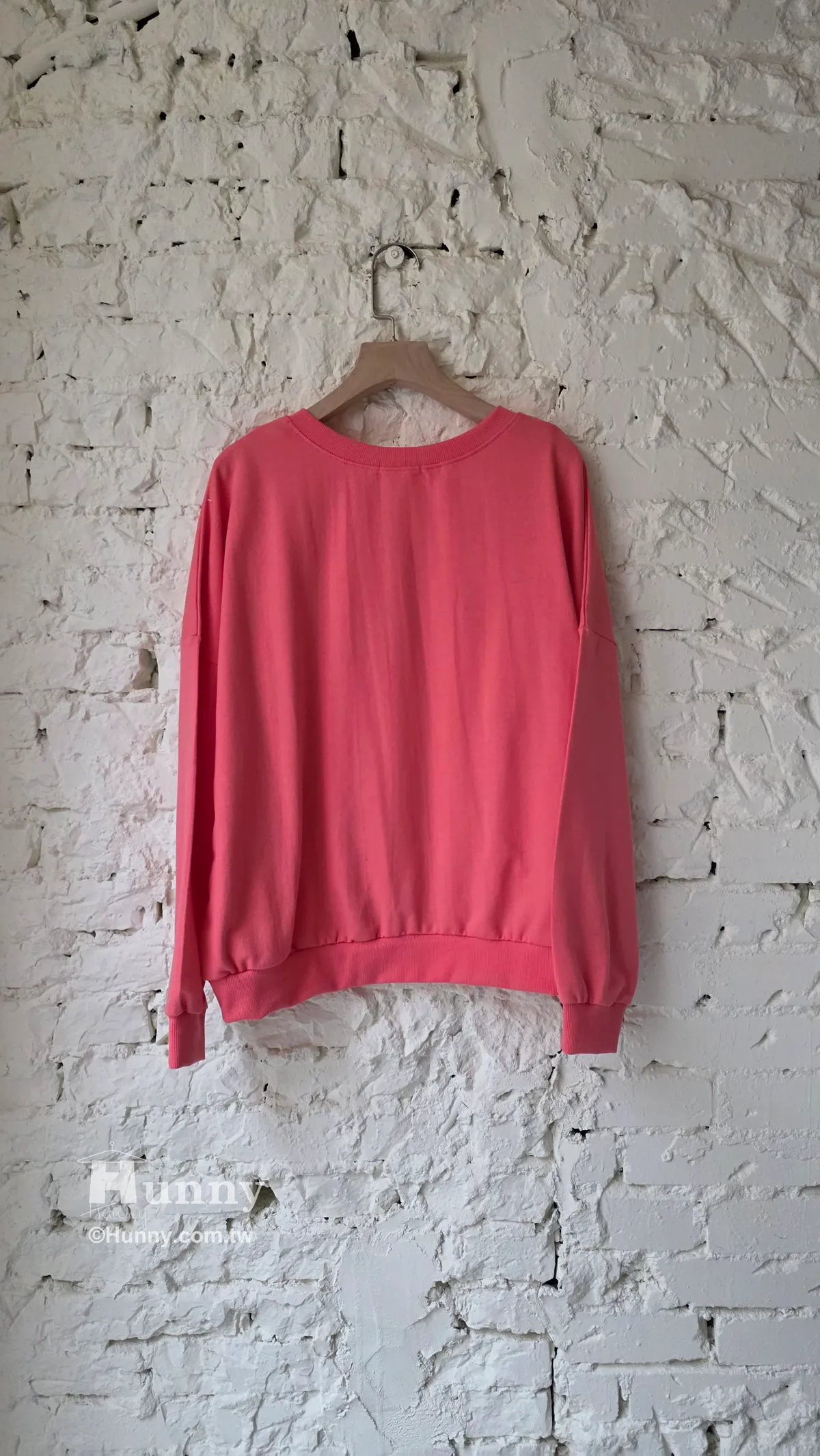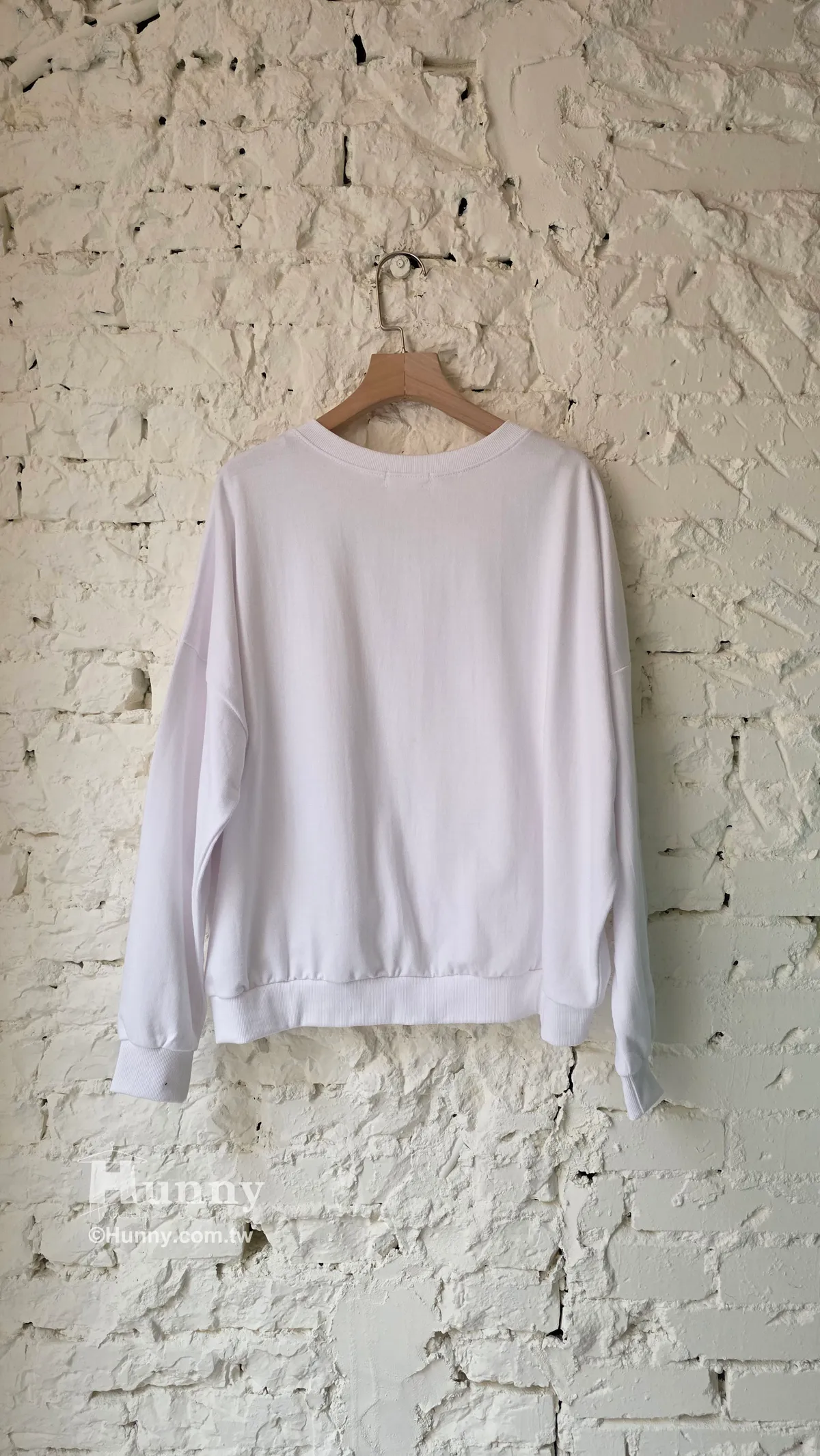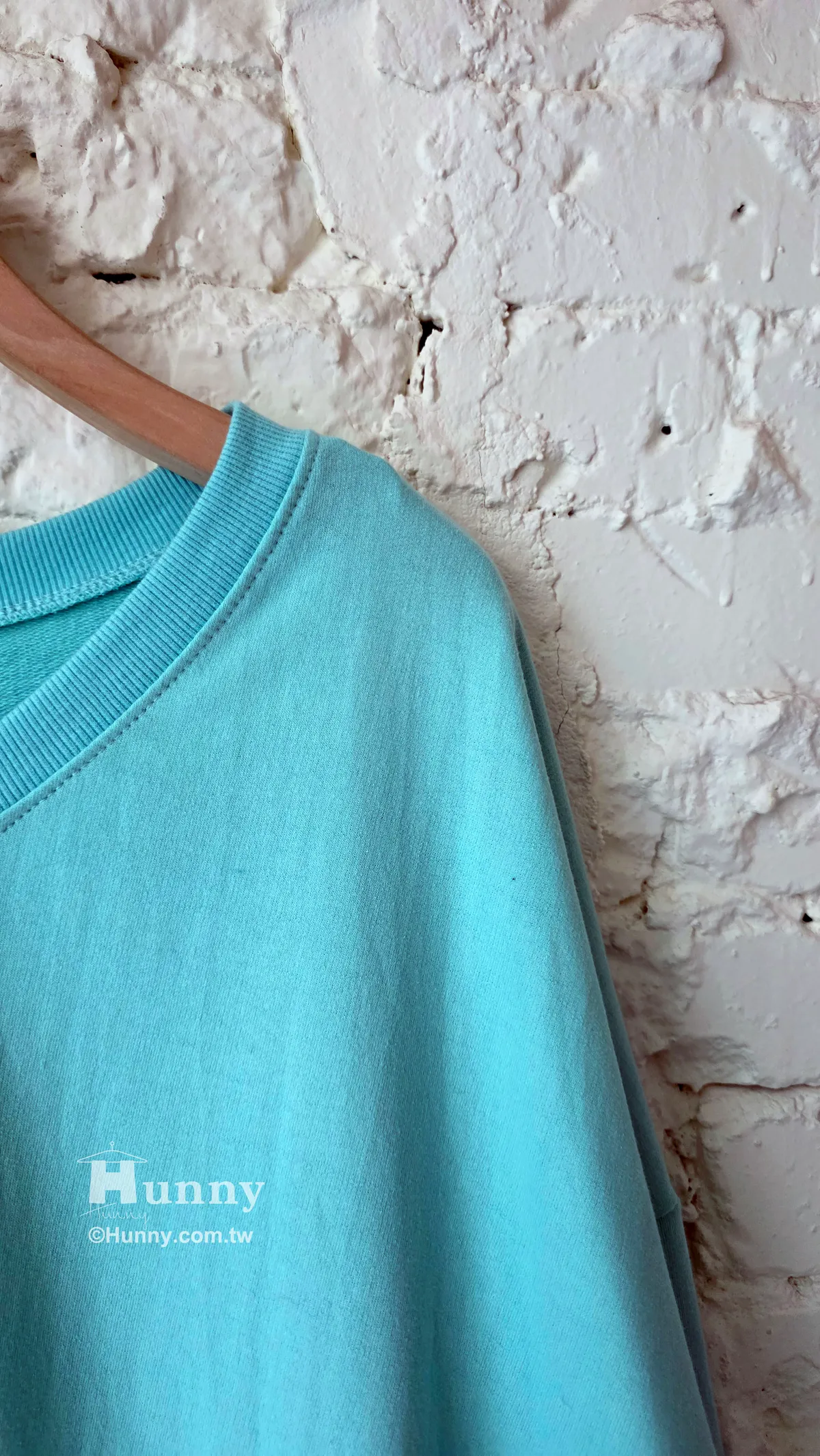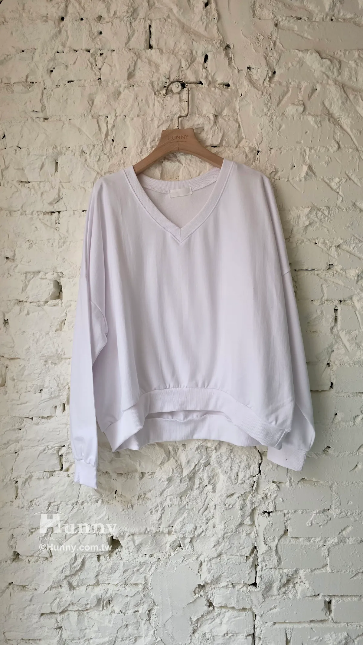 T31123 春天清新大V領縮口大學T 粉/綠/白
