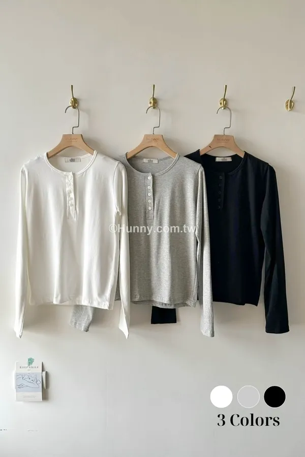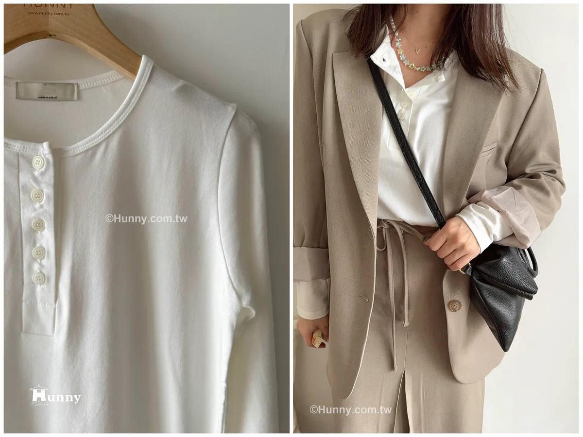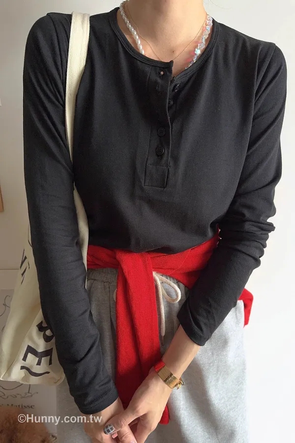 亨利排扣 可以是圓領也可以變V領多變化的基本打素T 誰會不愛?