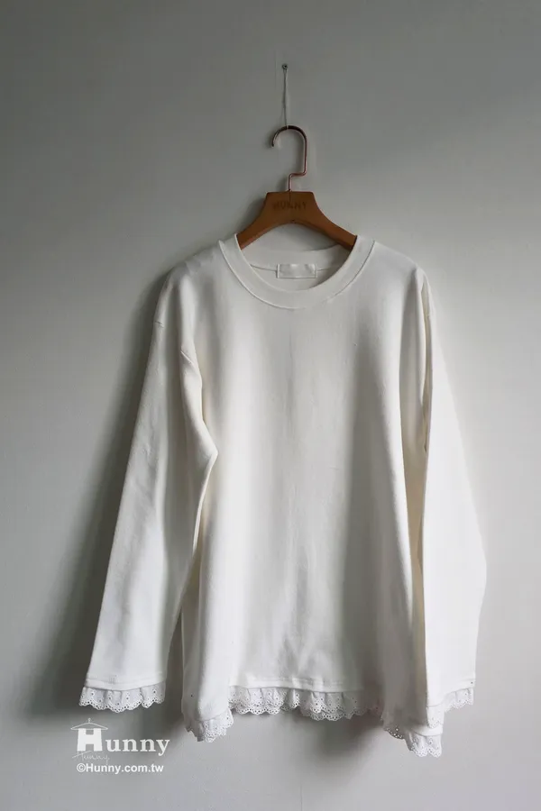 T632025 搭配加分厚棉磨毛拚接蕾絲T