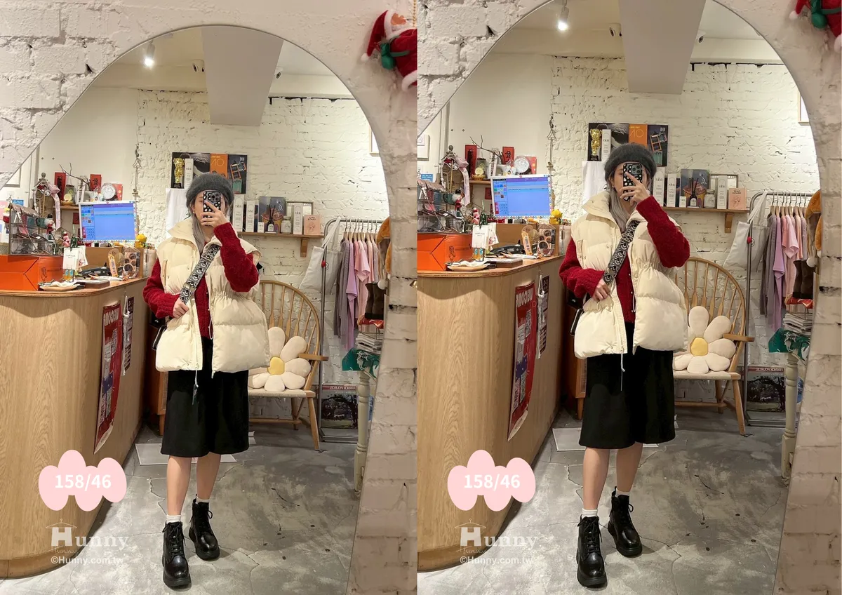 總結背心優勢:長版遮屁股/縮腰顯瘦/防風拉鍊釦子