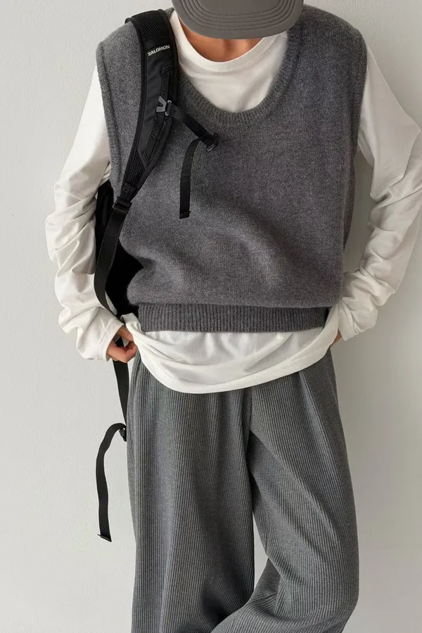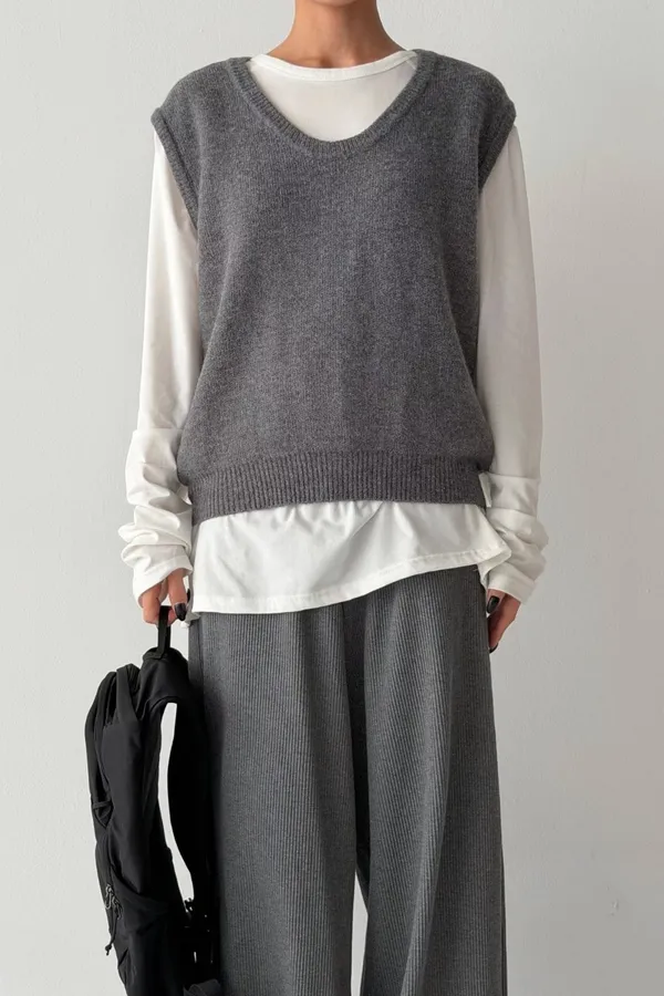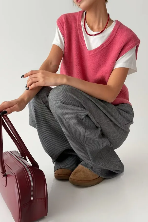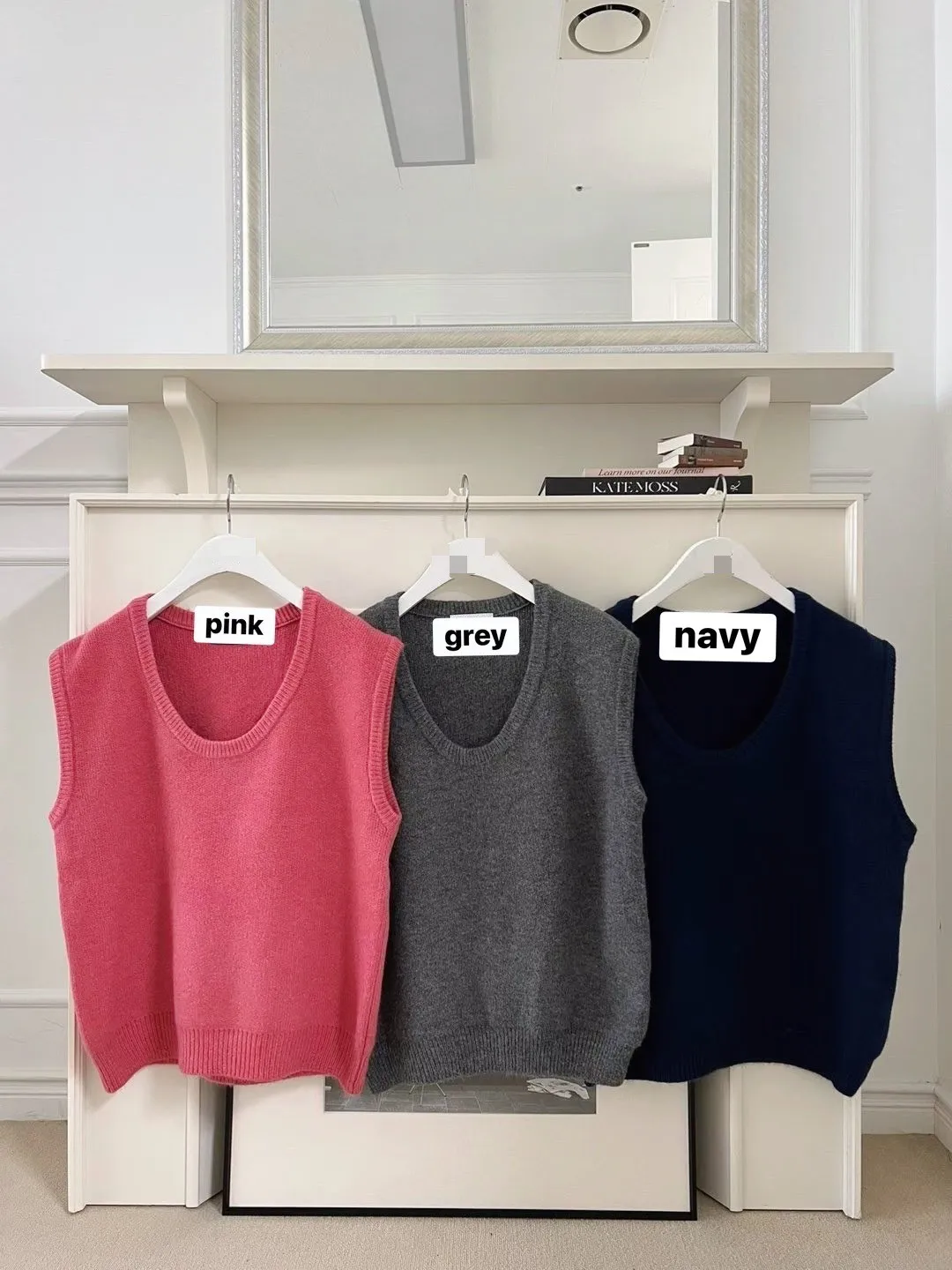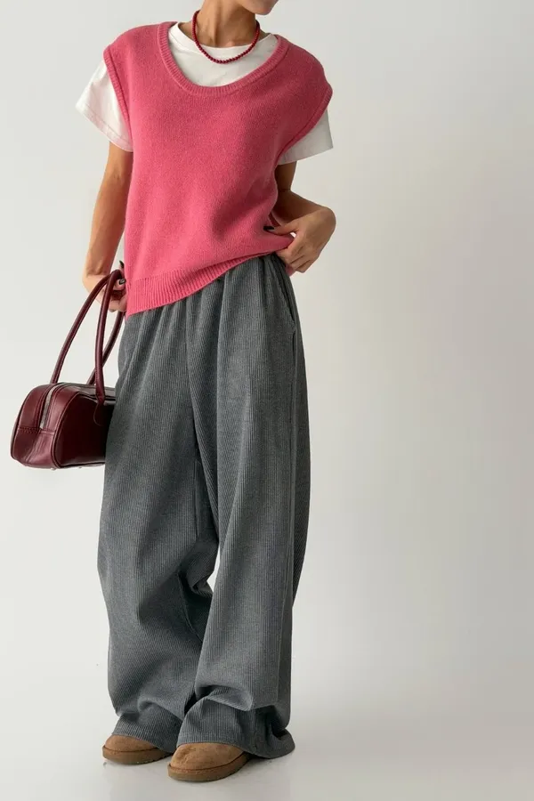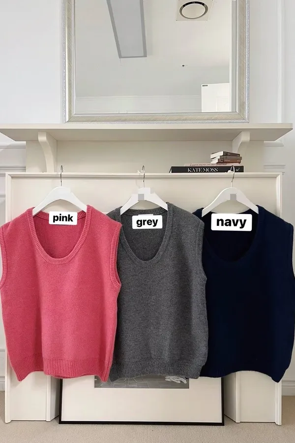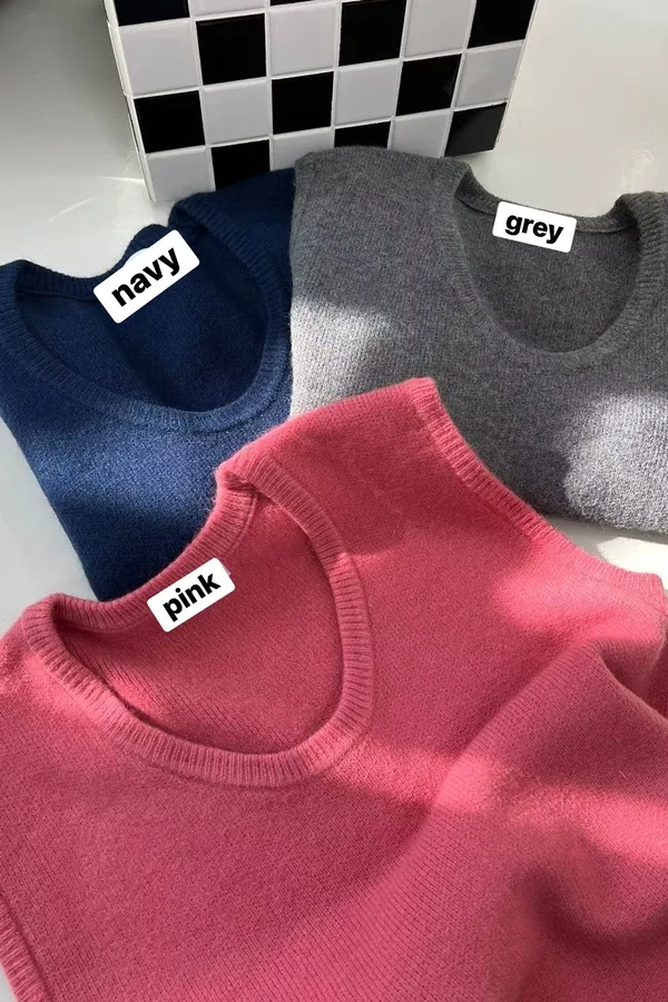 V121210 warm cozy厚暖羊毛大U背心 藍/灰/粉