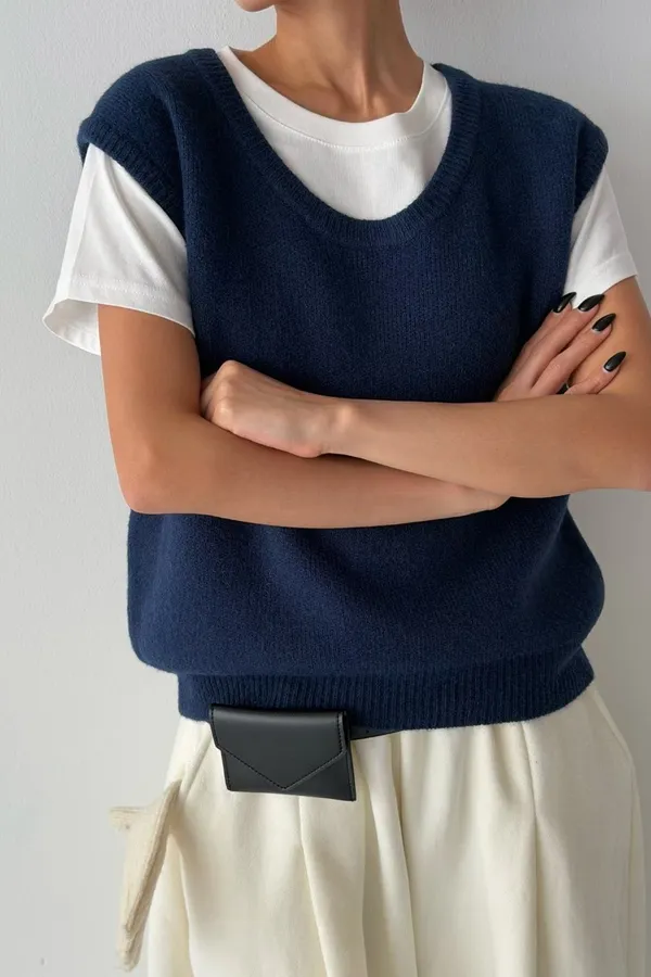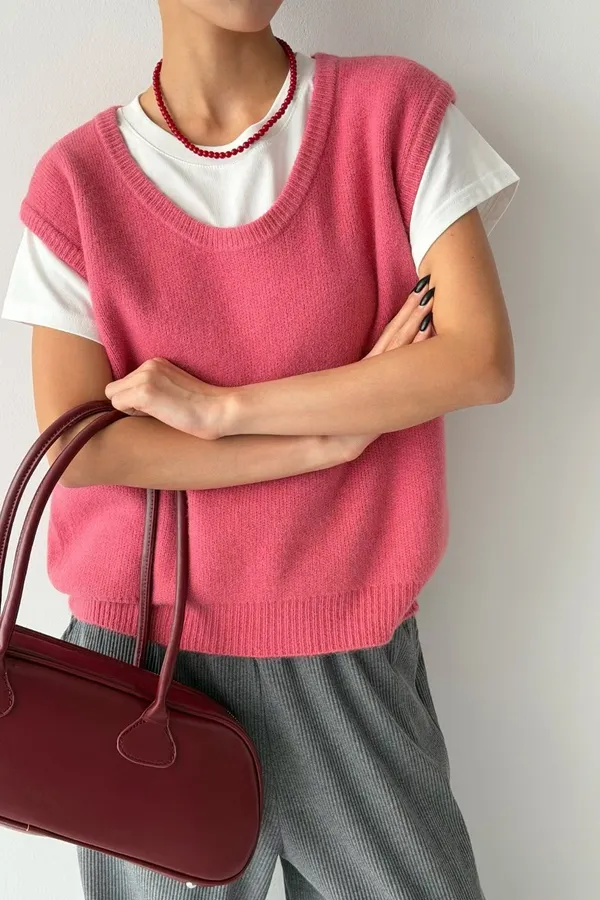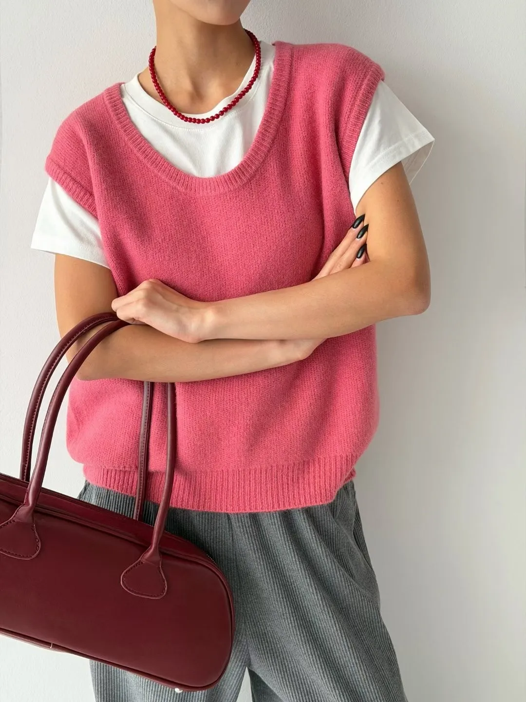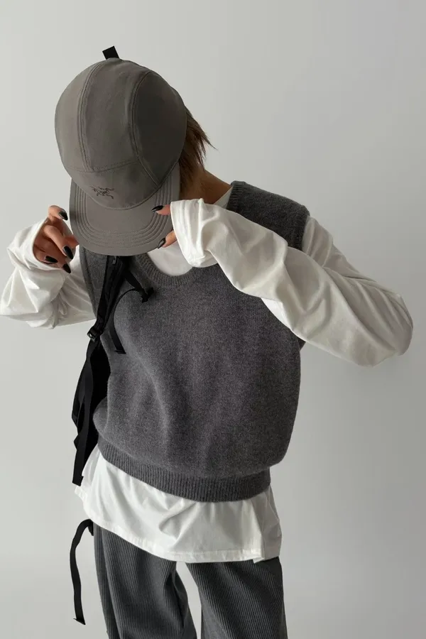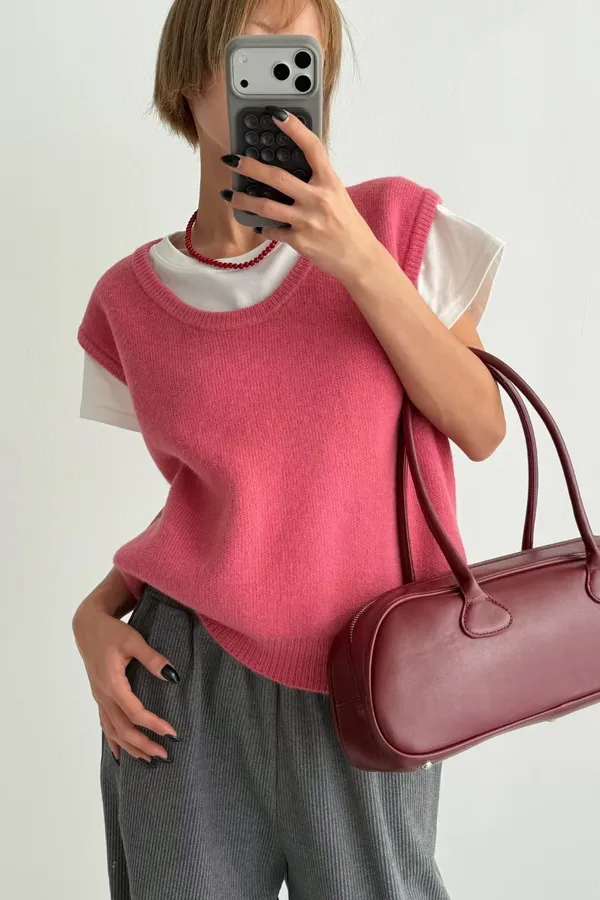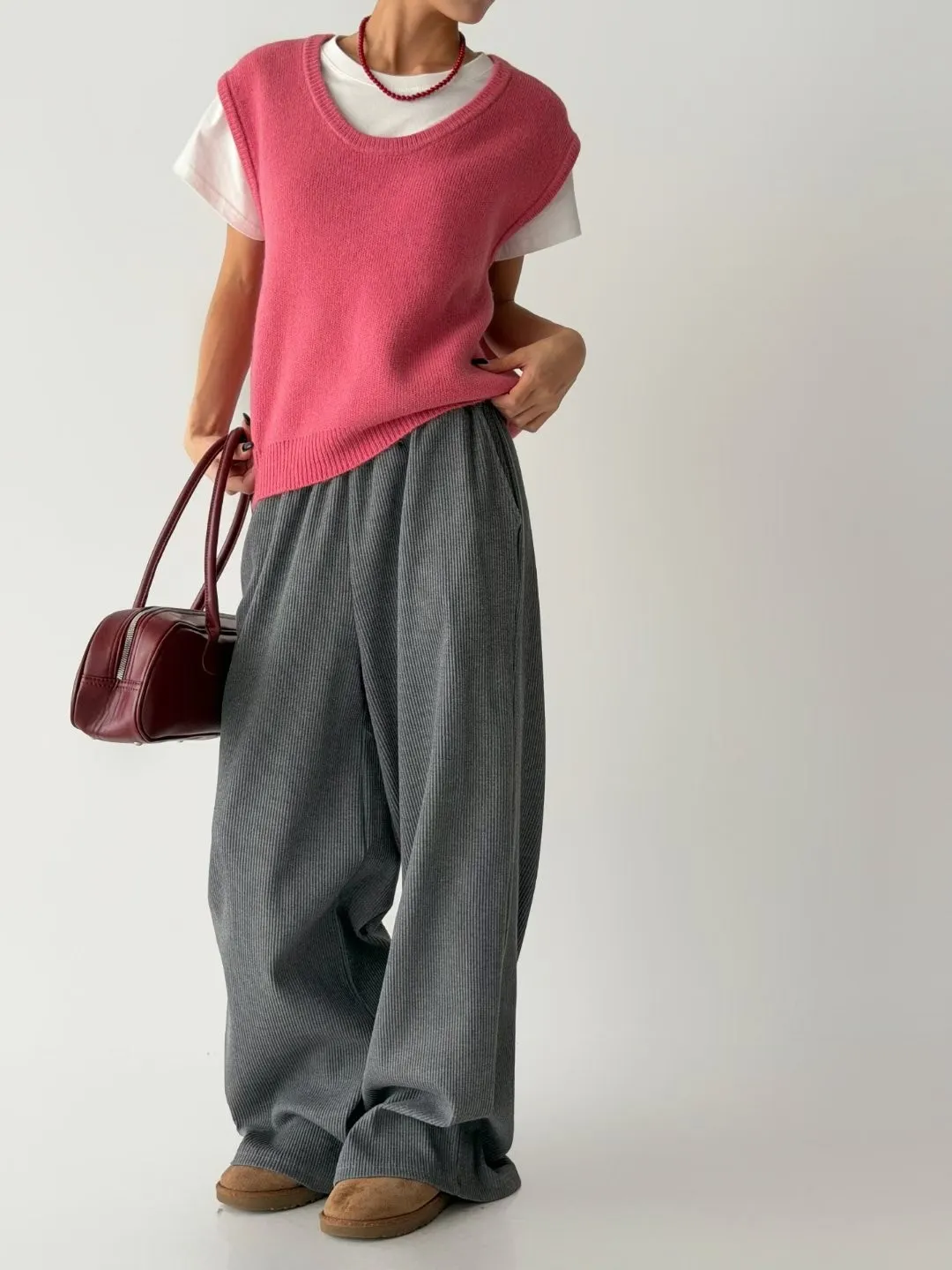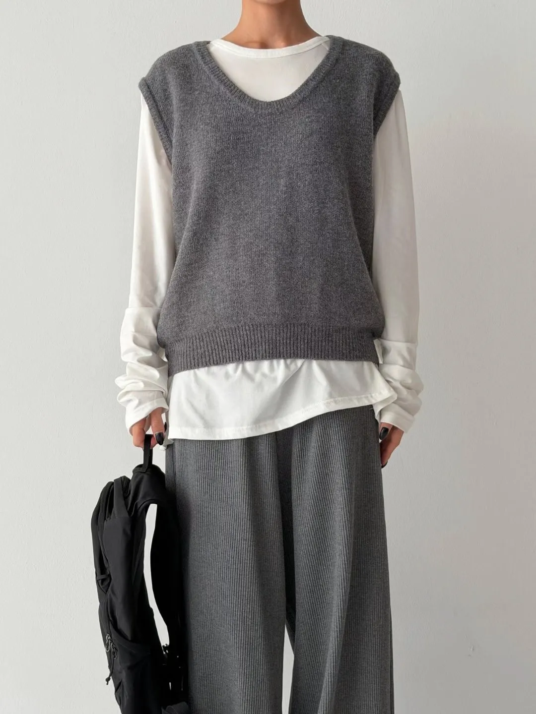 V121210 warm cozy厚暖羊毛大U背心 藍/灰/粉