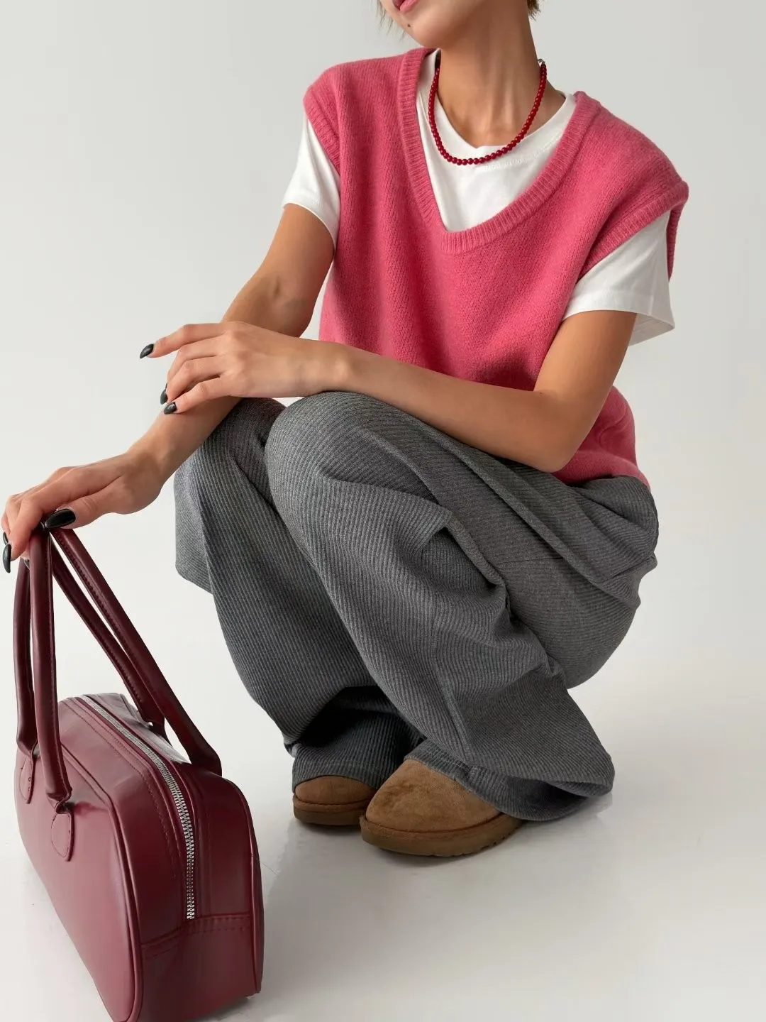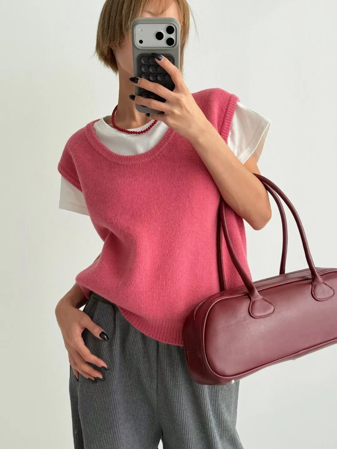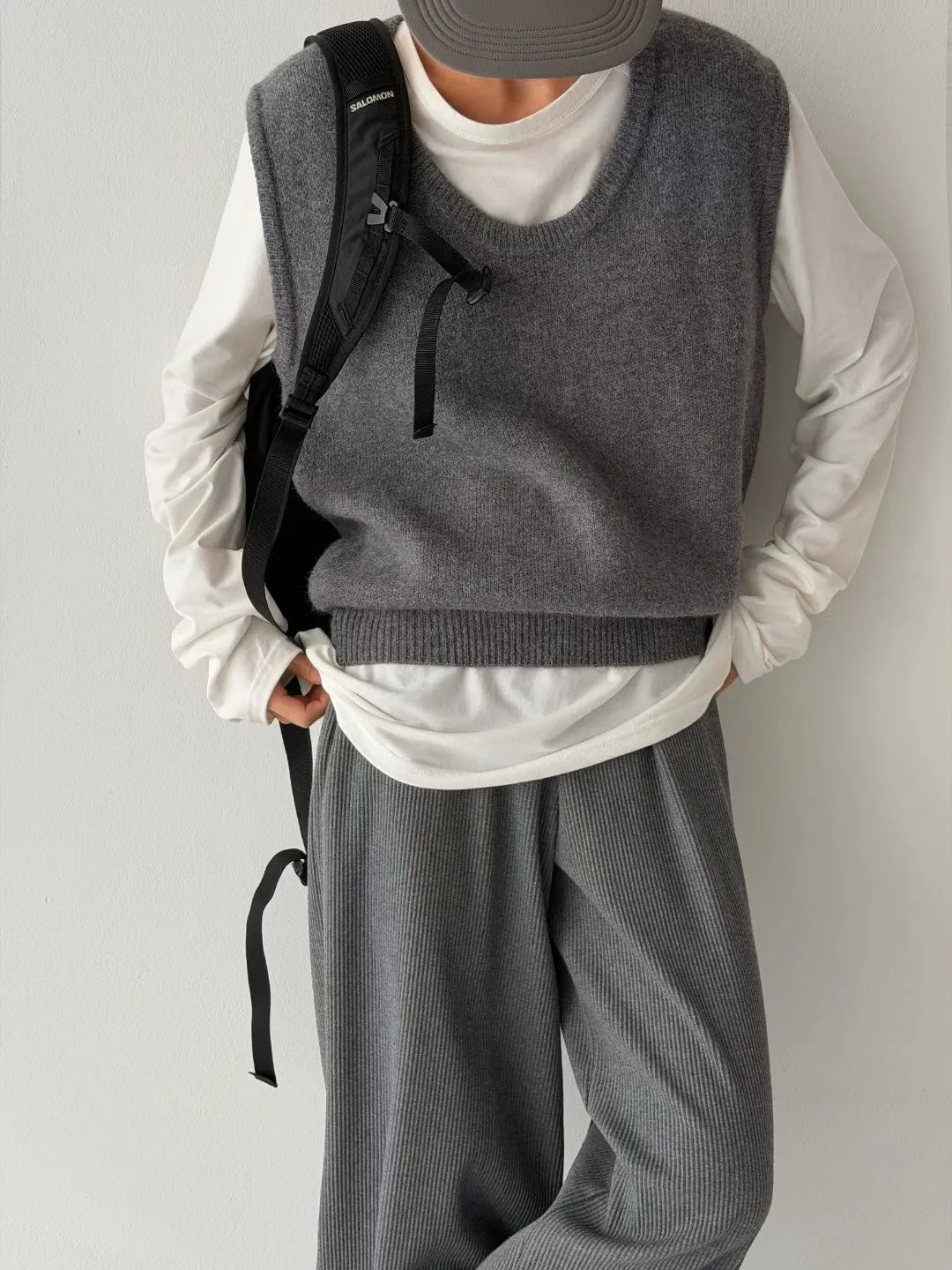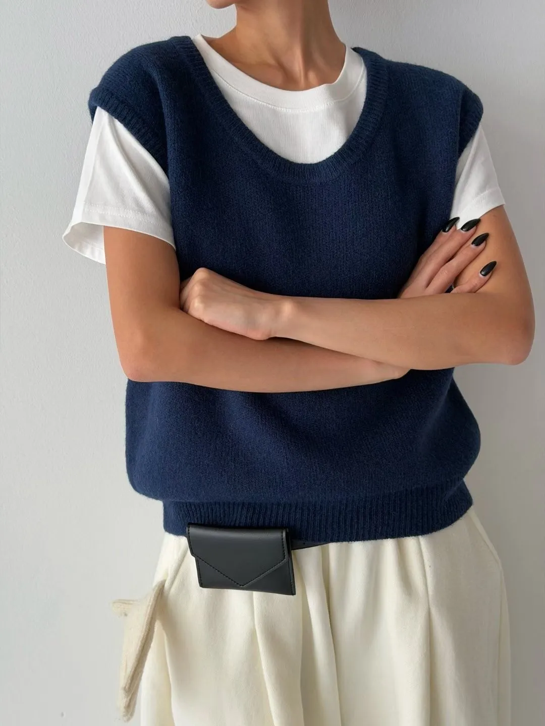 V121210 warm cozy厚暖羊毛大U背心 藍/灰/粉