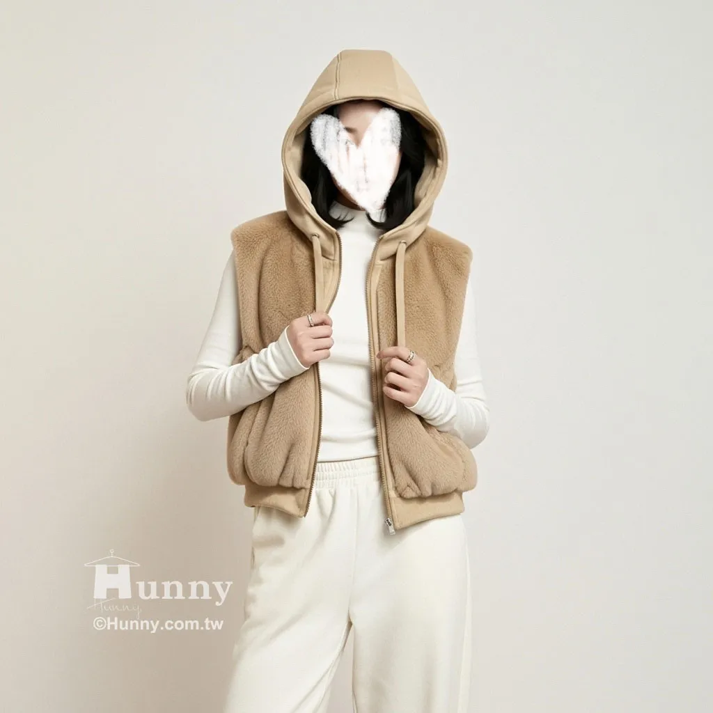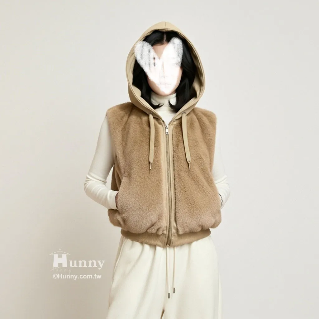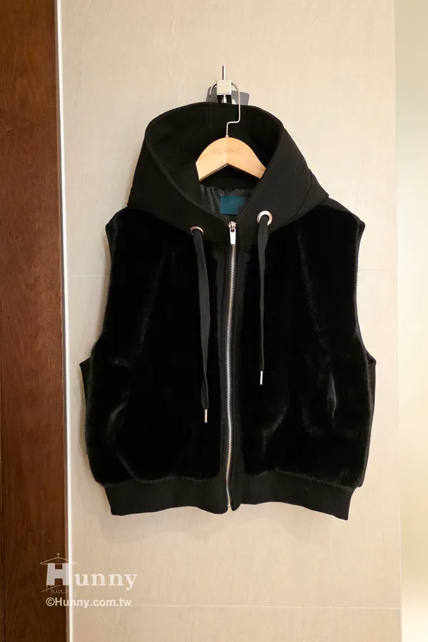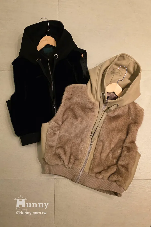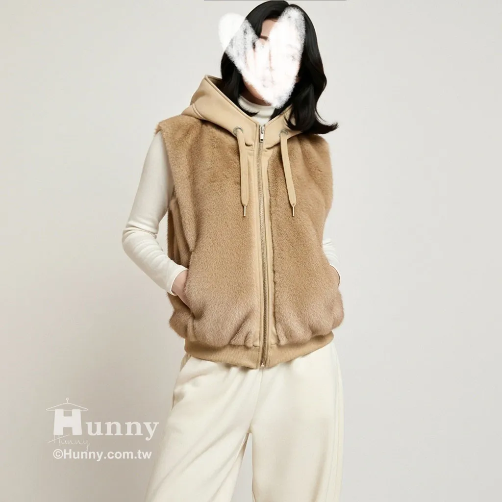 V12913 東京小貴婦保暖毛毛連帽背心 黑/駝/杏 黑色現貨