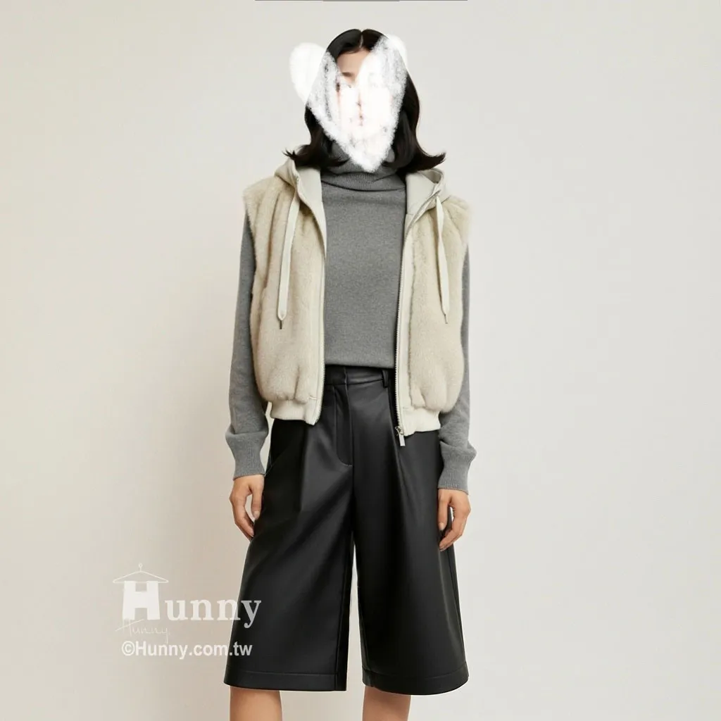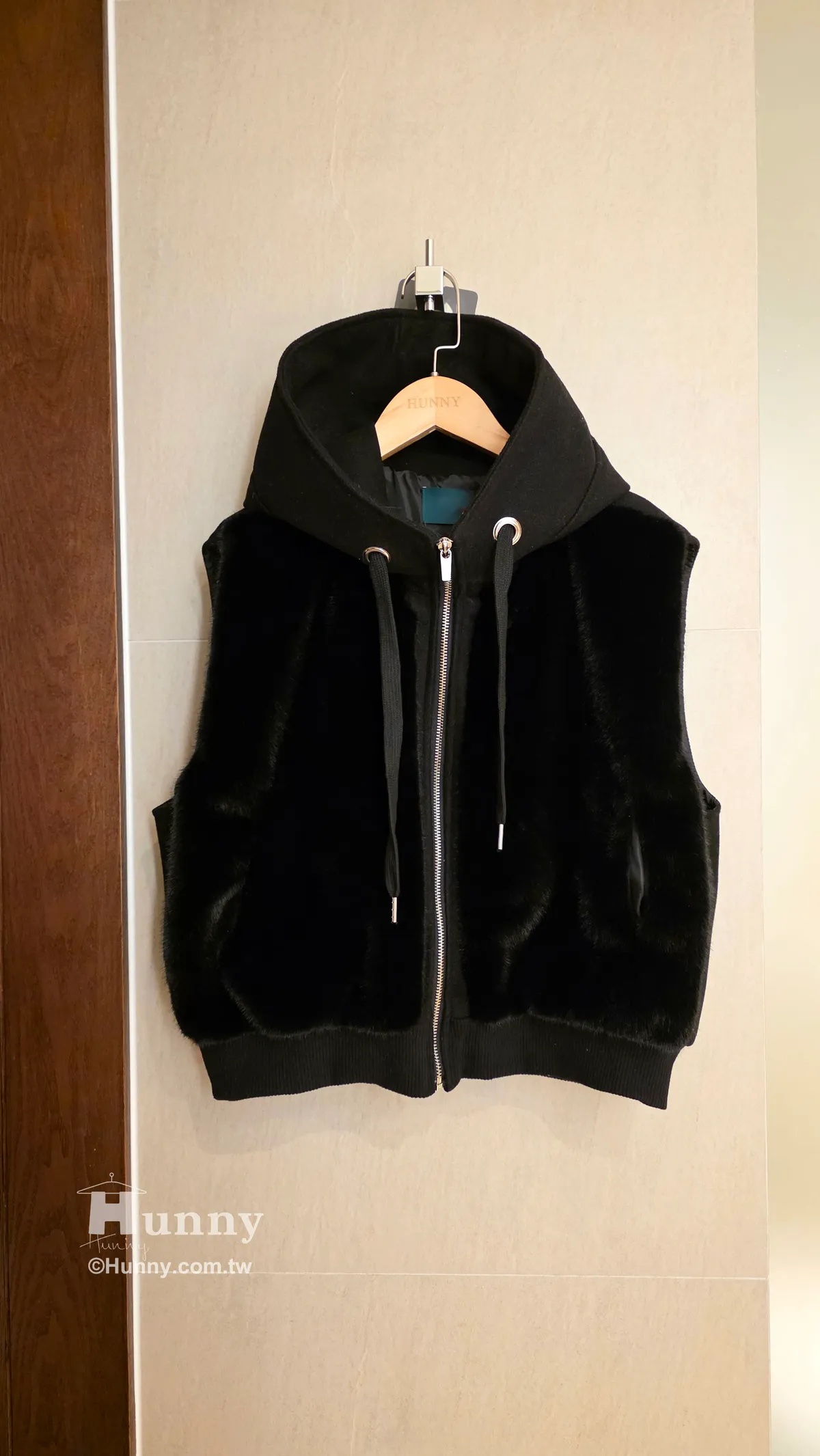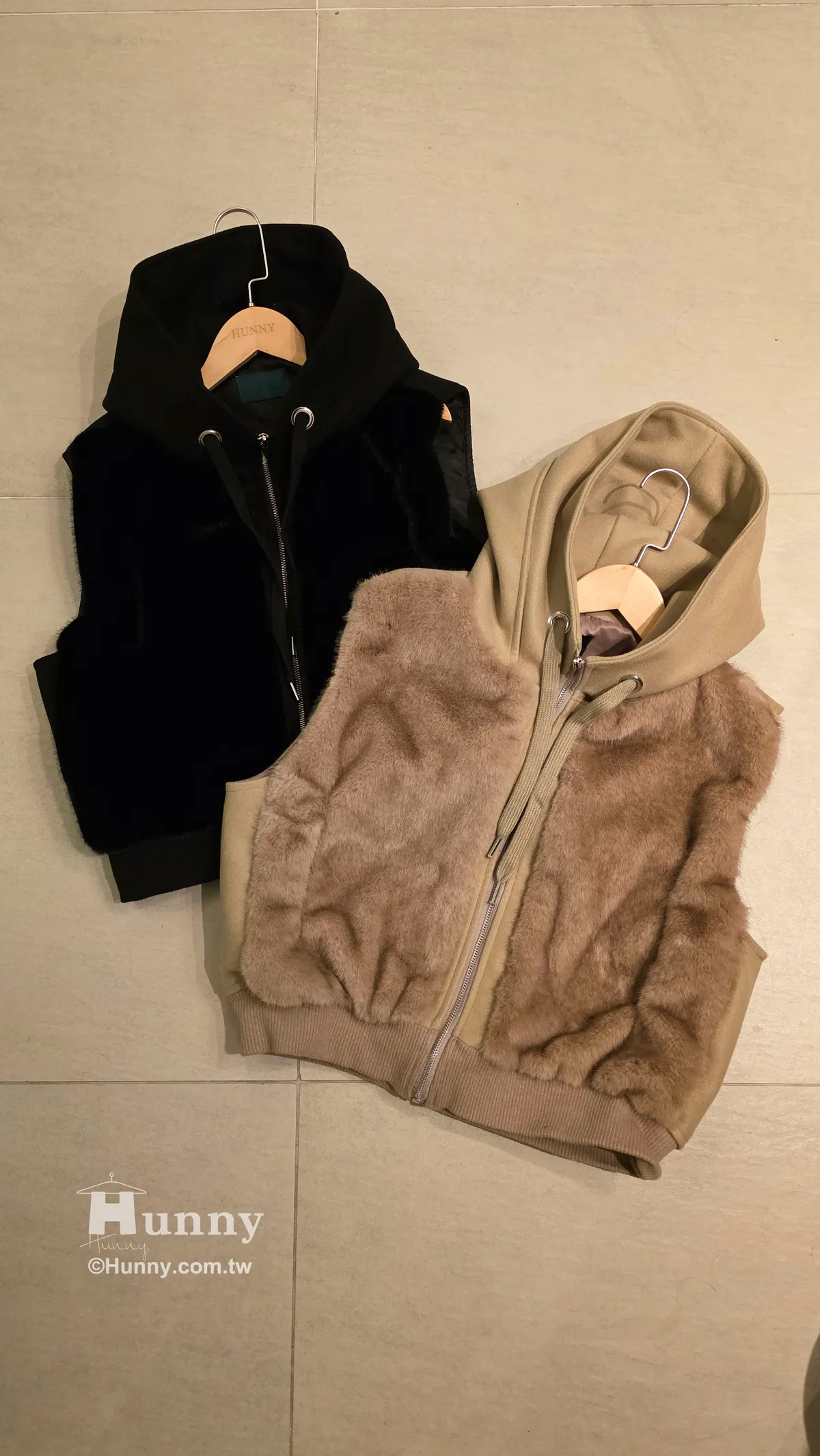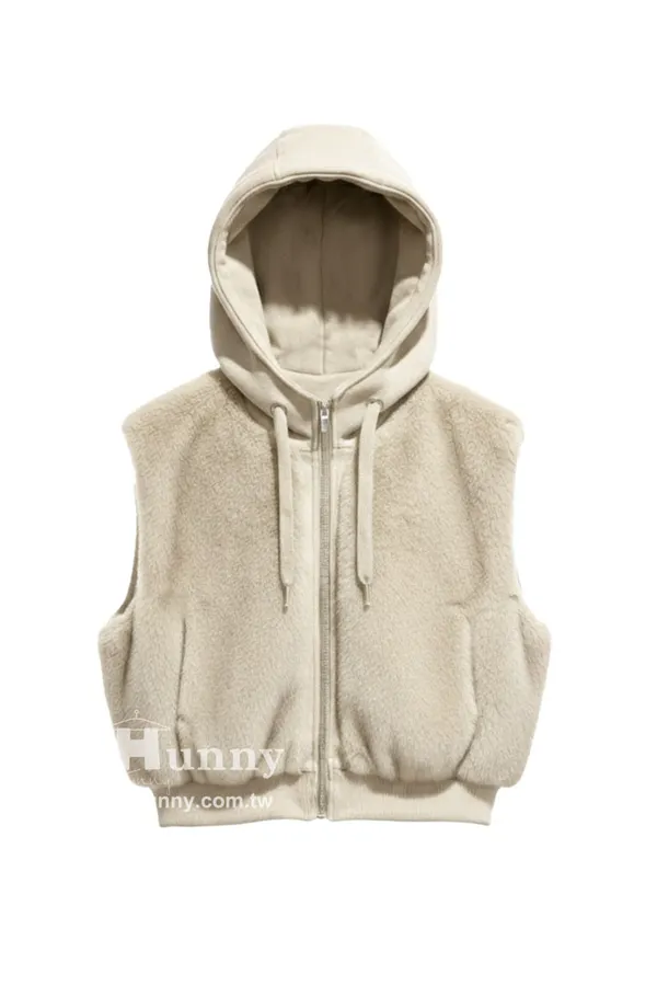 V12913 東京小貴婦保暖毛毛連帽背心 黑/駝/杏 黑色現貨