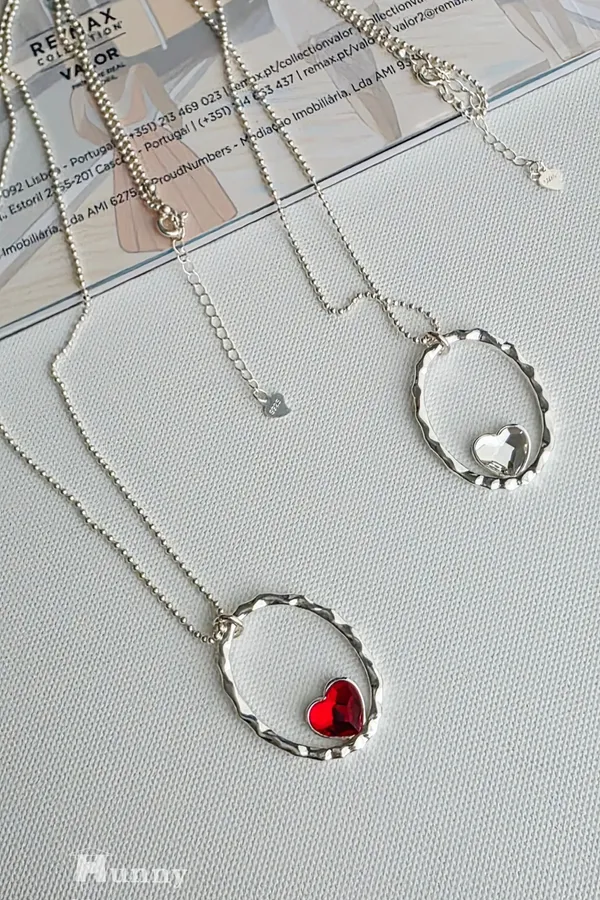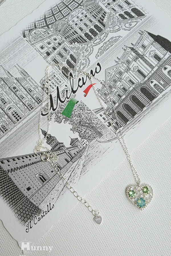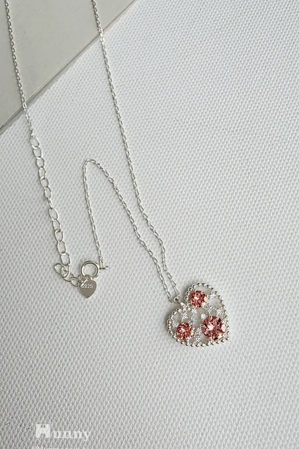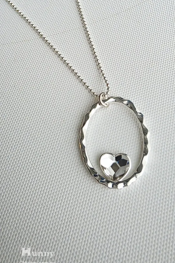 a101562 925純銀施華洛世奇水晶系列 擁抱愛心光環長鍊 (雙面)