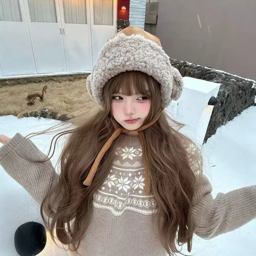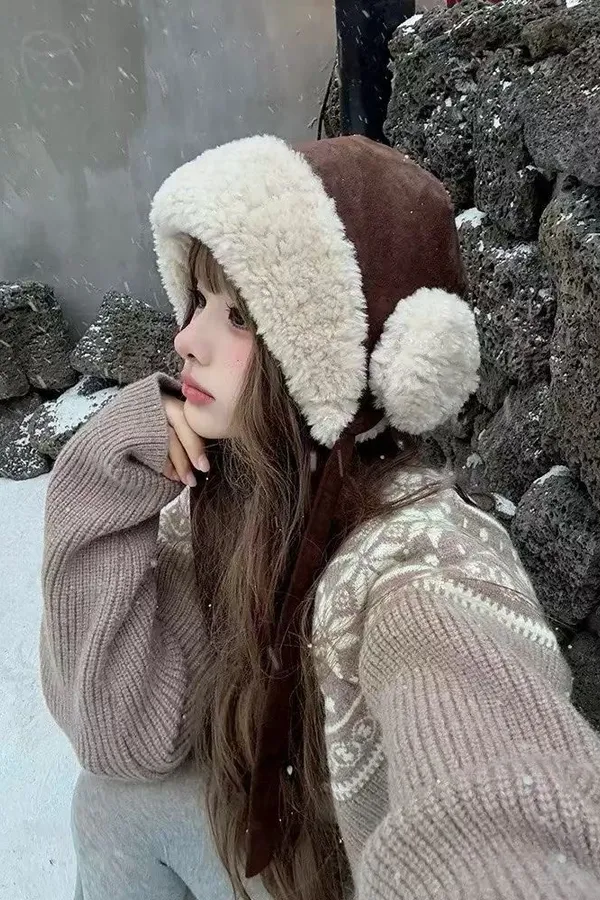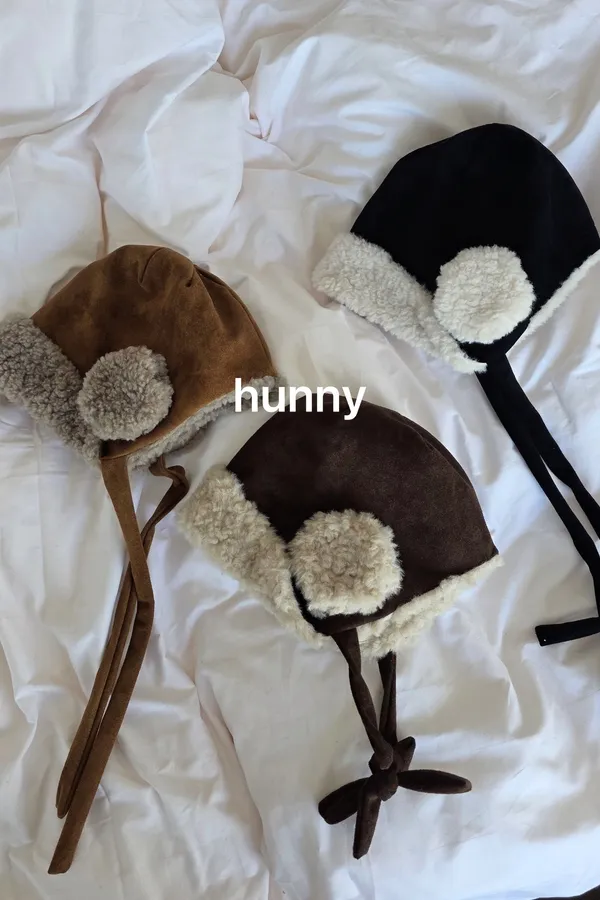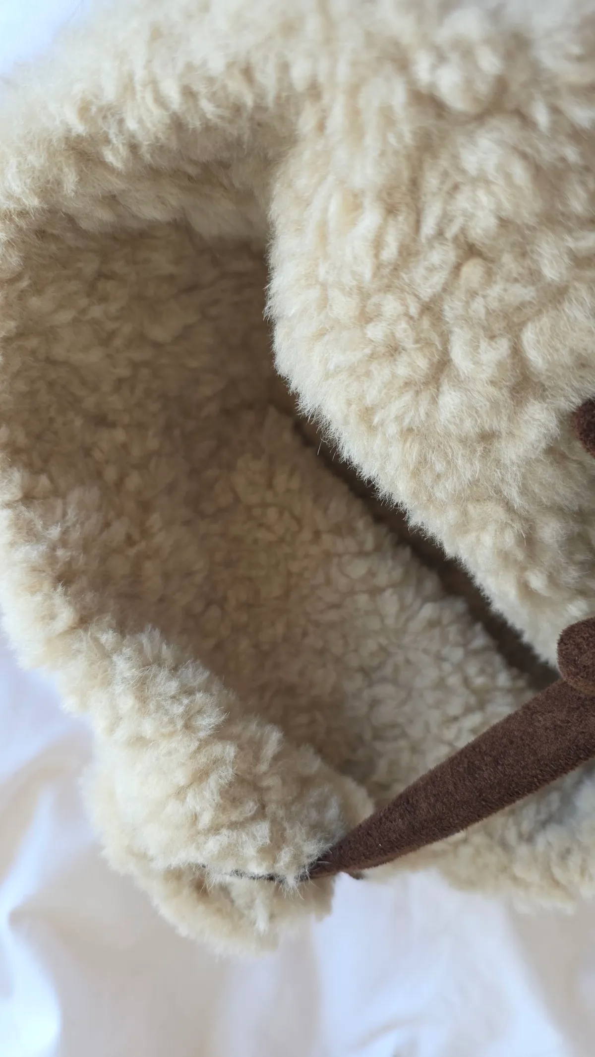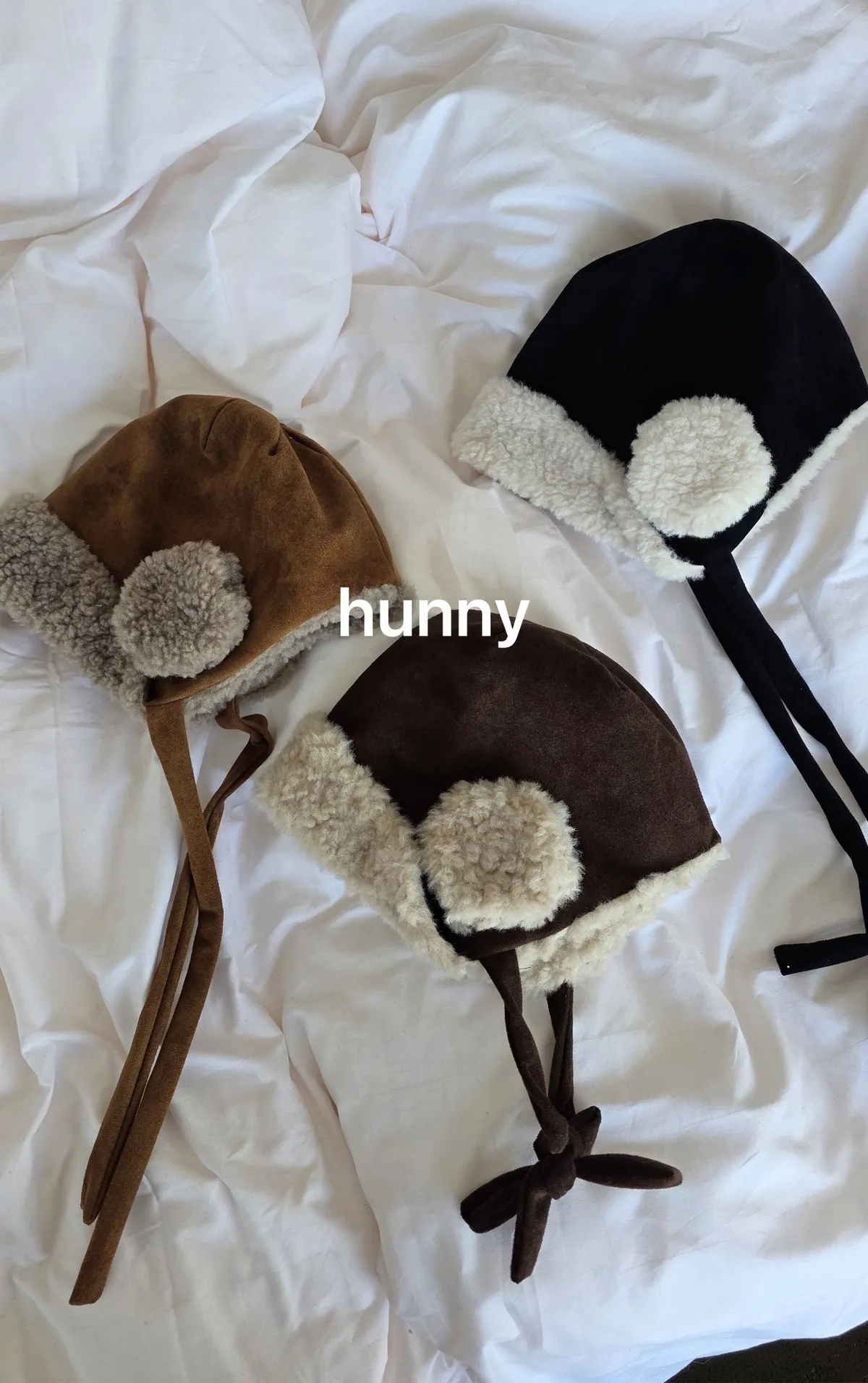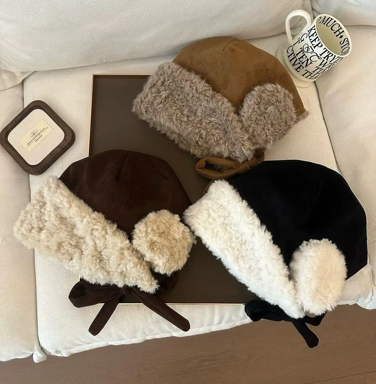 A10236 冬季戀歌羔羊毛毛麂皮耳罩飛行帽 現貨