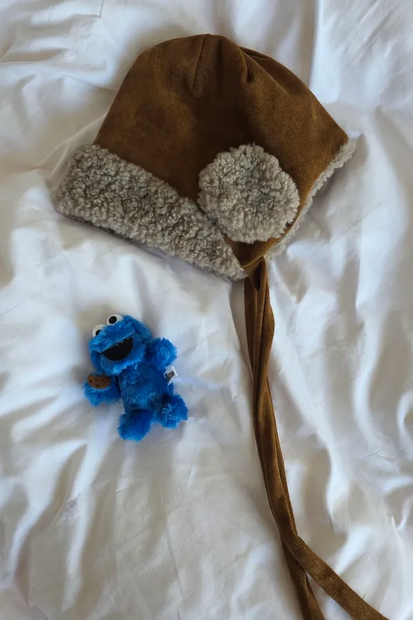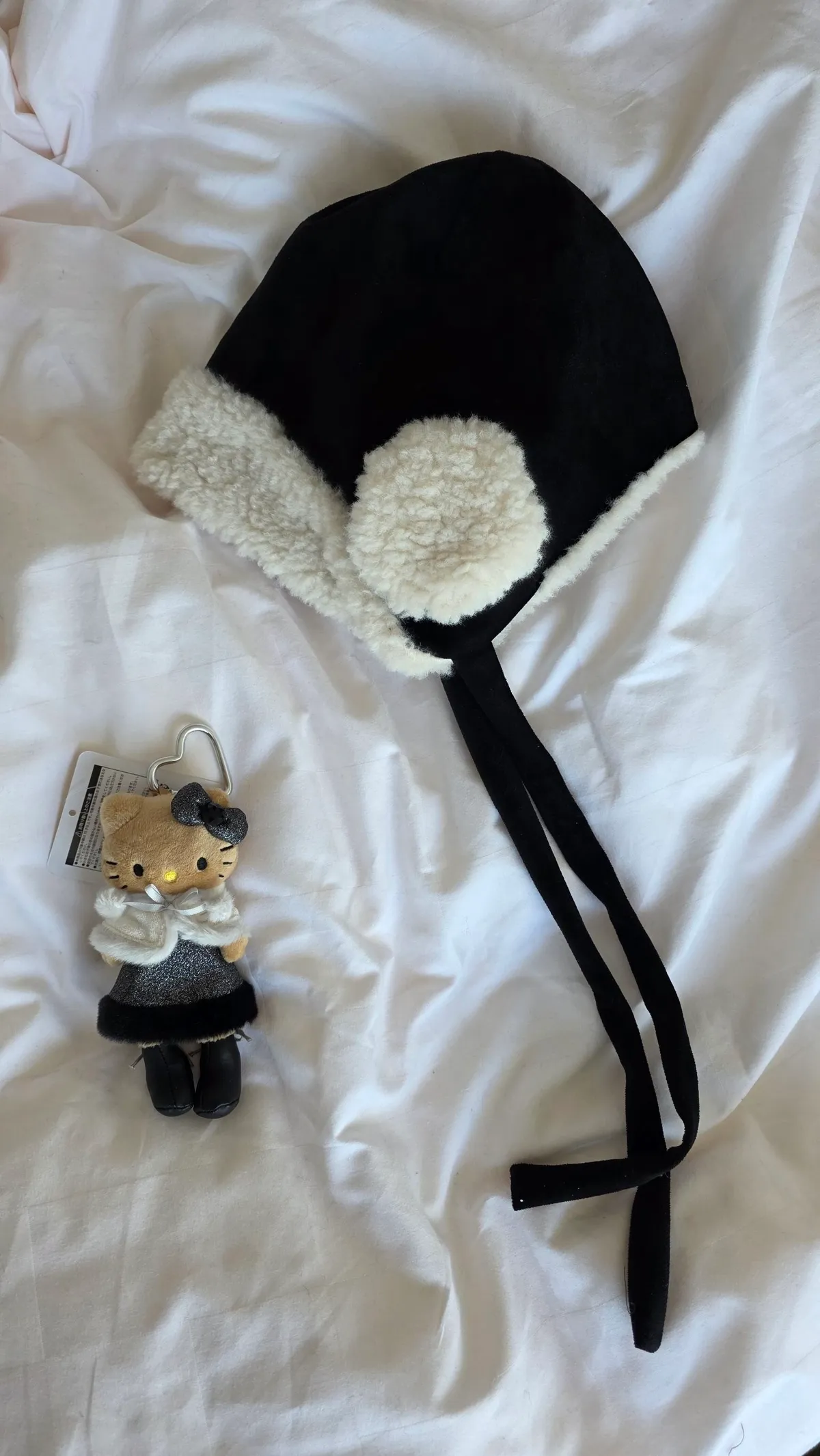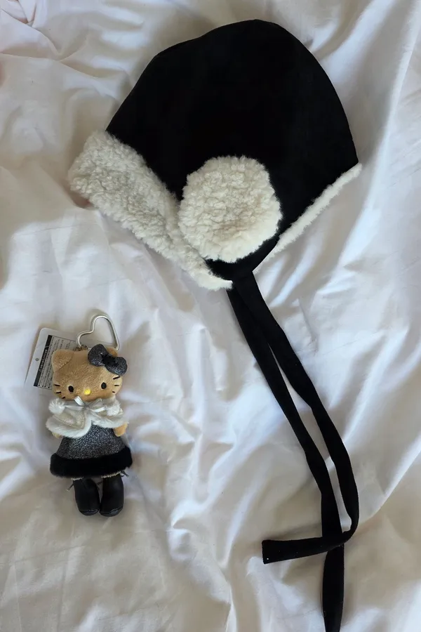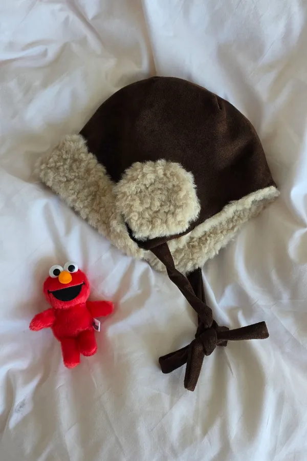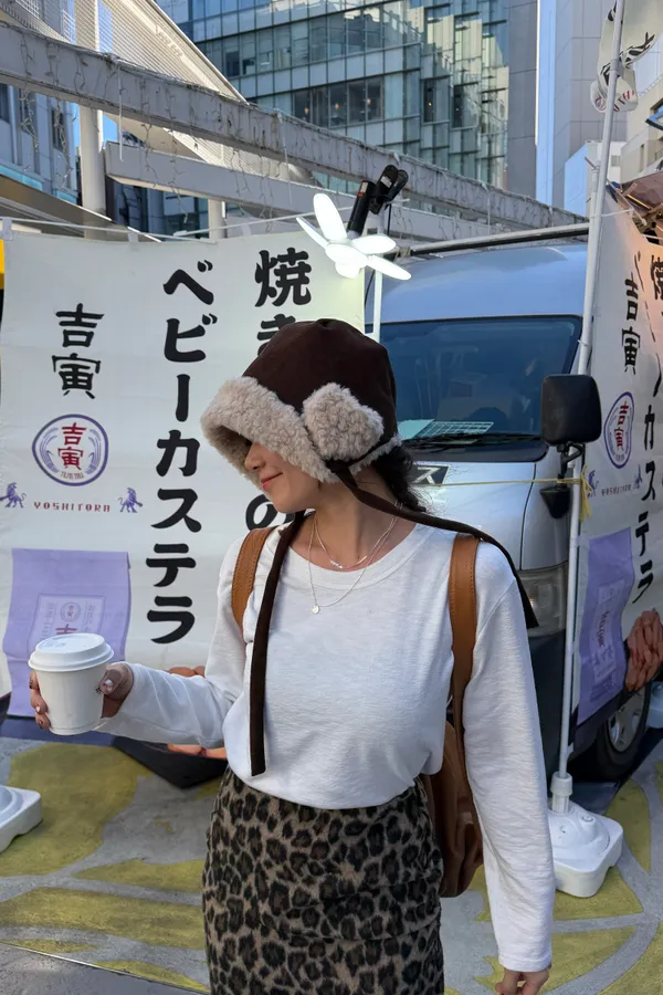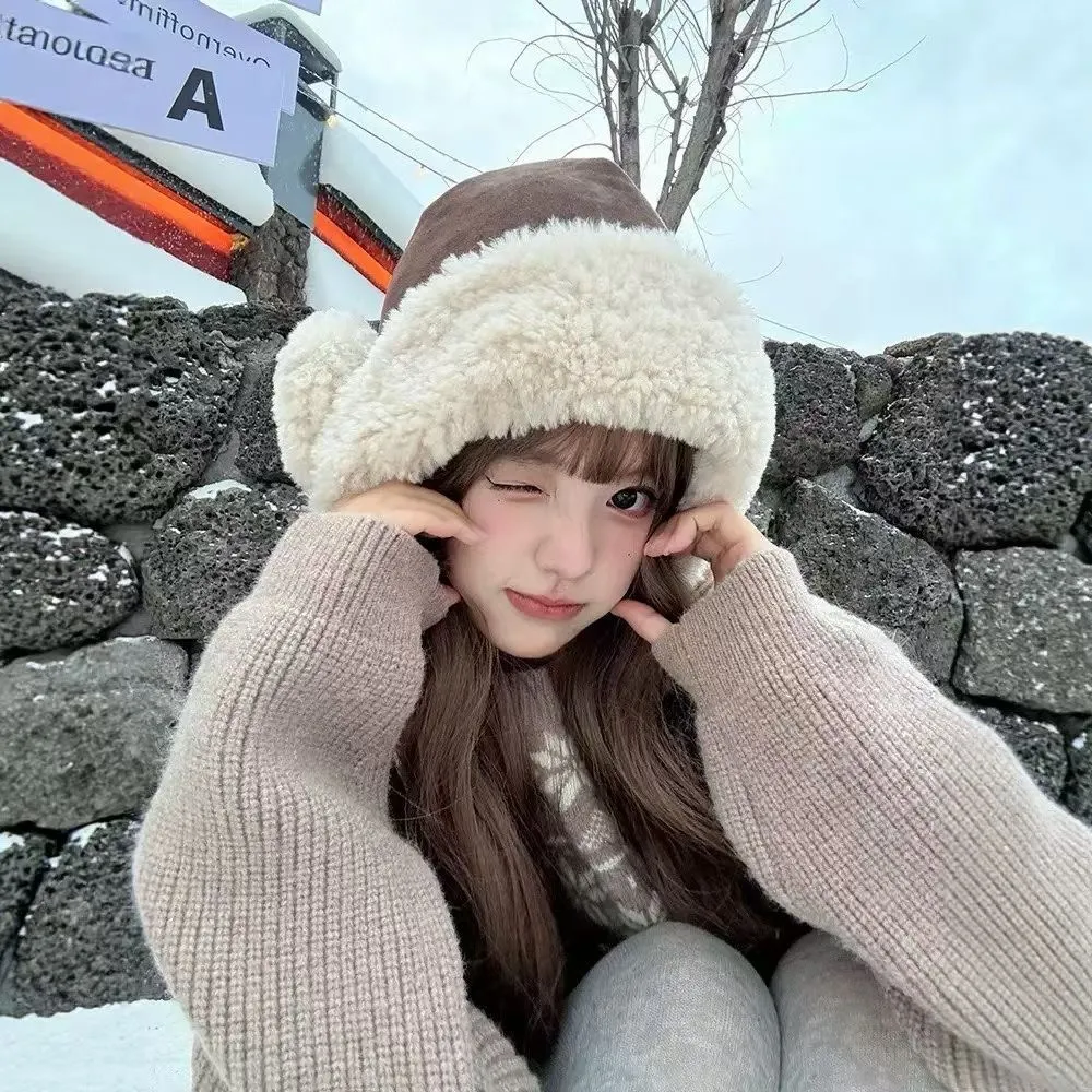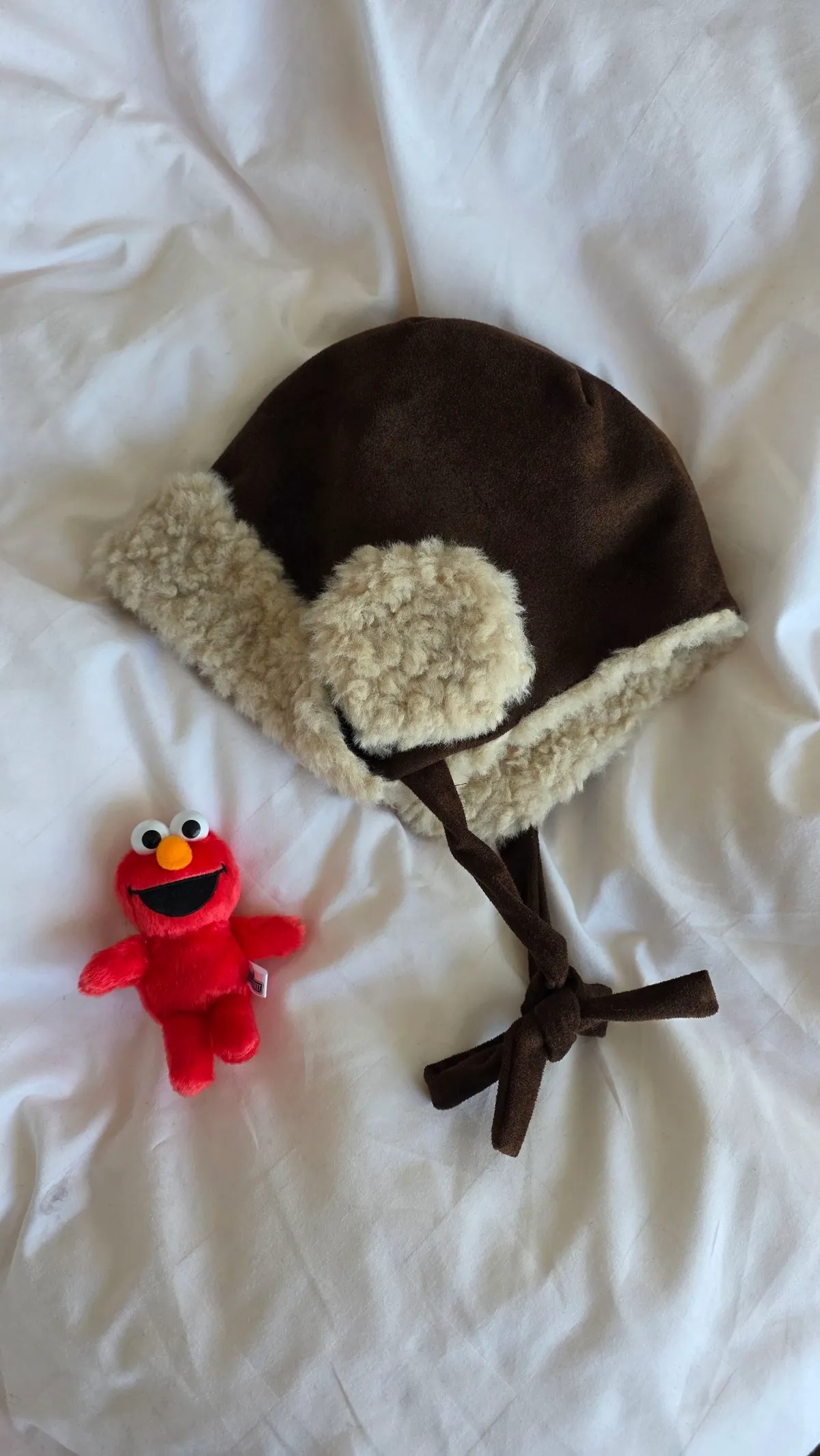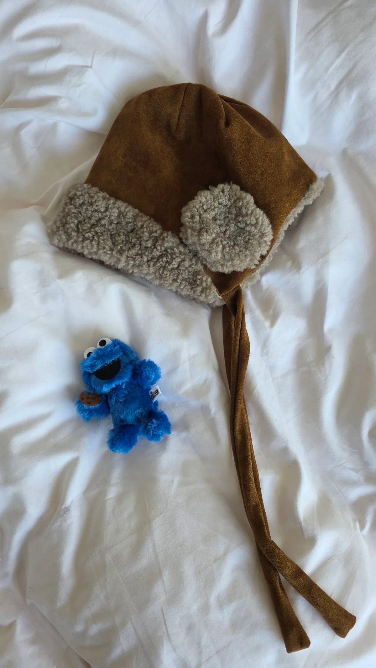 A10236 冬季戀歌羔羊毛毛麂皮耳罩飛行帽 現貨
