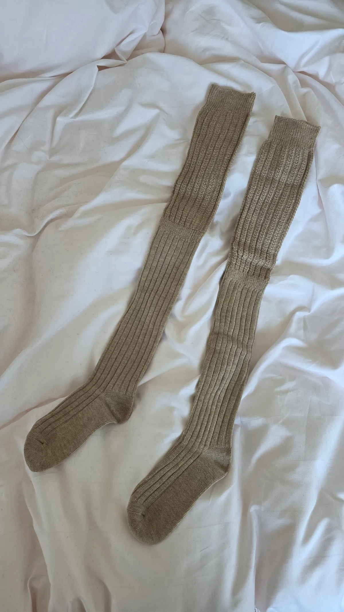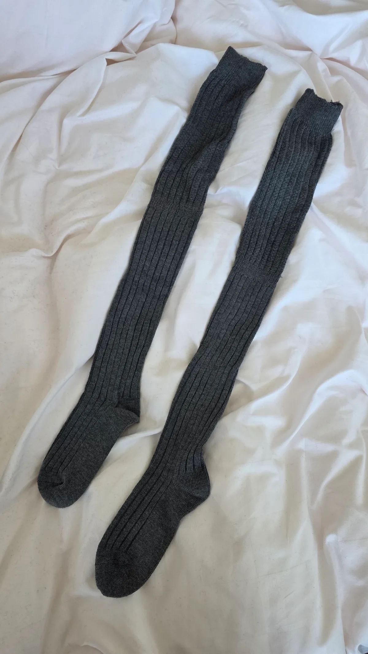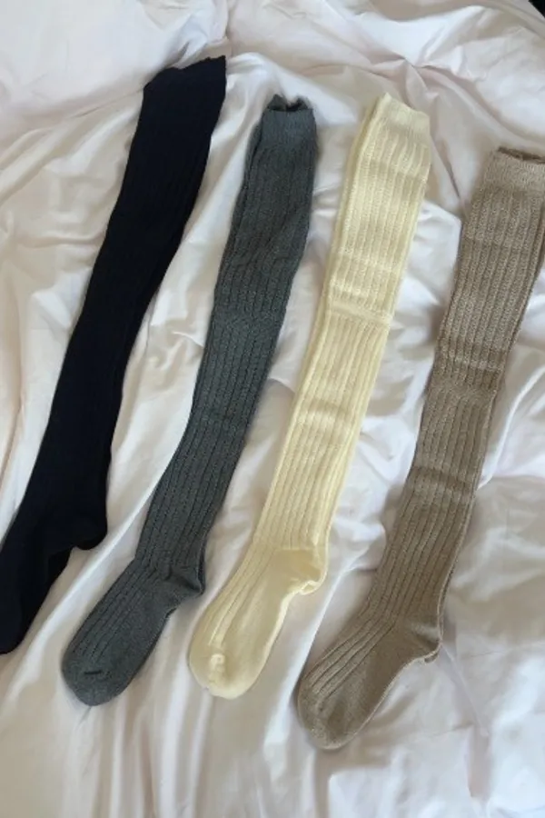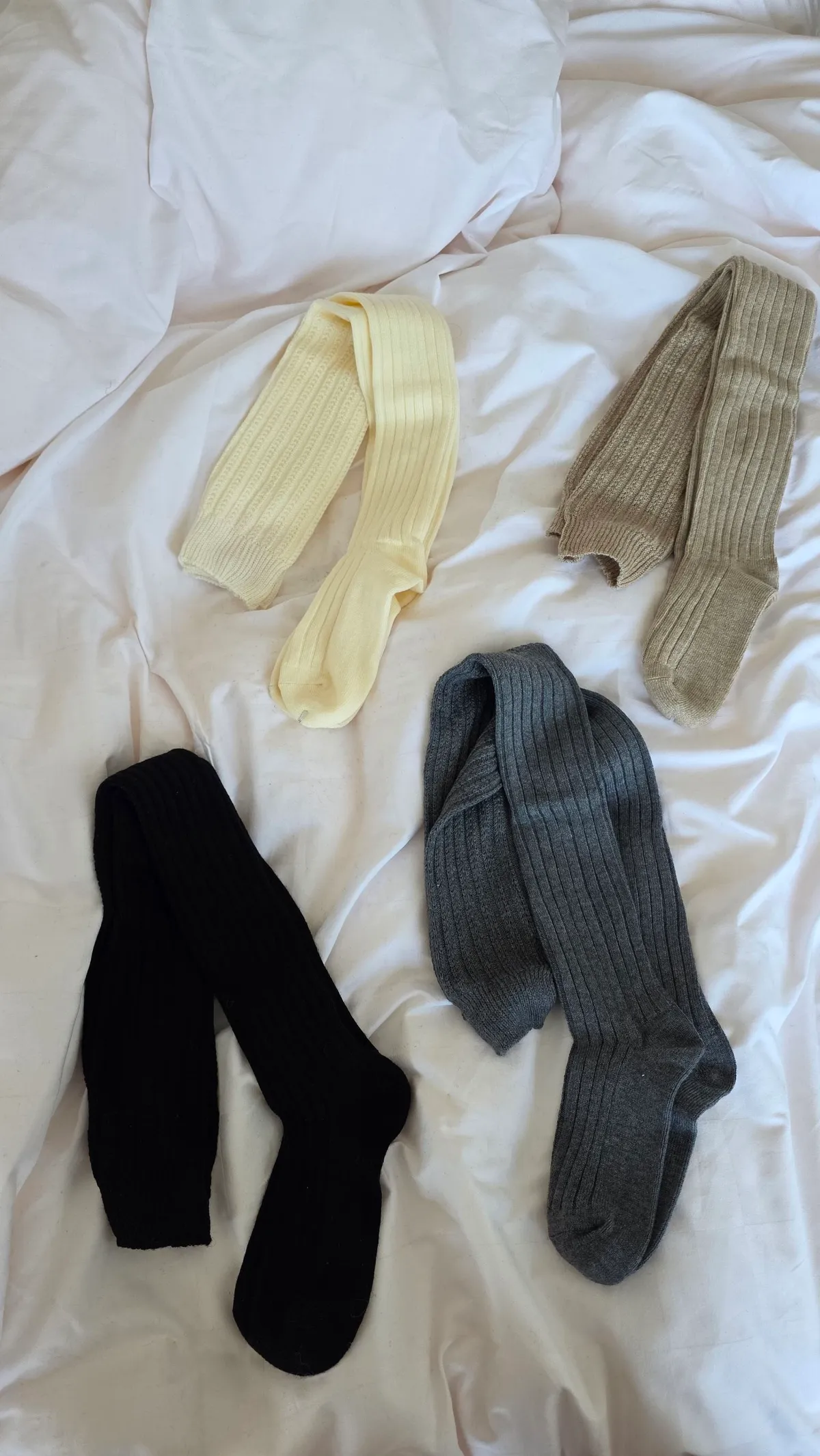 A10933 毛料過膝泡泡長襪 黑/墨/駝/白
