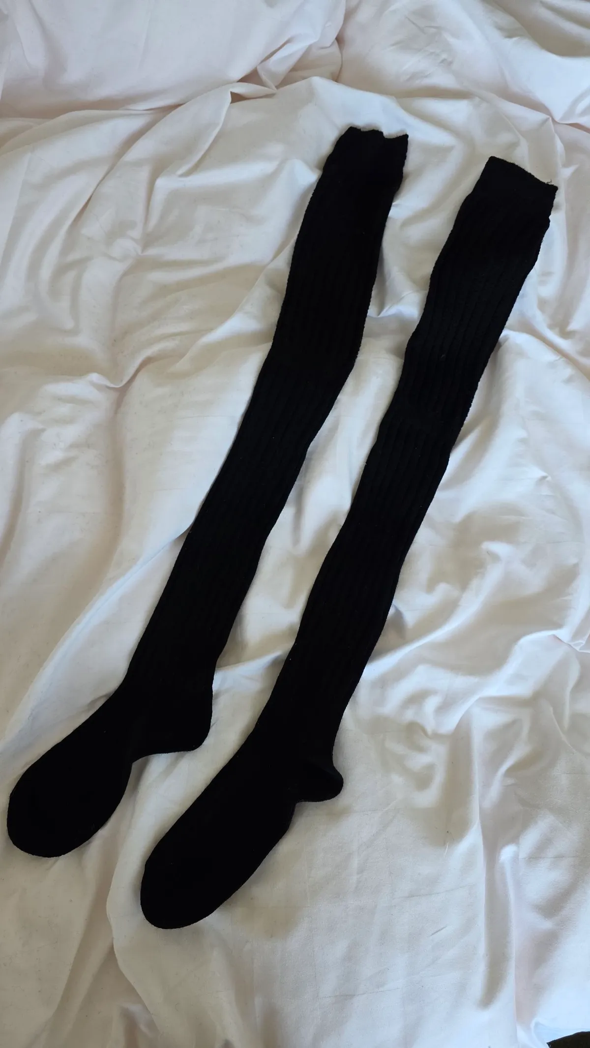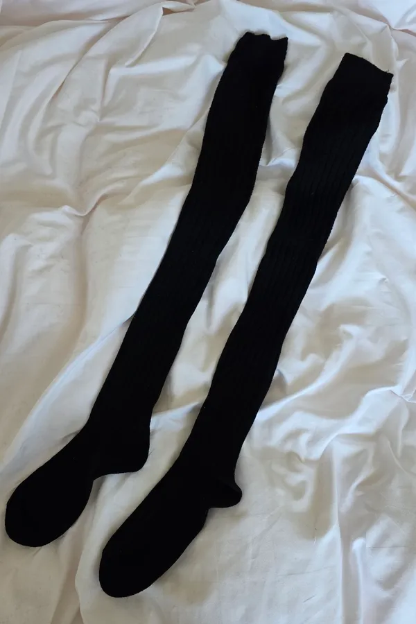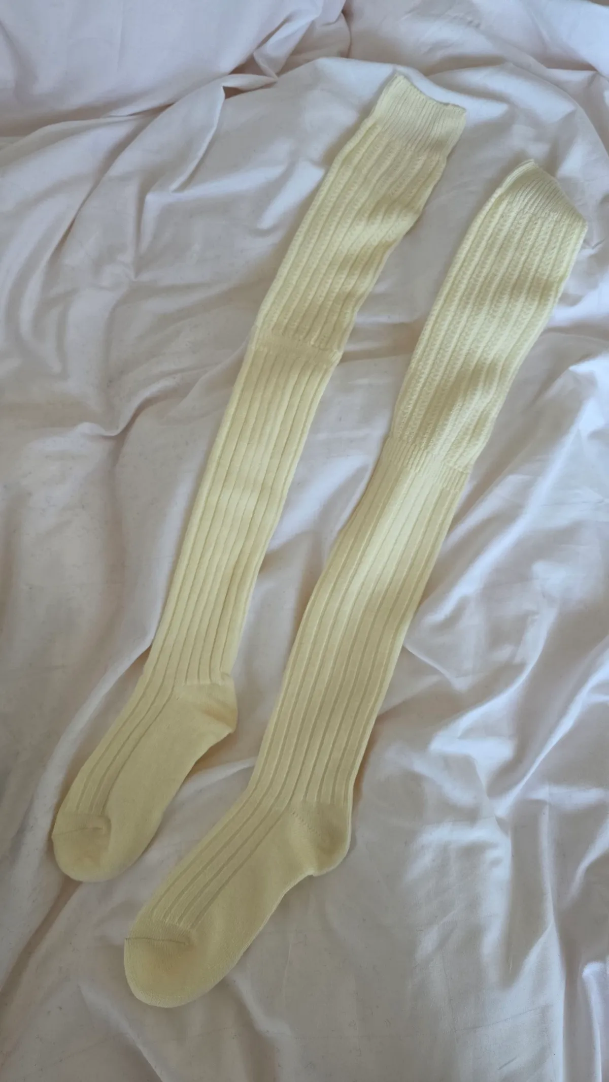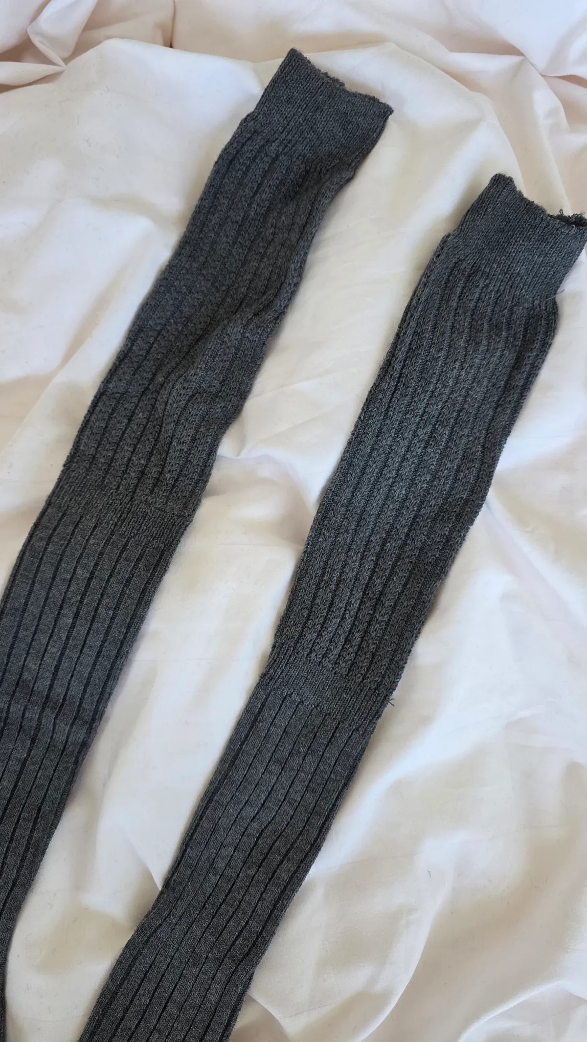 A10933 毛料過膝泡泡長襪 黑/墨/駝/白