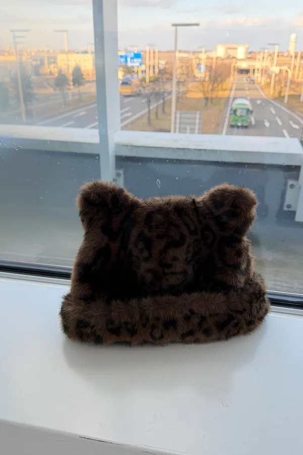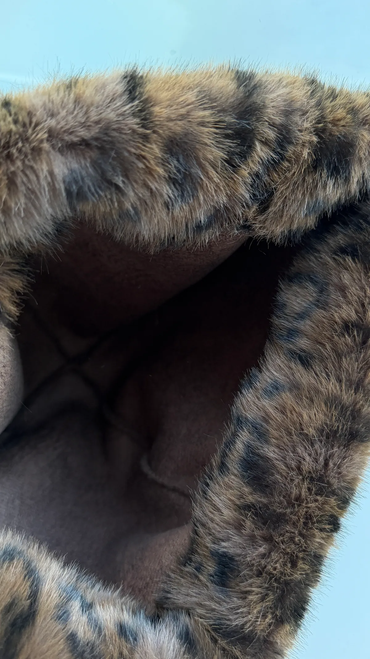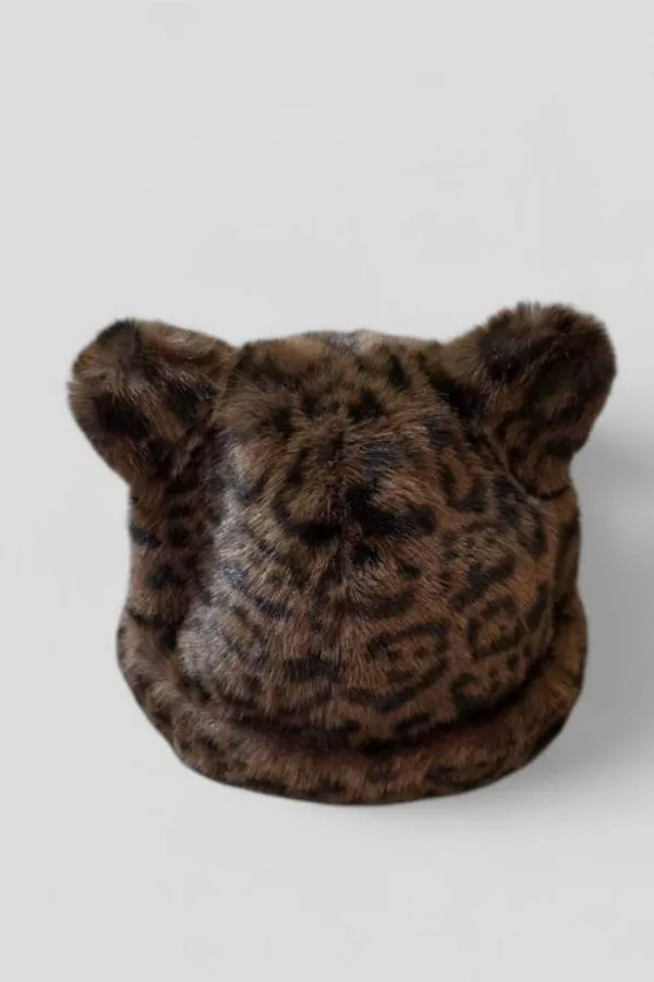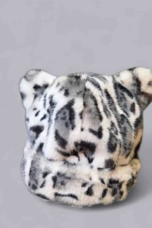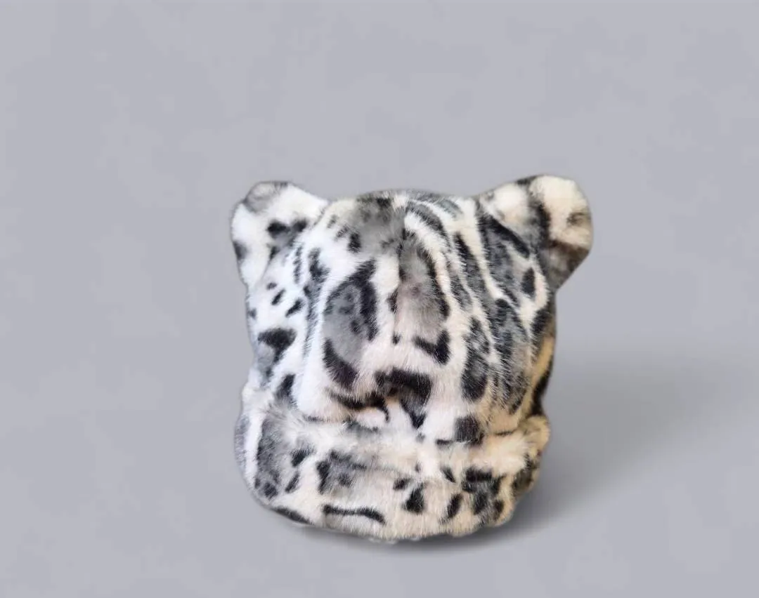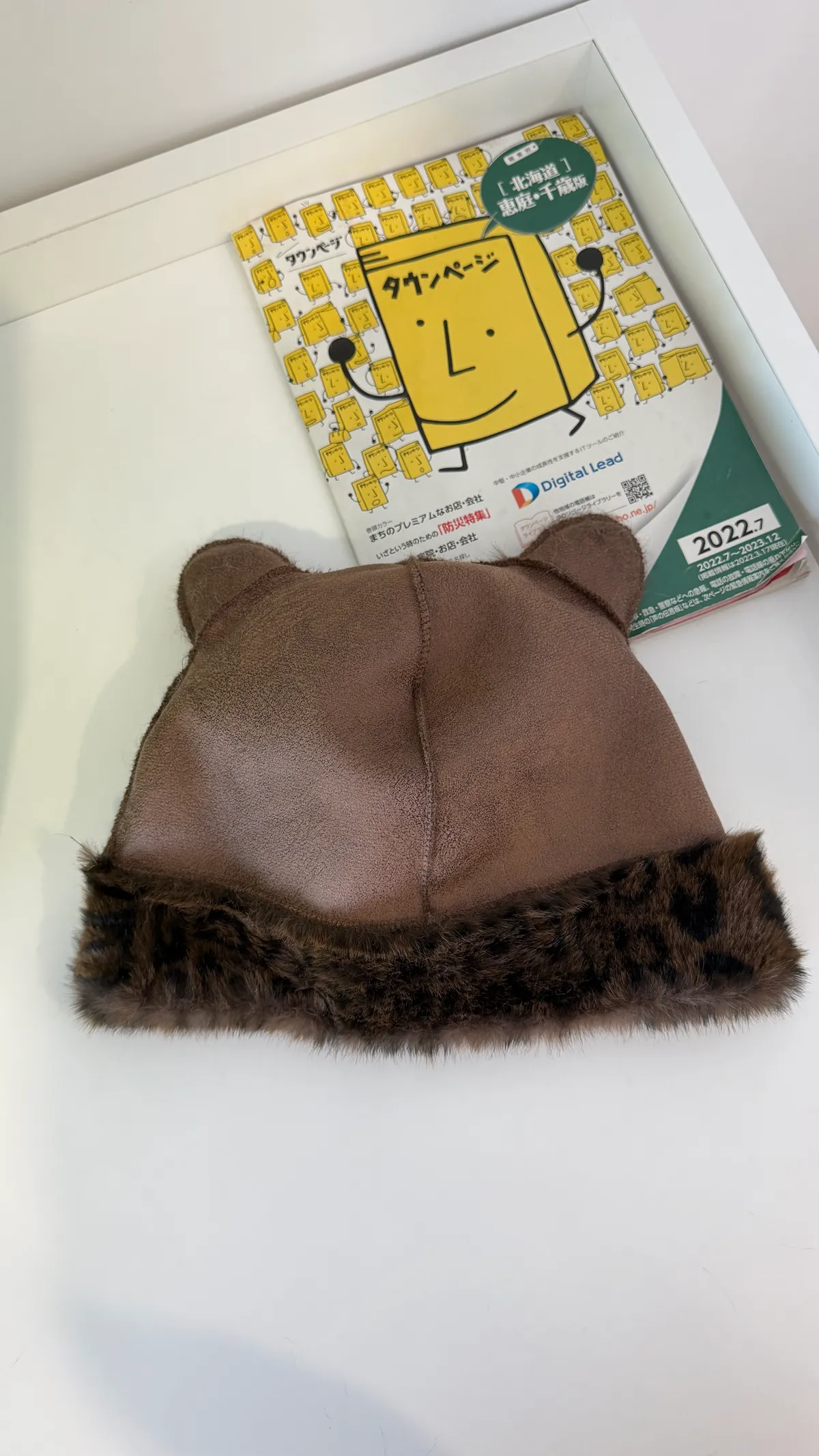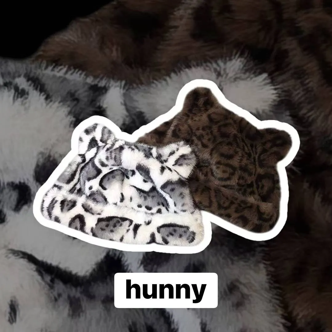 a112816 可愛爆擊貓耳豹紋麂皮盆帽 咖/白