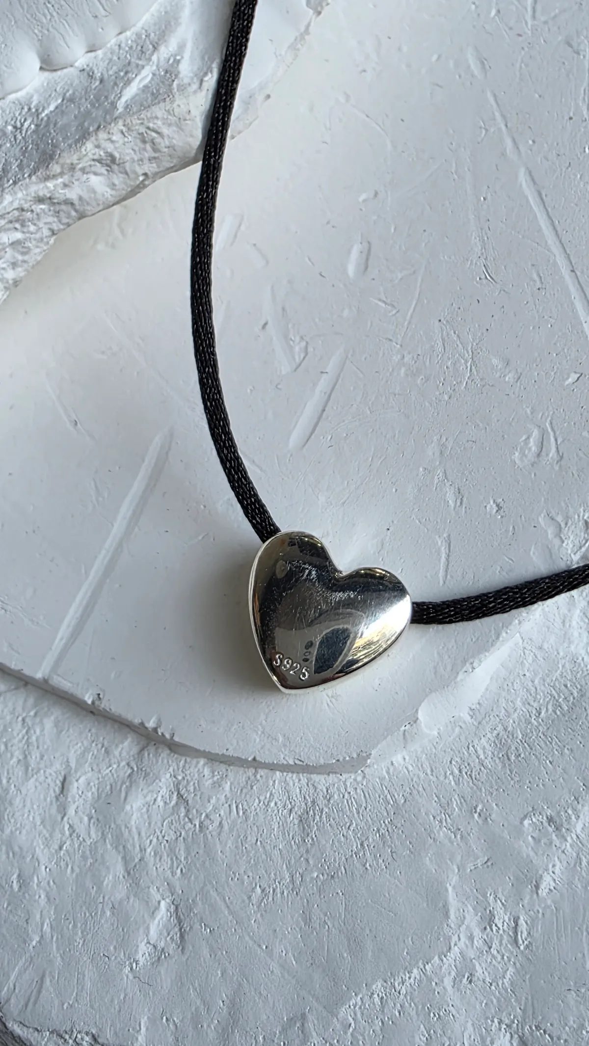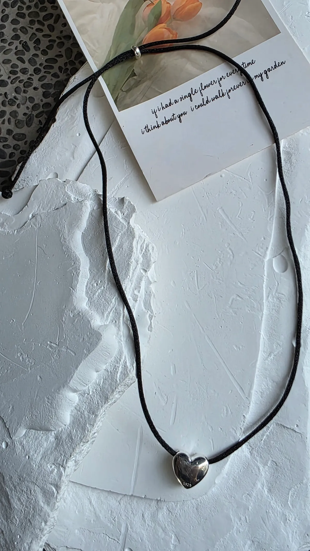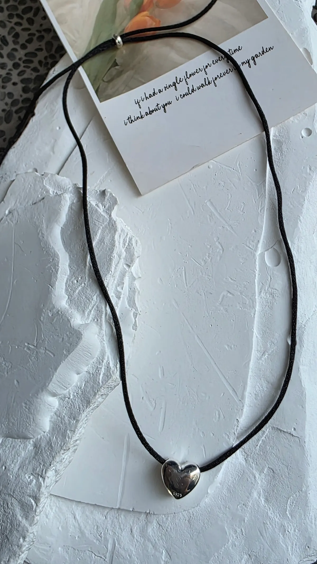 a121277 純銀925大愛心皮繩項鍊 現貨