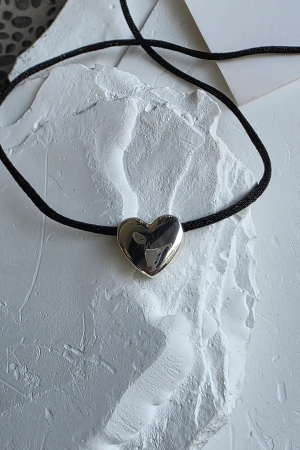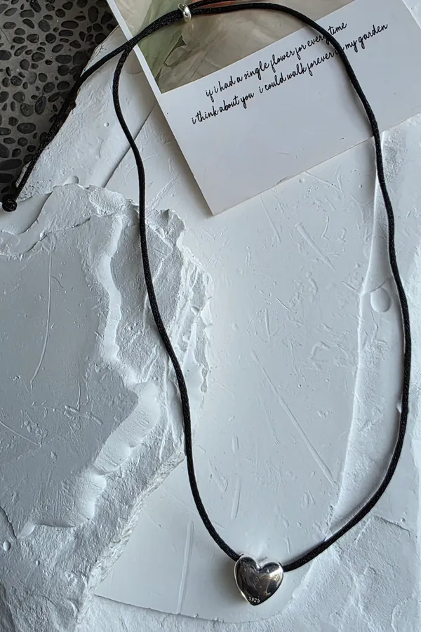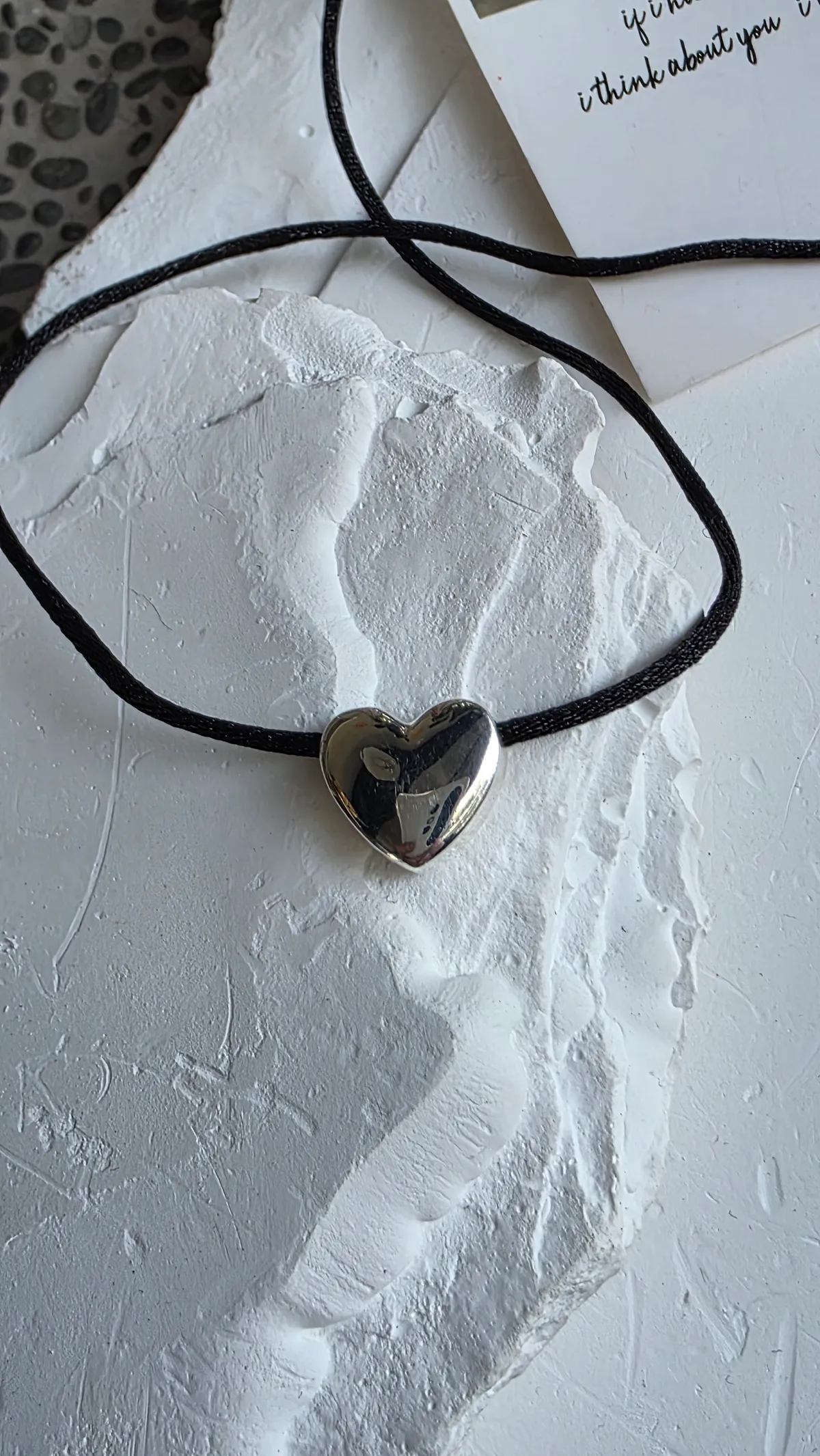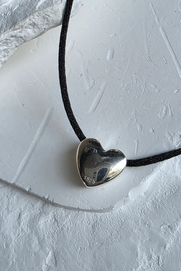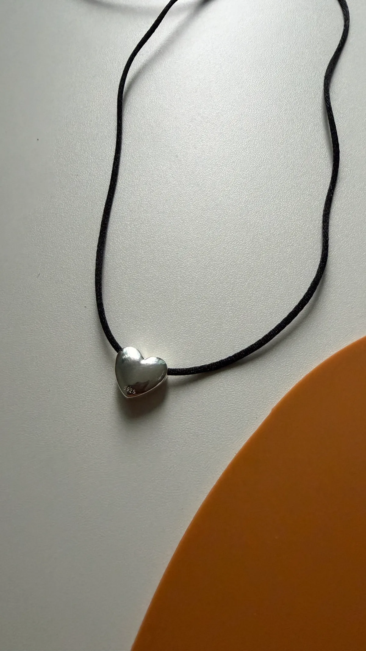 a121277 純銀925大愛心皮繩項鍊 現貨