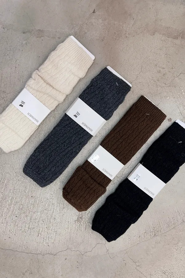 a121522 升溫保暖羊毛麻花襪套 黑/杏/NEW咖/NEW灰