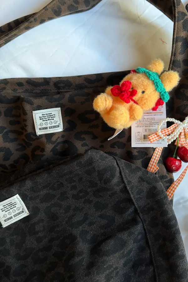 hunny02 獨家訂製的蜜桃絨豹紋大水餃包 黑/咖