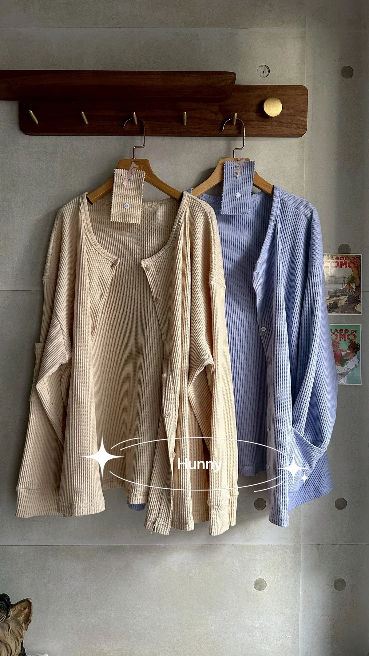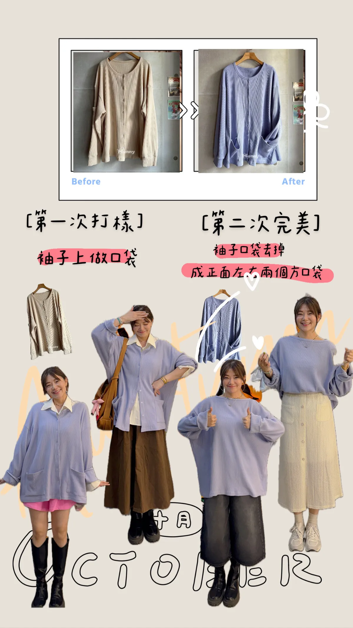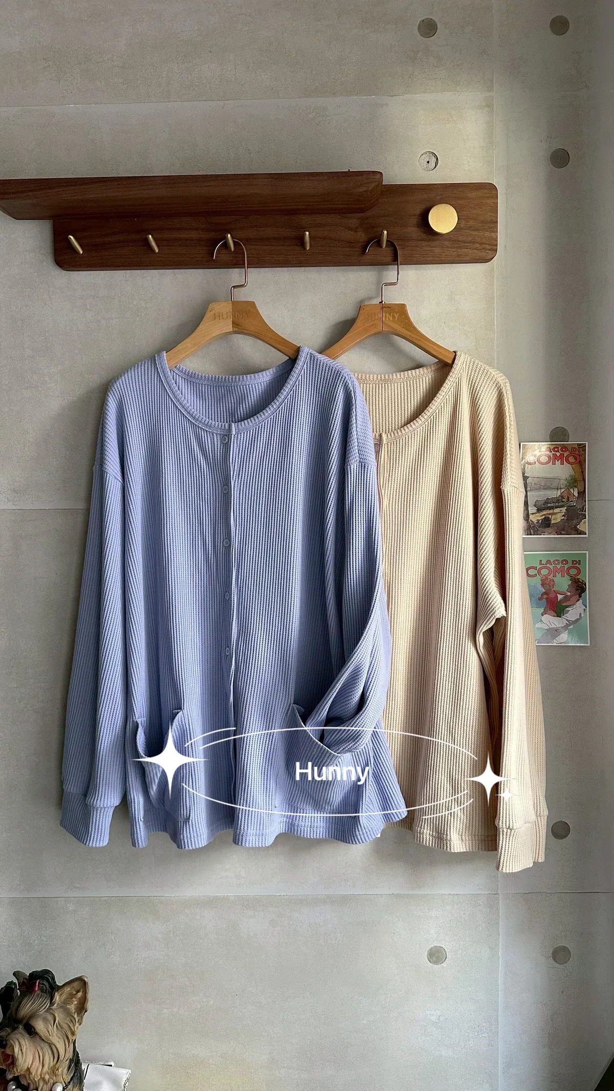 hunny756 獨家設計 多WAY可朗芙方口袋雙面排釦T/罩衫 黑D